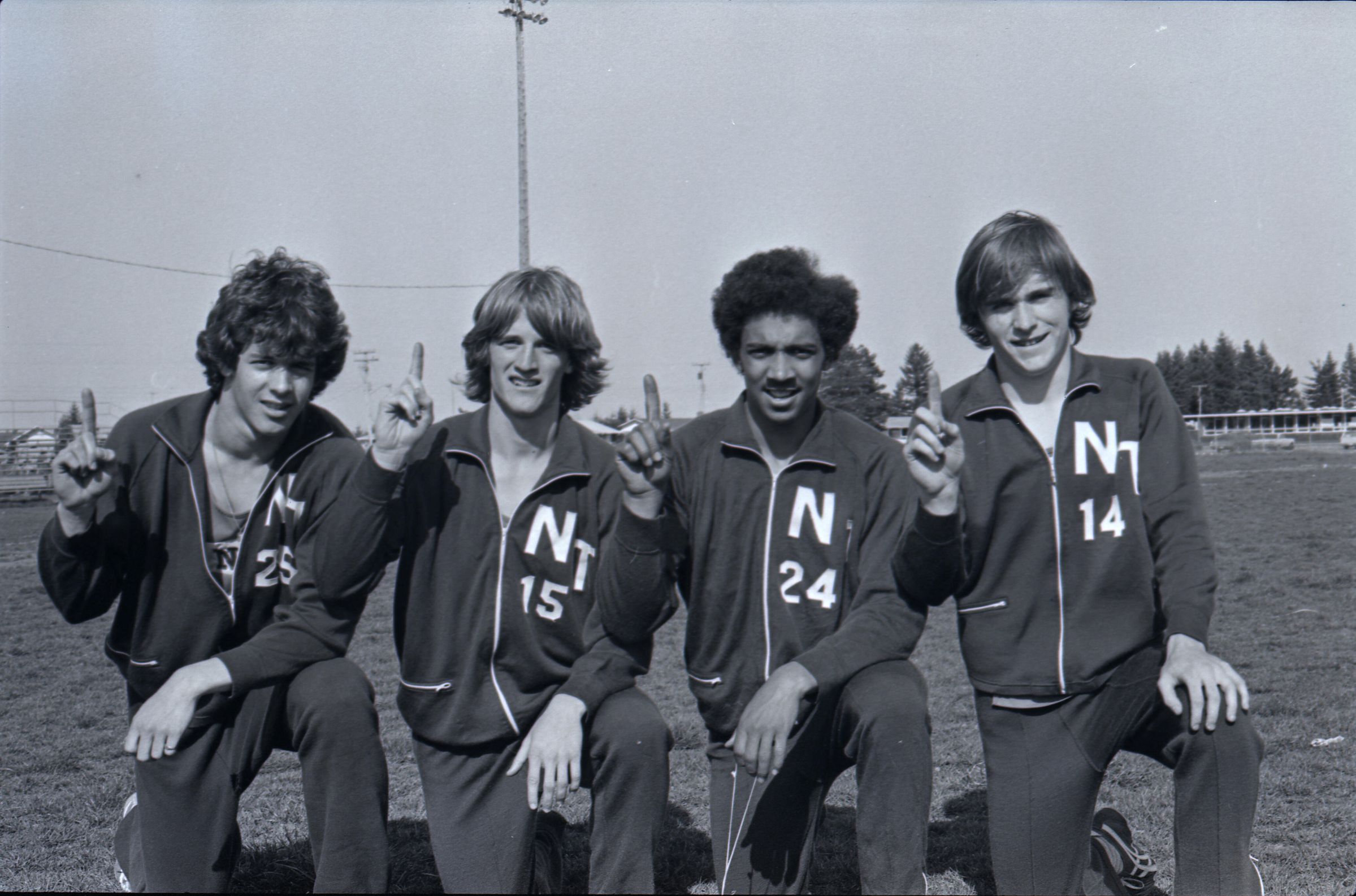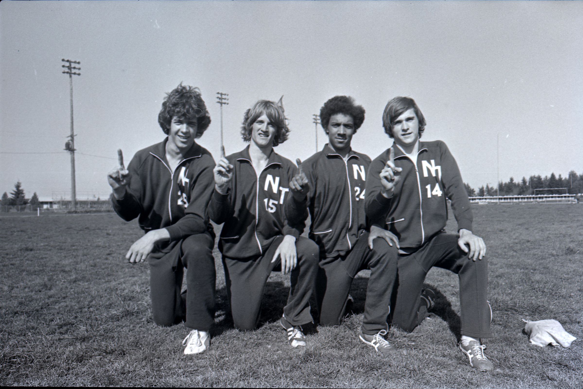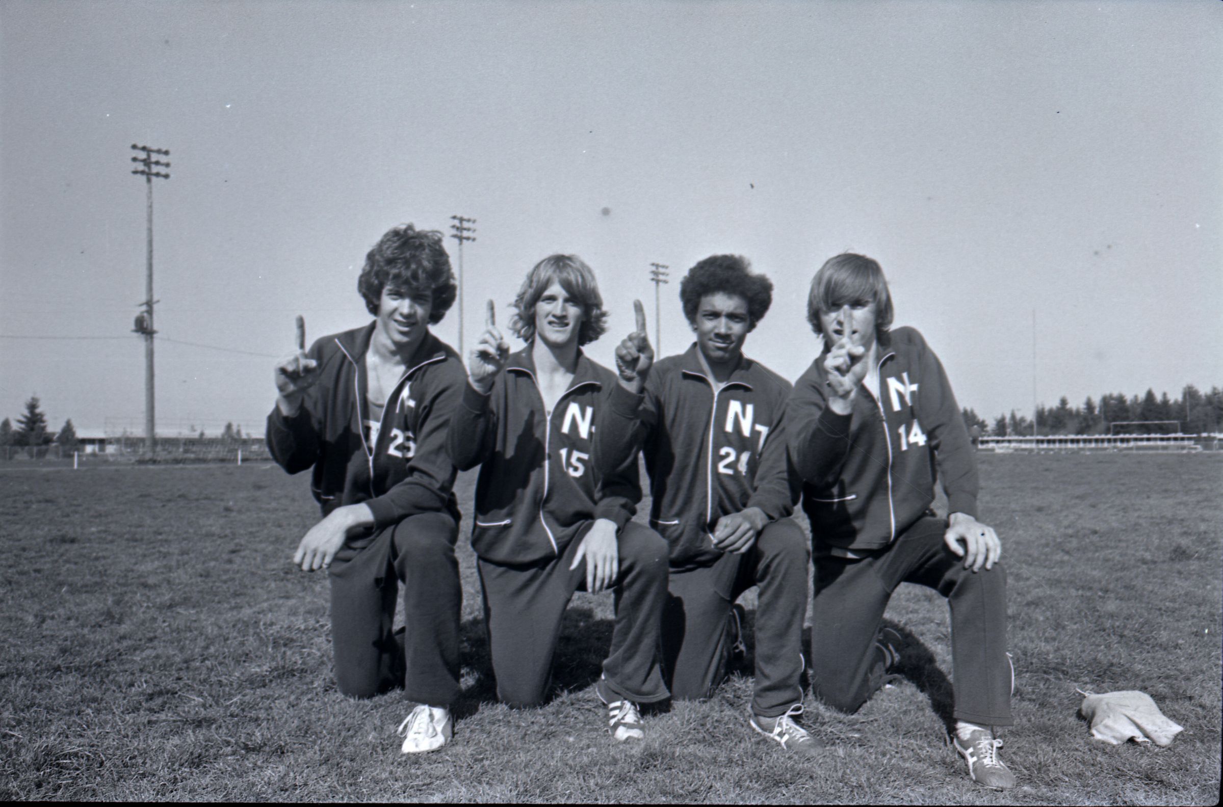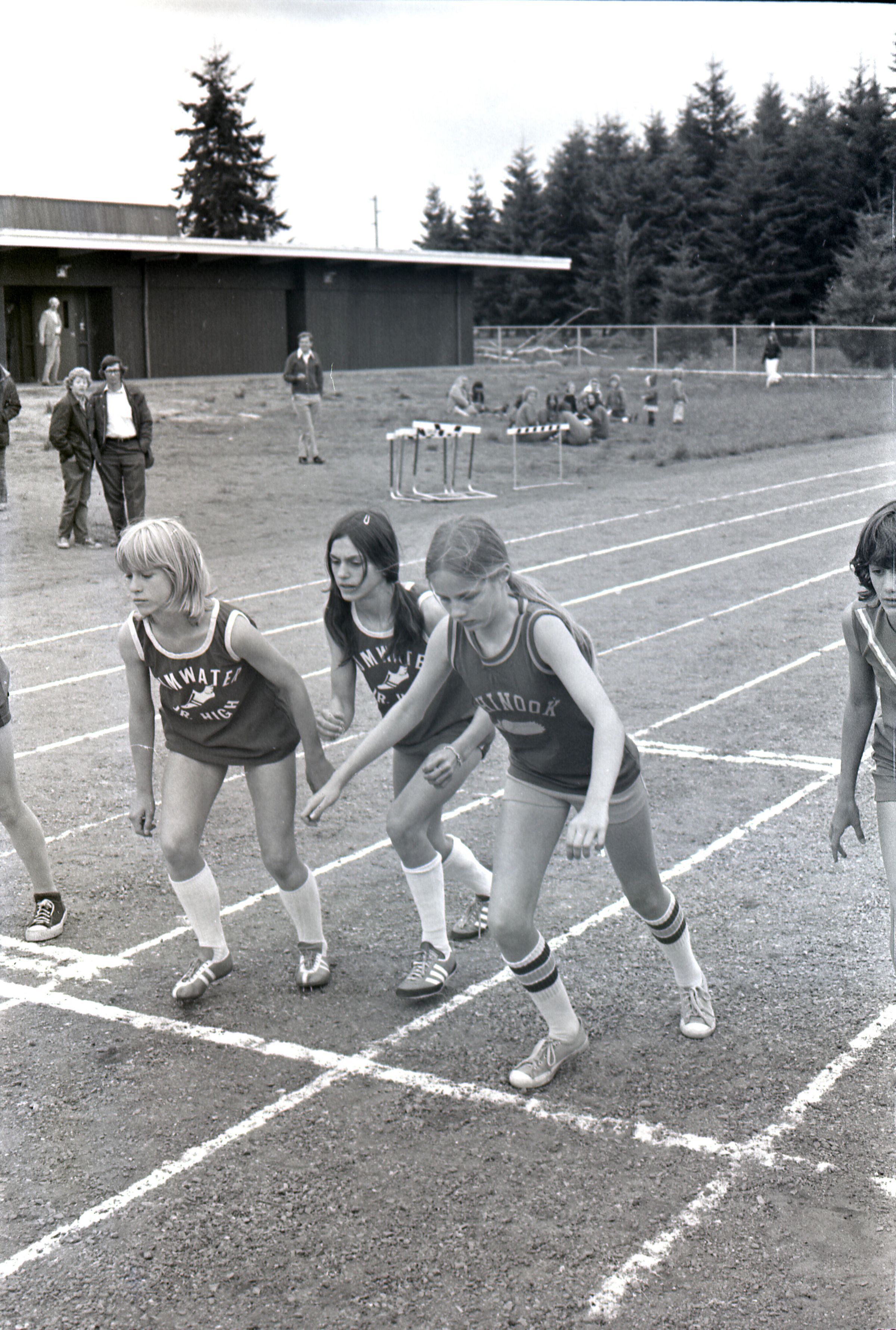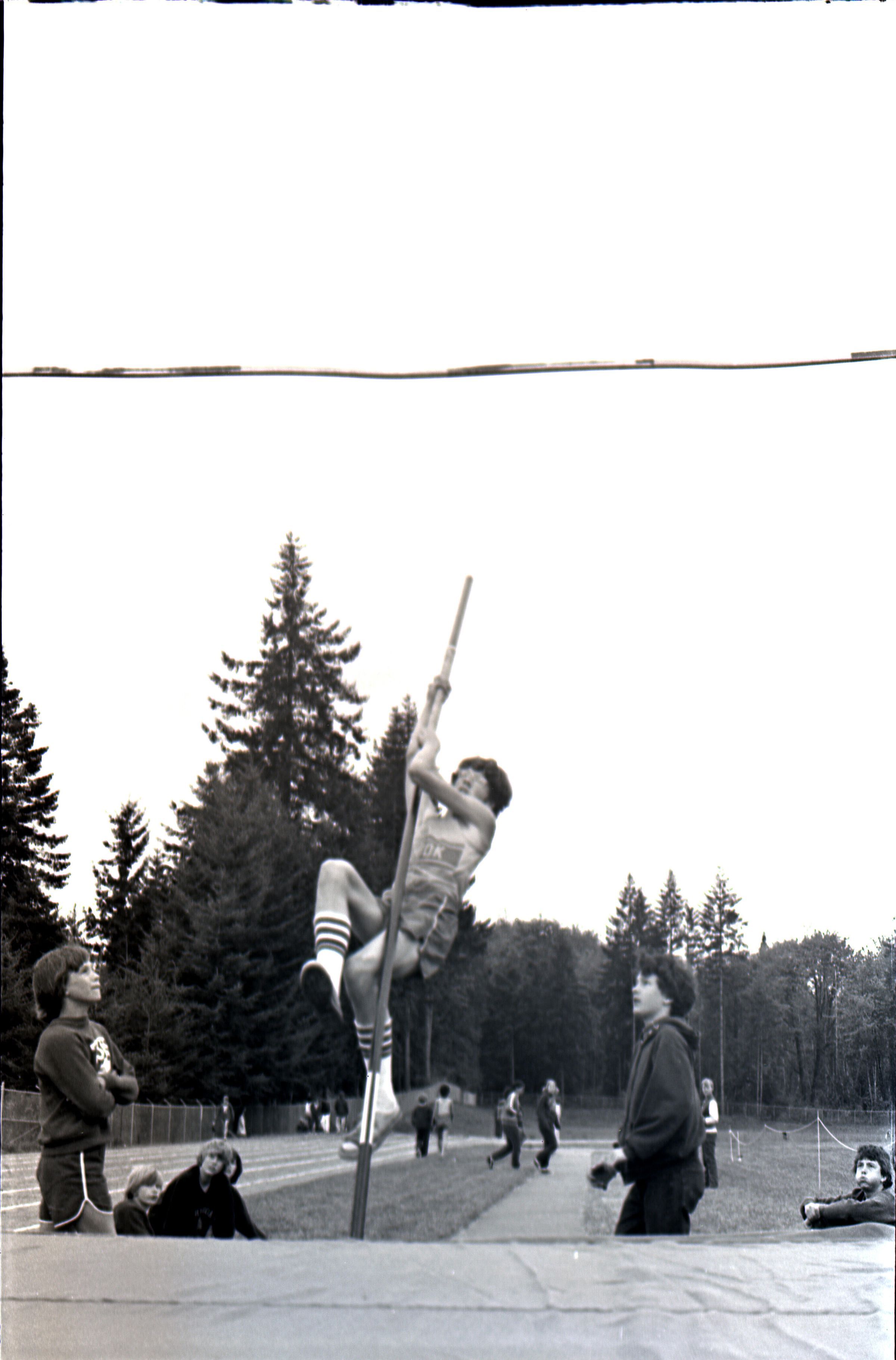 Track and Field, 1975-1978. These sixteen black and white film negative strips were created for the Lacey Leader newspaper. These images were created using six separate film rolls, so some of the physical numbers on the strips are repeated.Made/Created