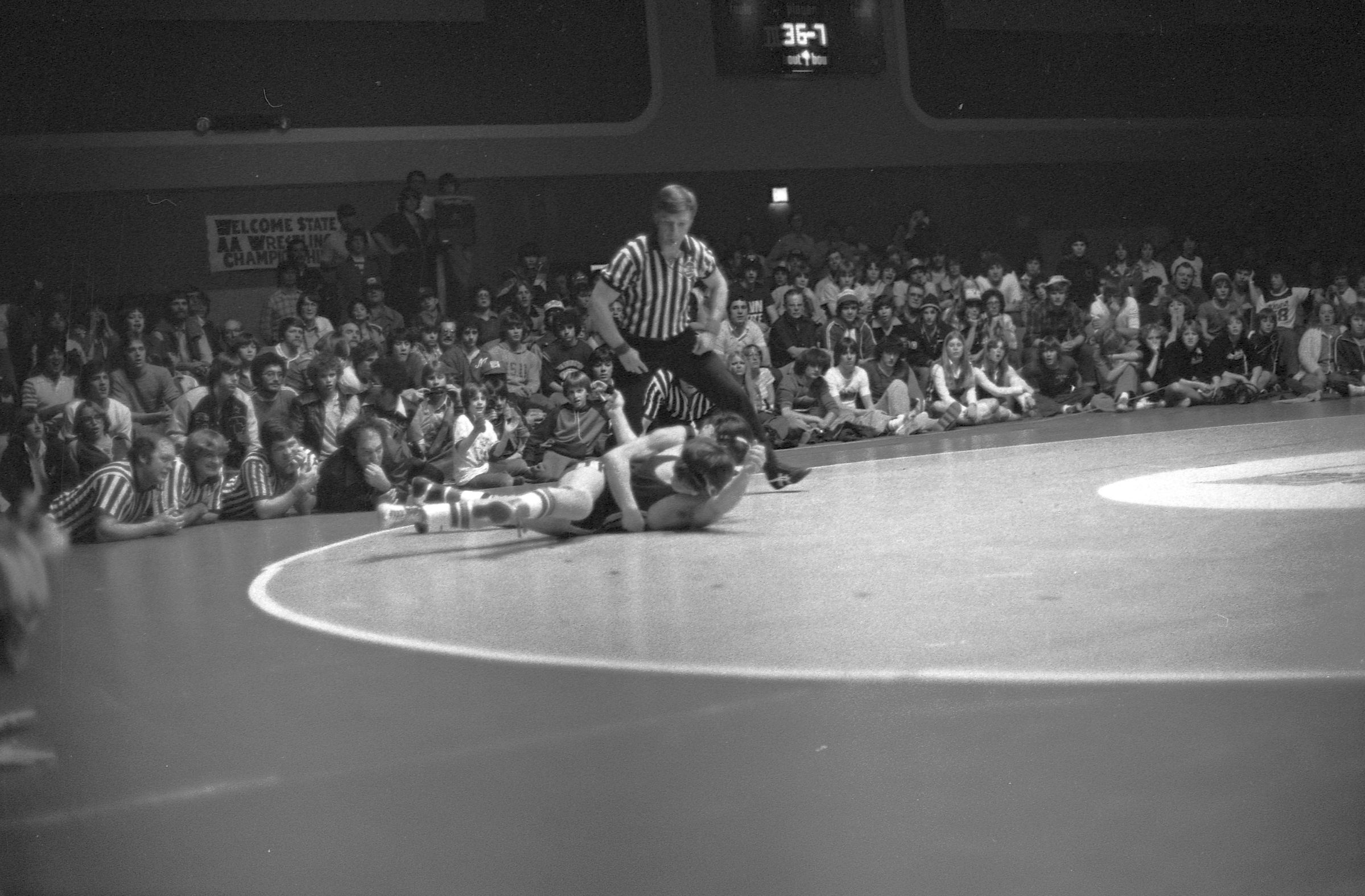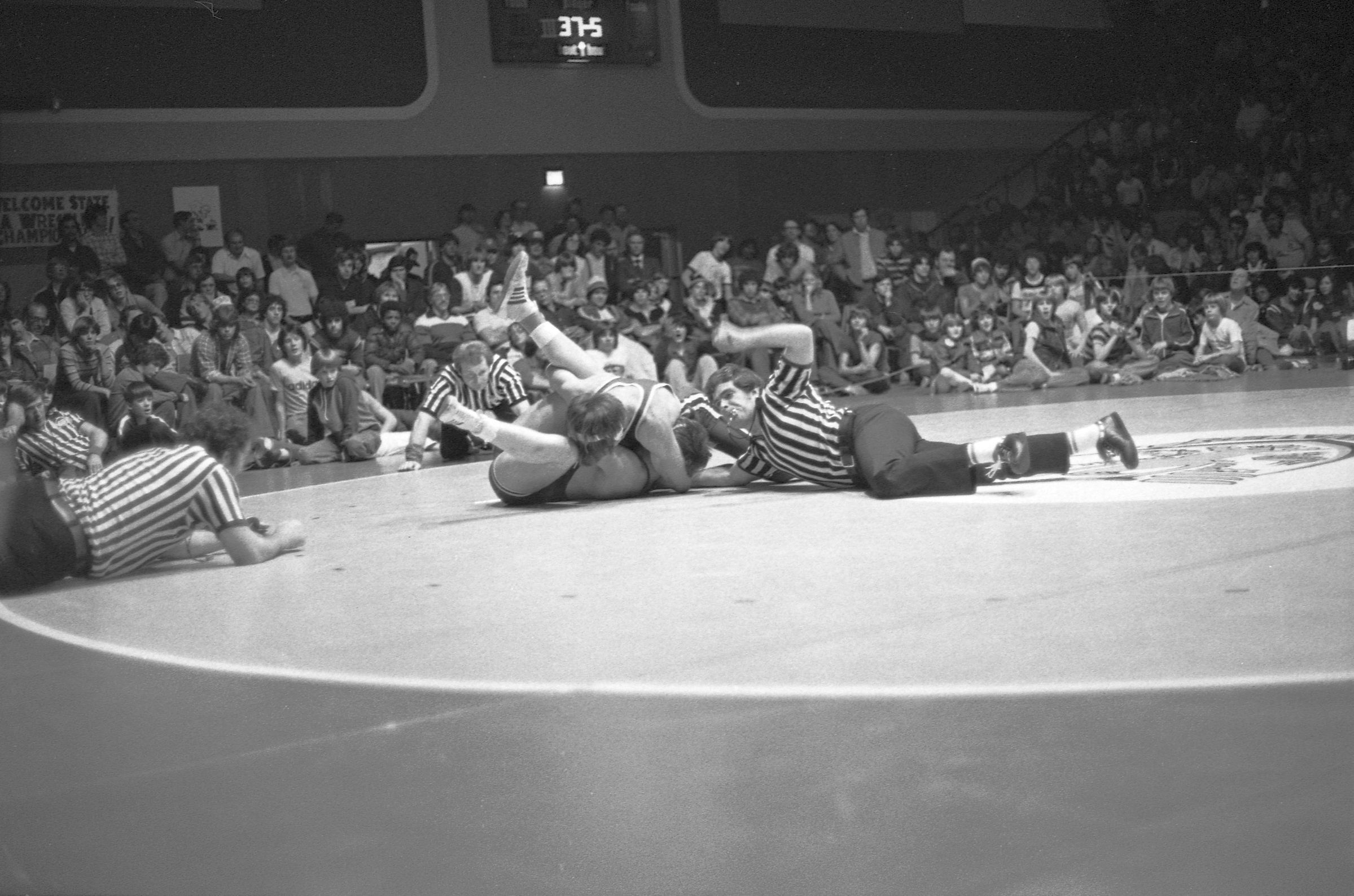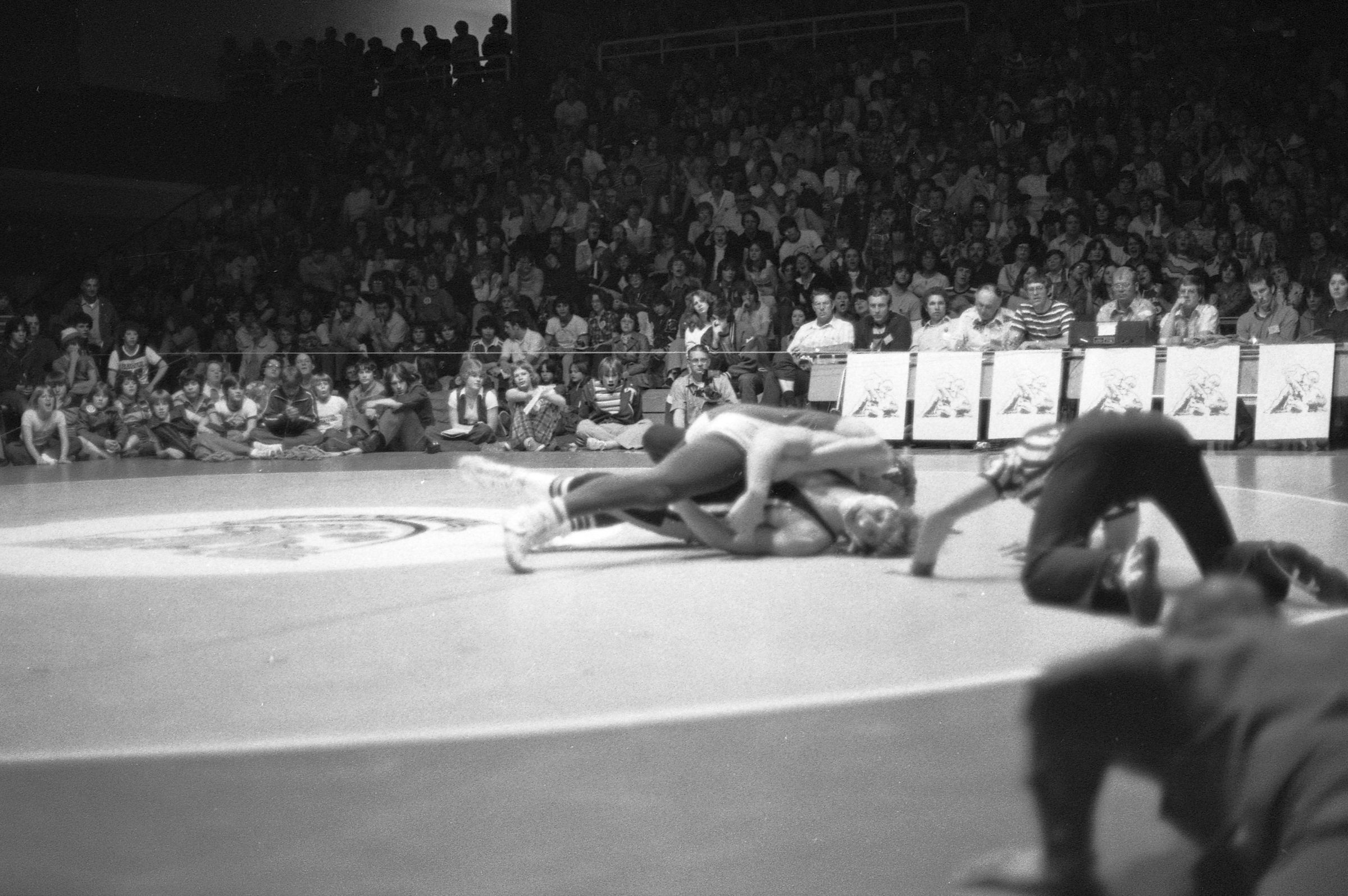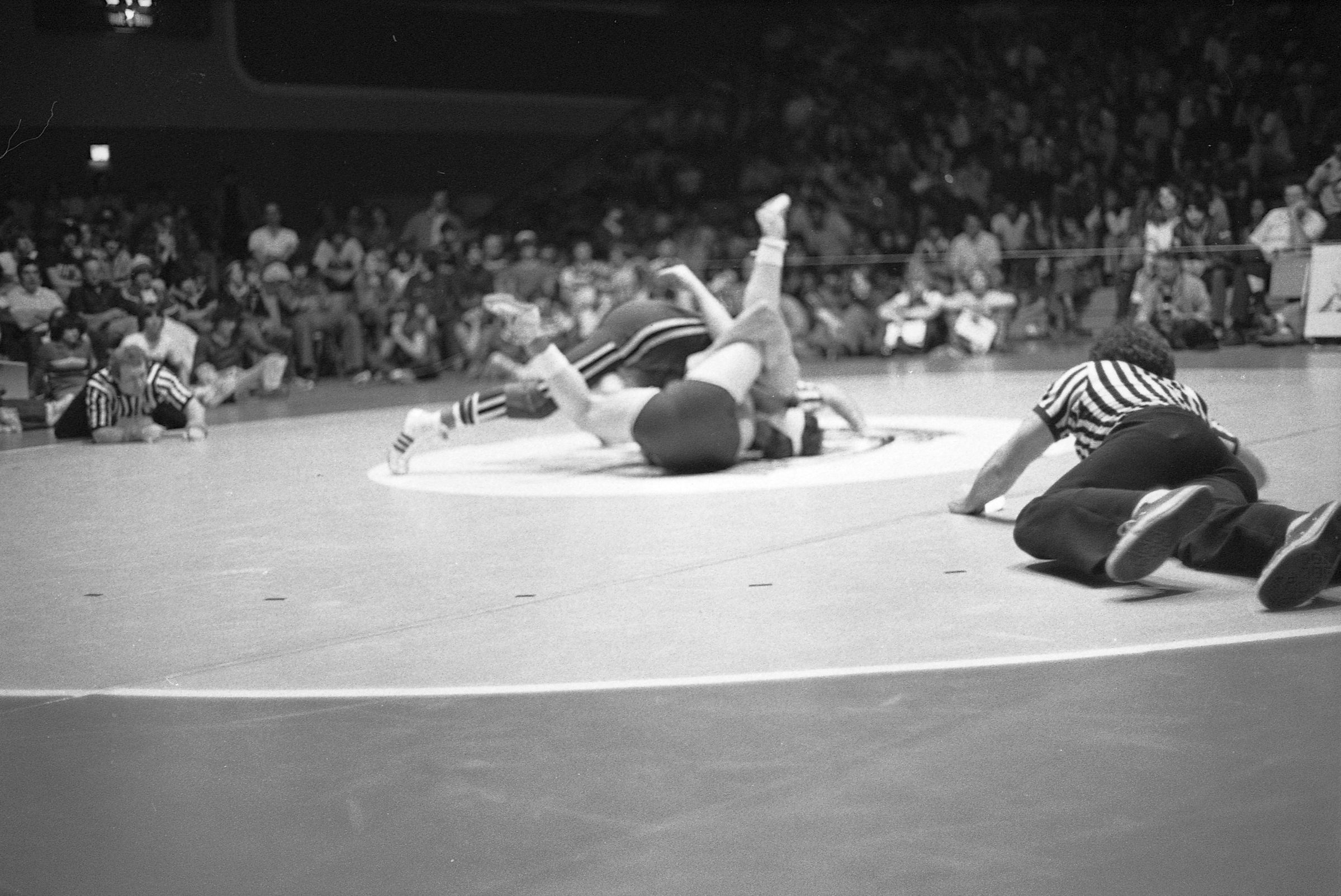Wrestling, 1977. These three black and white negative film strips were created for the Lacey Leader newspaper.Made/Created