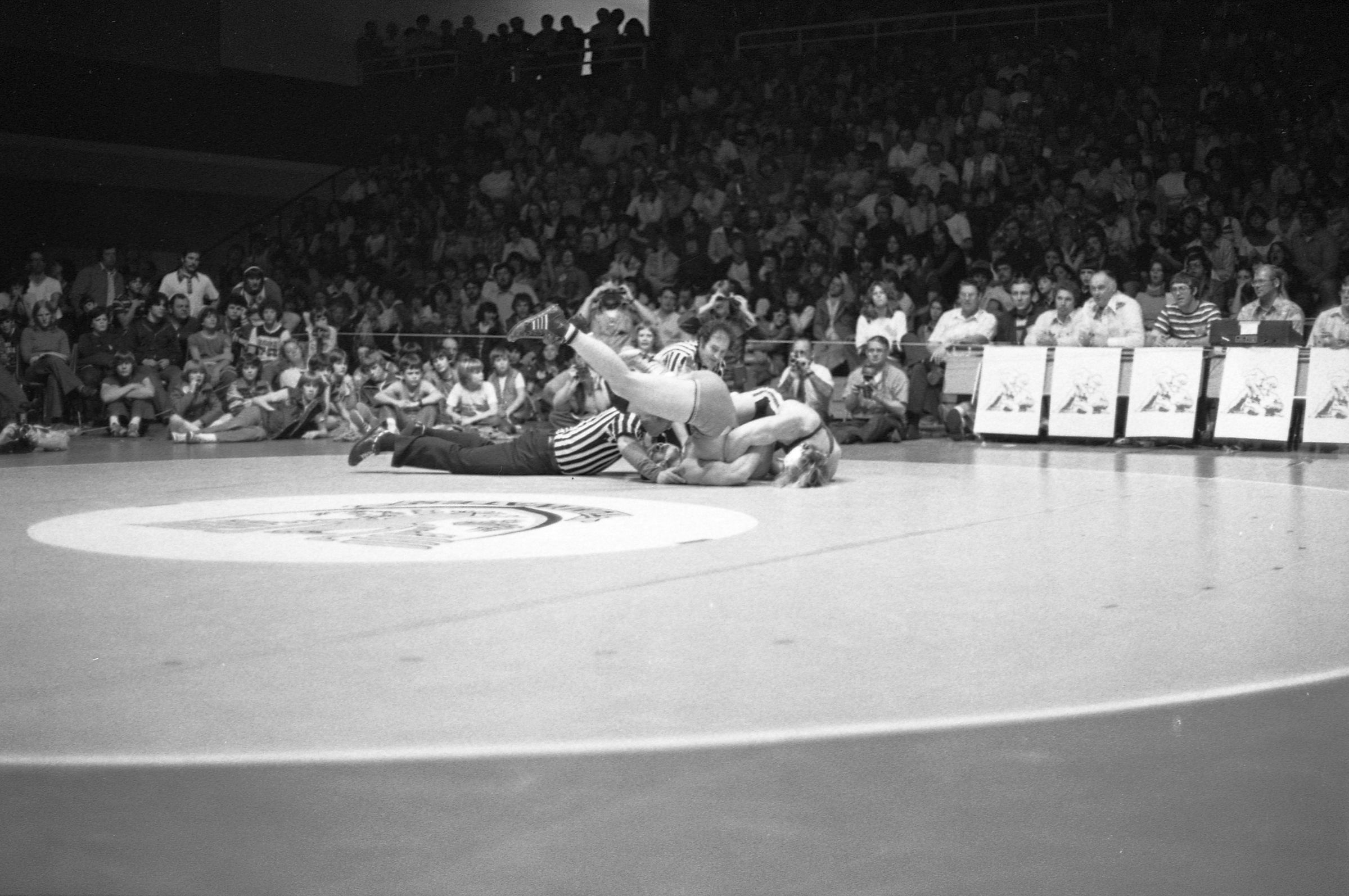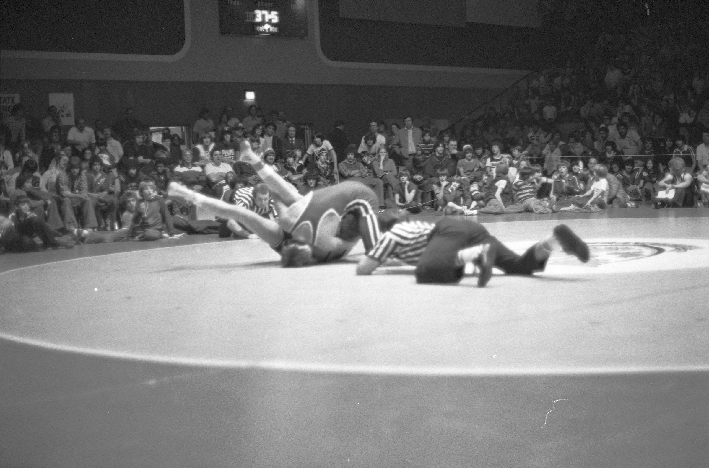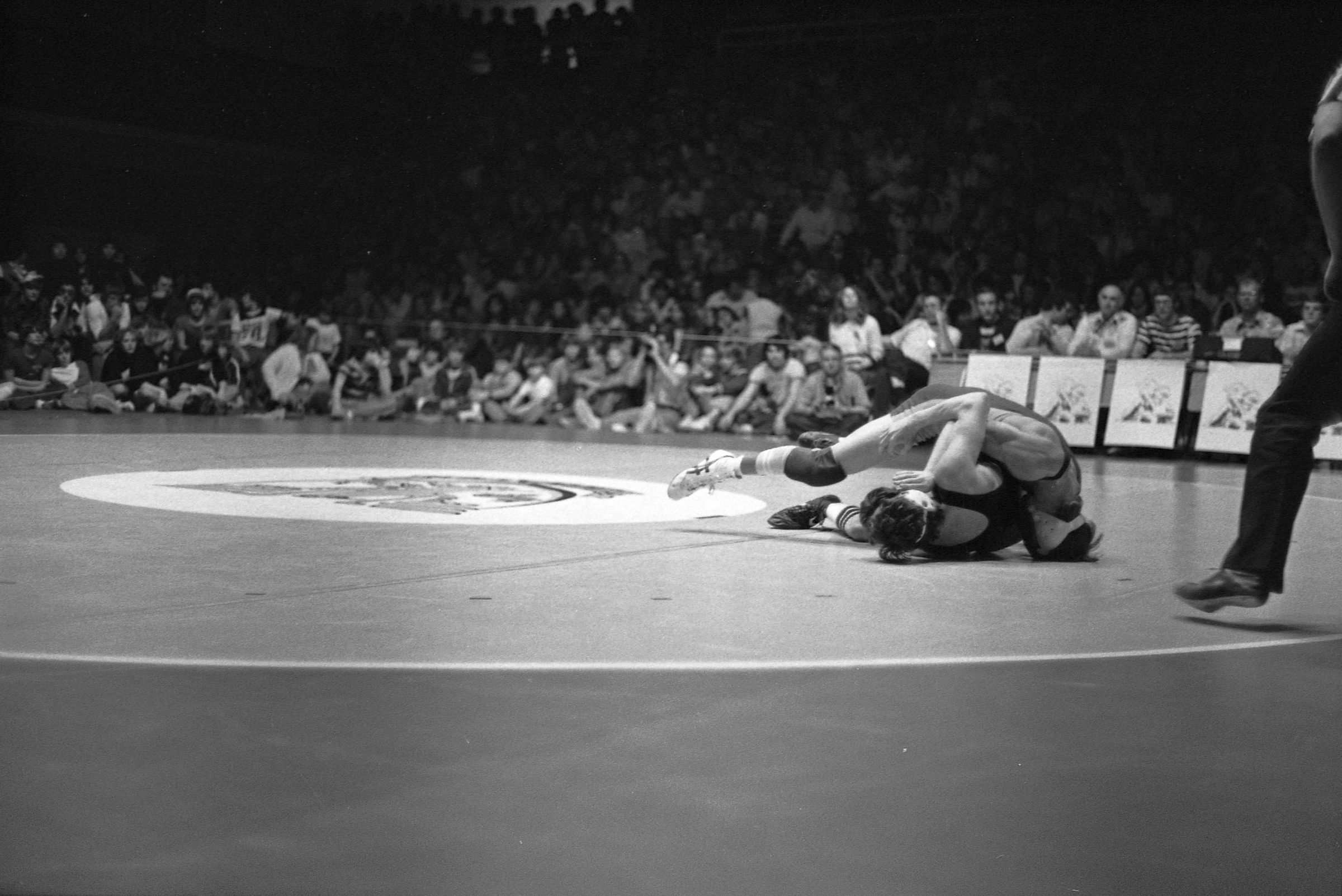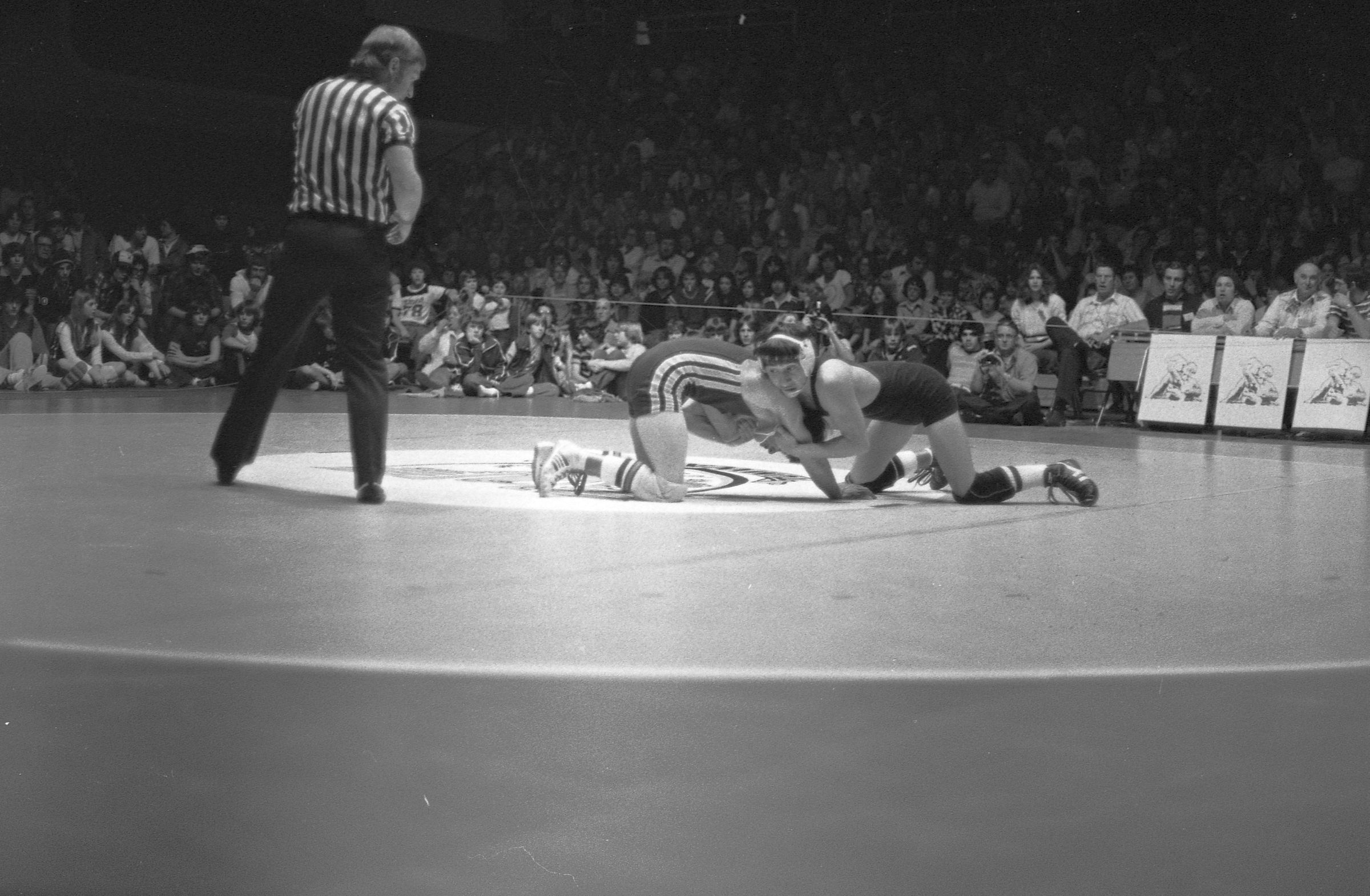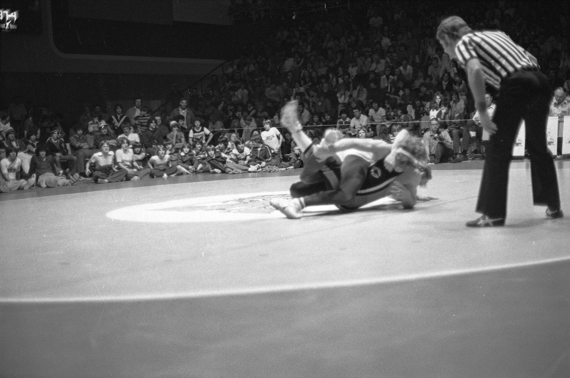 Wrestling, 1977. These three black and white negative film strips were created for the Lacey Leader newspaper.Made/Created