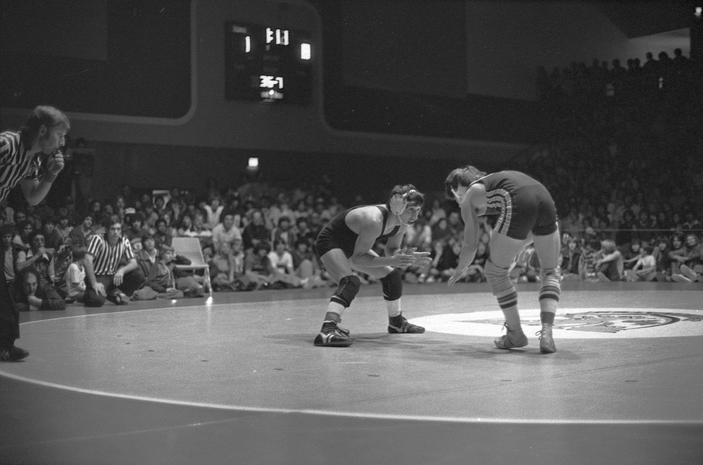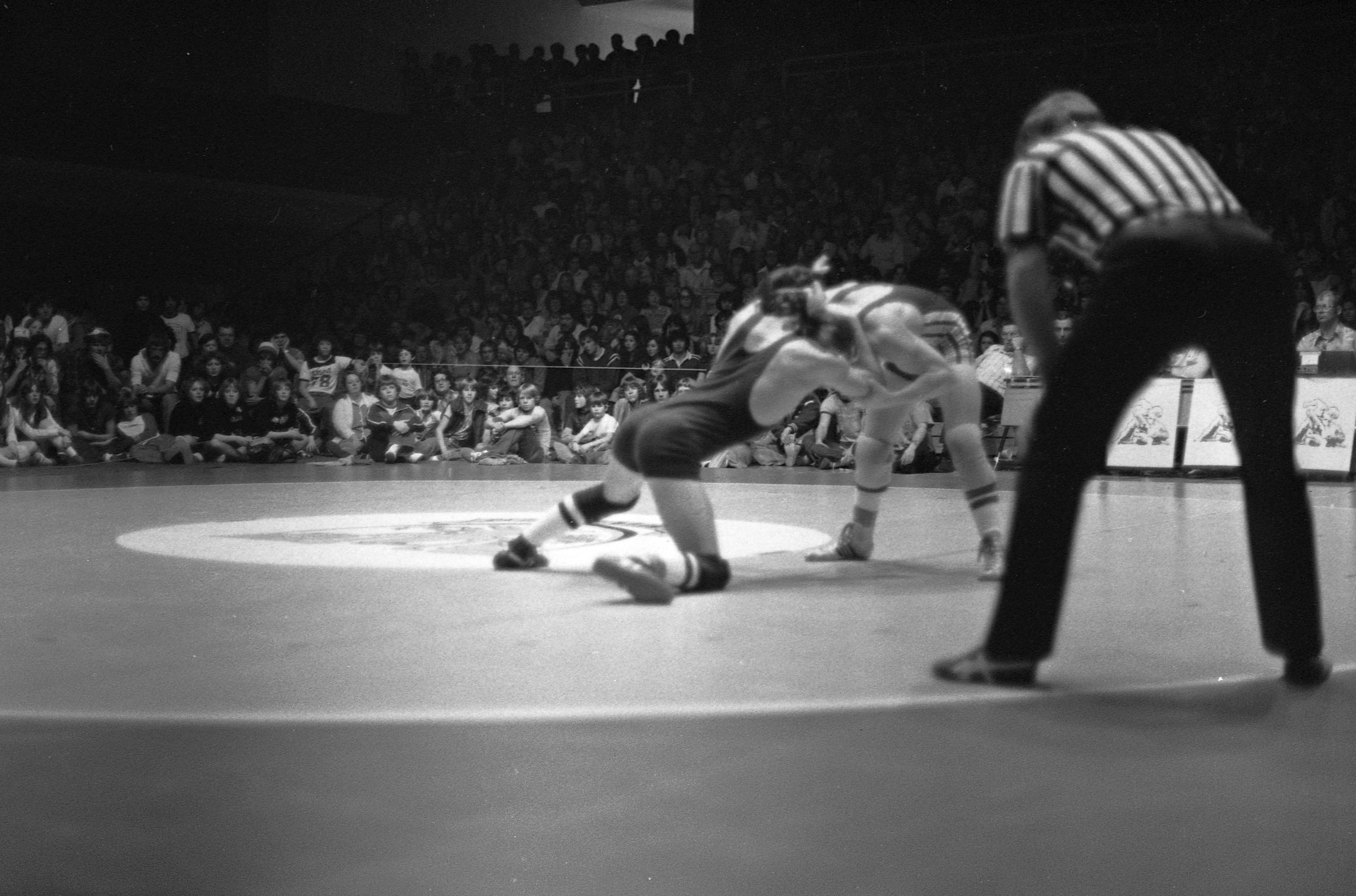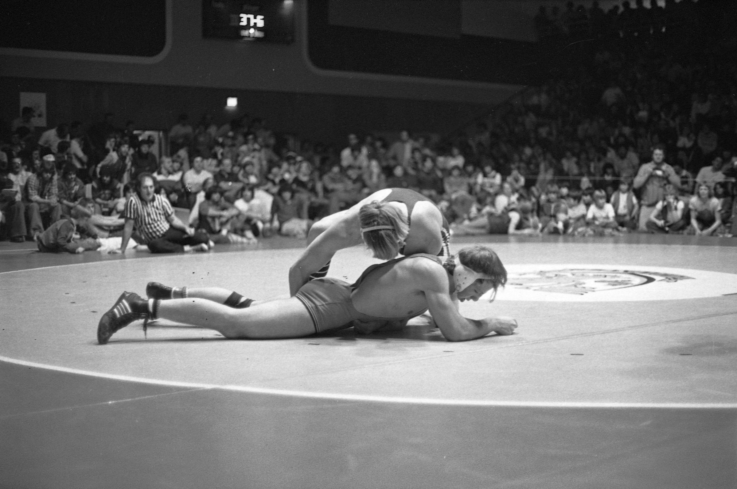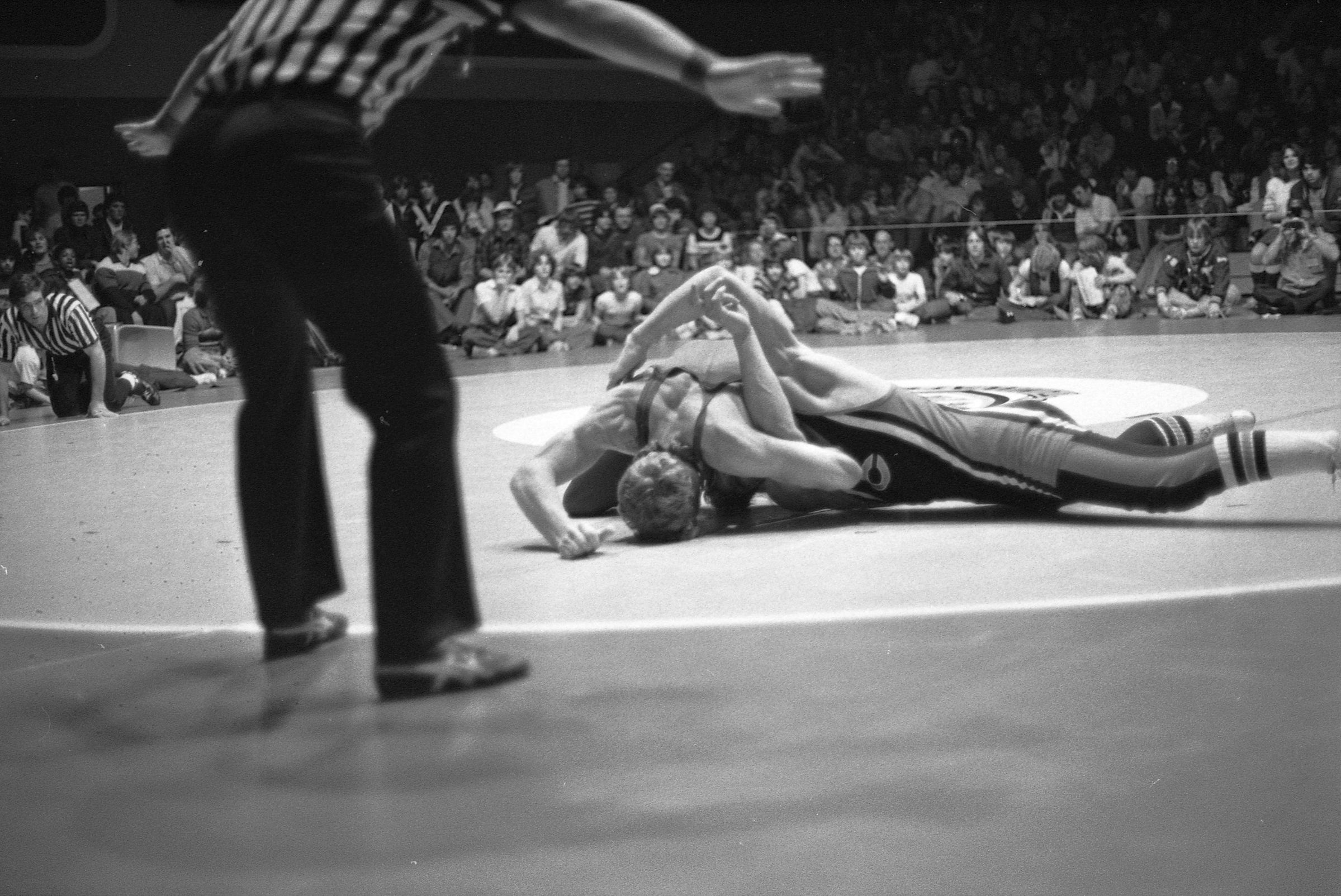 Wrestling, 1977. These three black and white negative film strips were created for the Lacey Leader newspaper.Made/Created