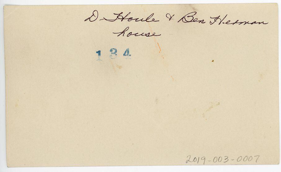On the back of the photo it reads: "D. Houle & Ben Herman house" and stamped in blue ink: "134"Made/Created