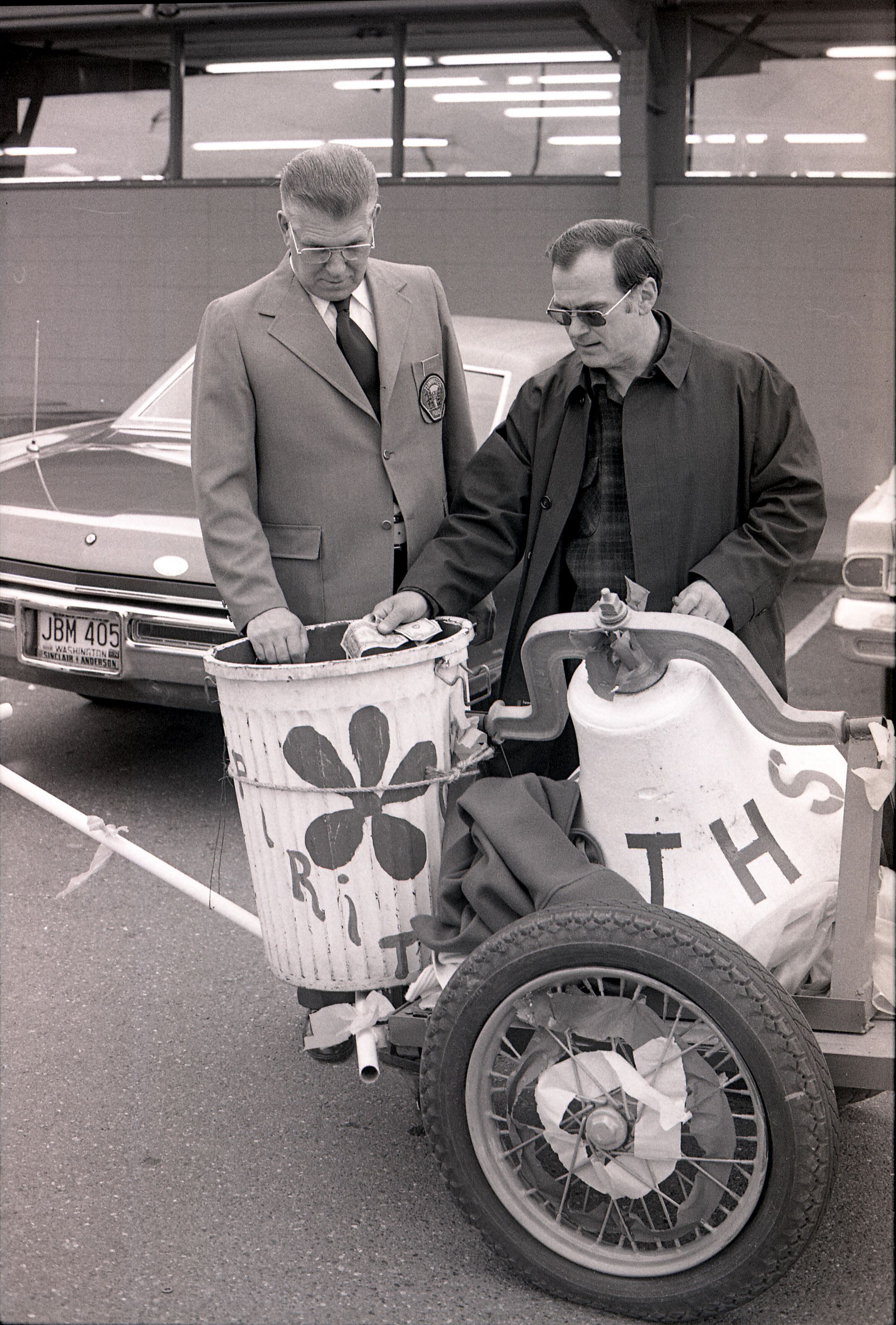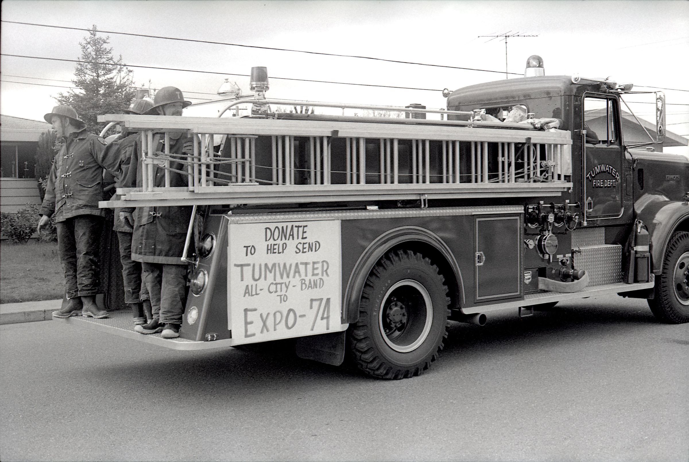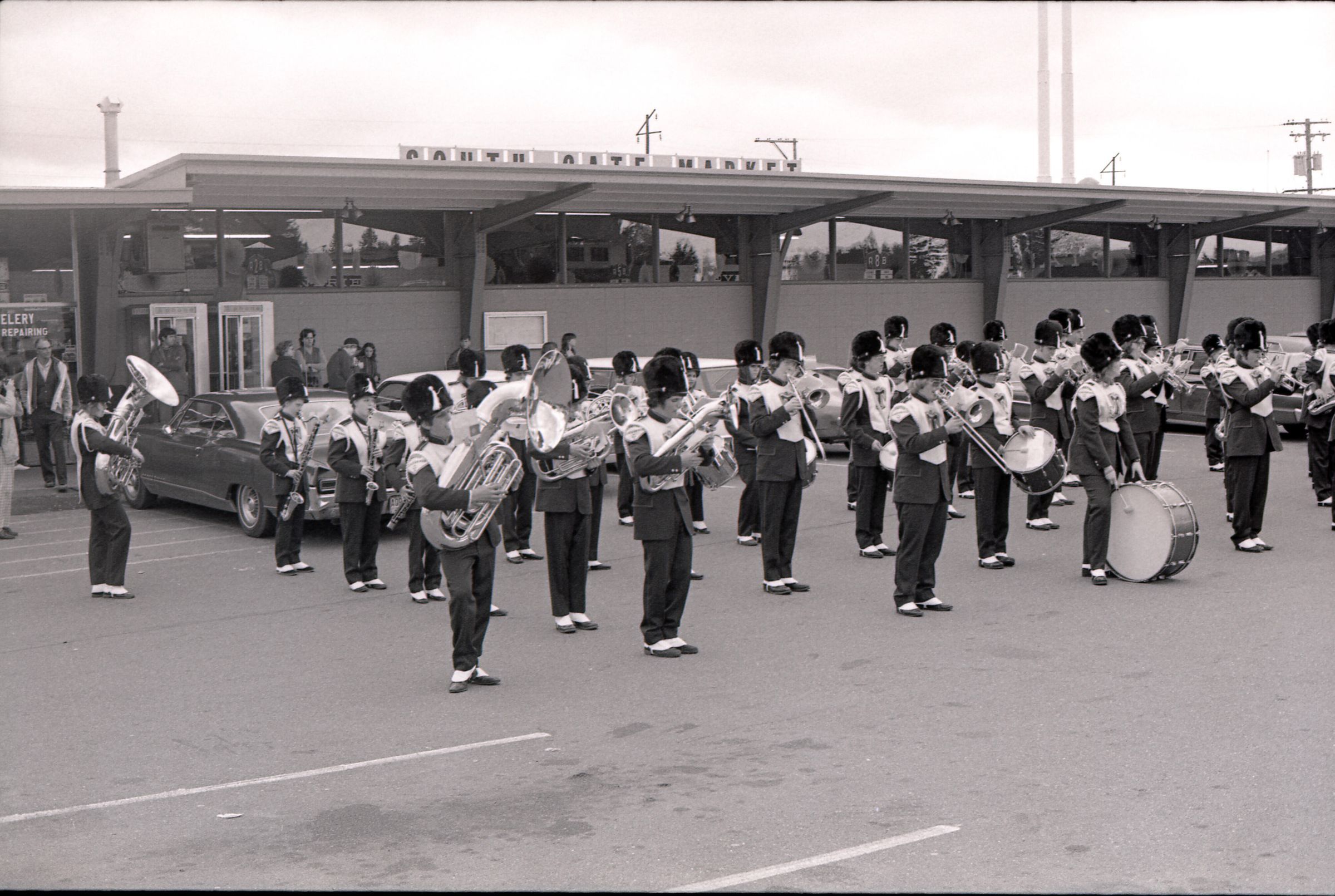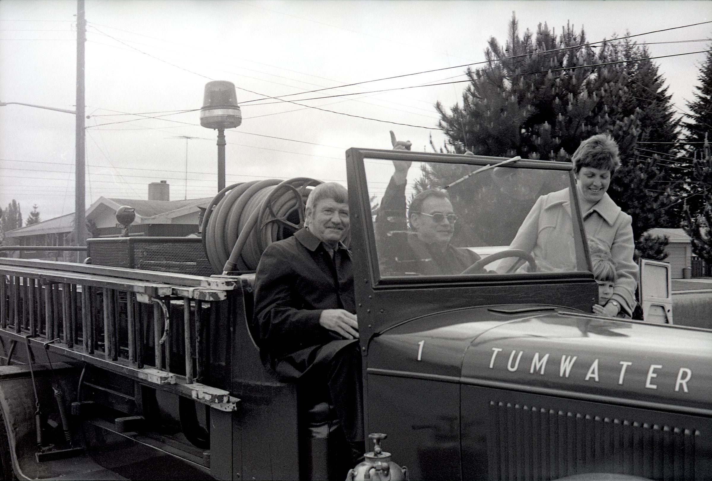 Parade, unknown date. These photos were taken for the Lacey Leader newspaper. There are 3 strips of negatives in this sleeve all depicting different components and people within a parade in Tumwater, Washington, USA.Made/Created