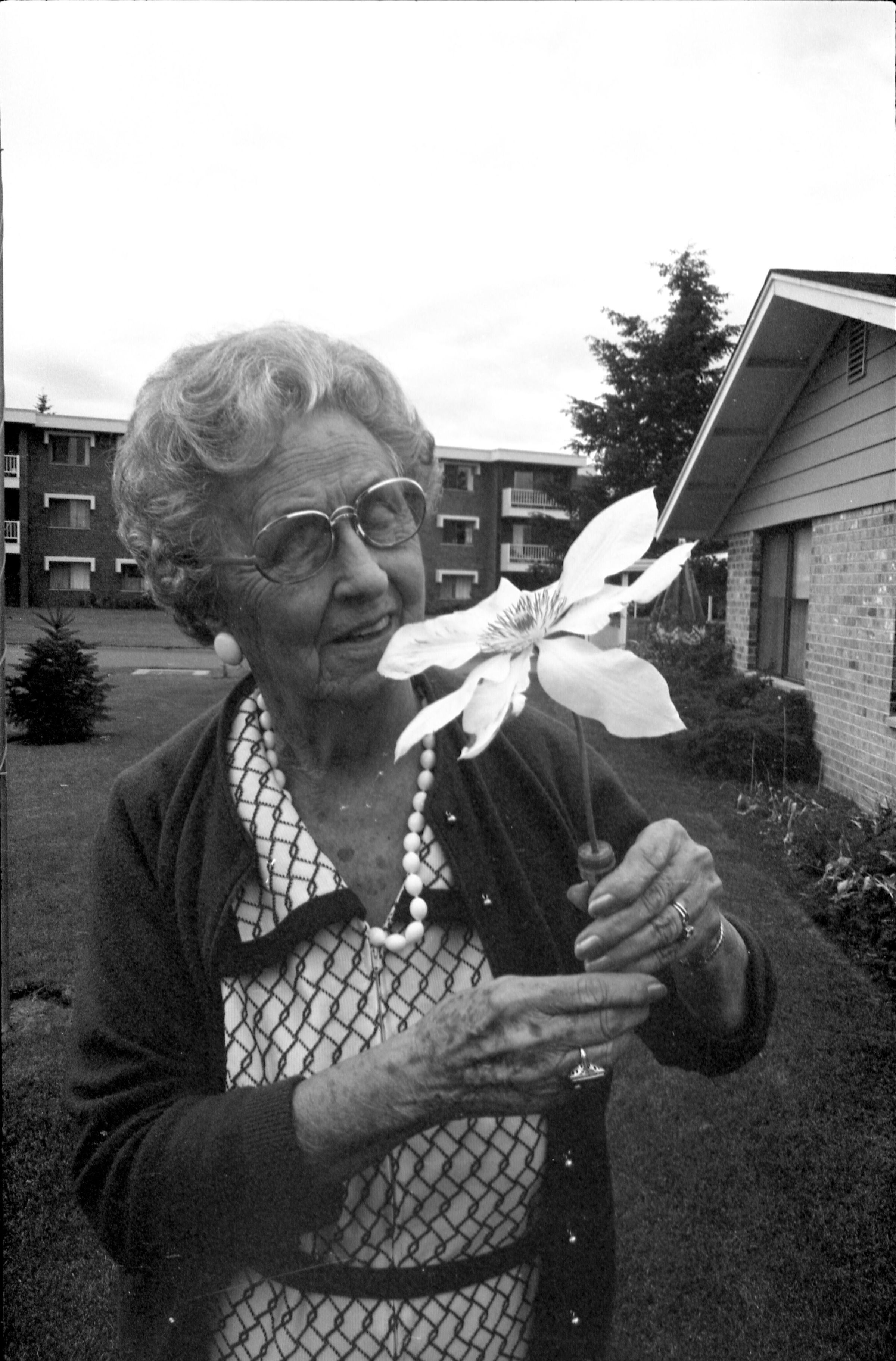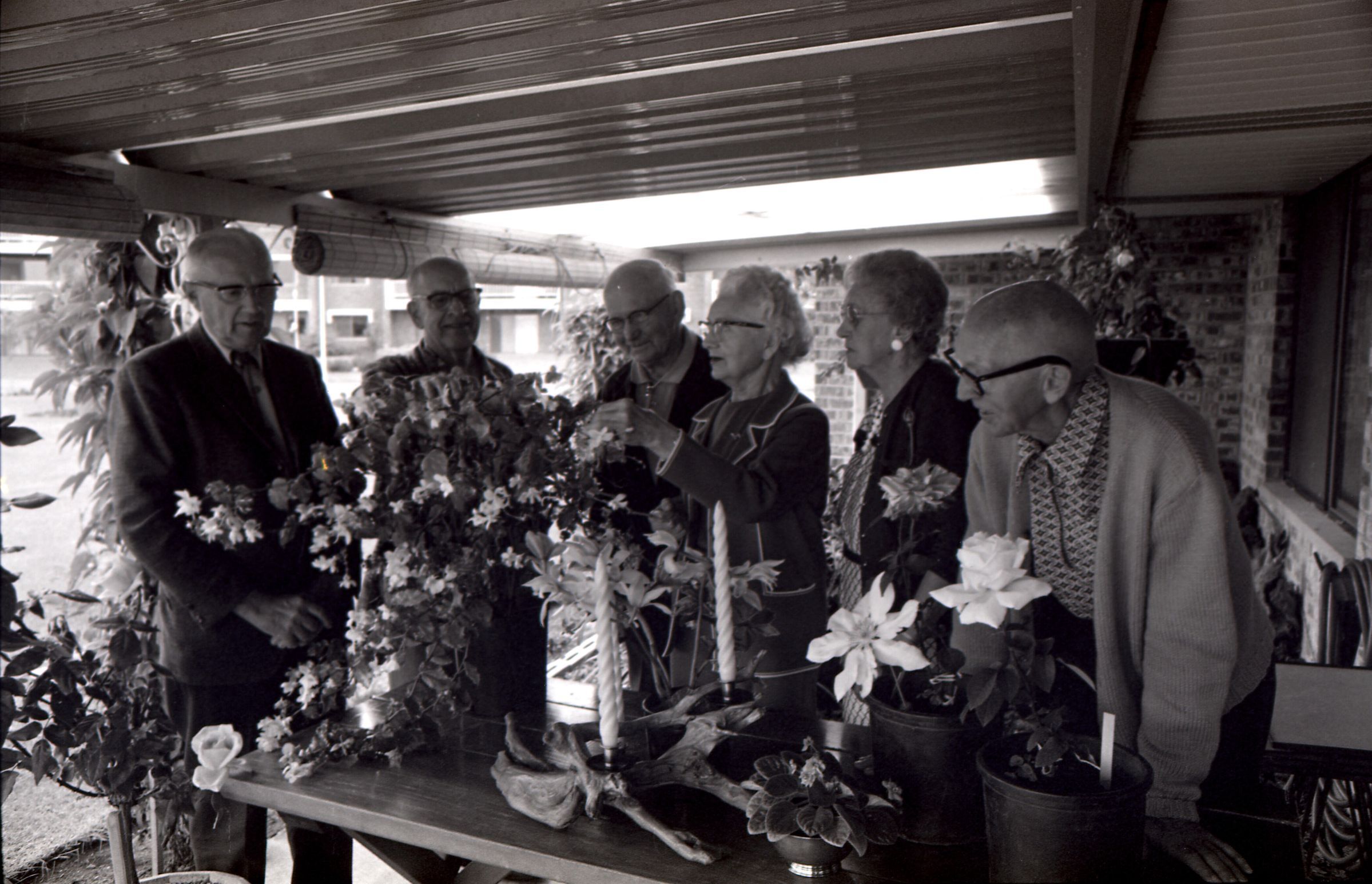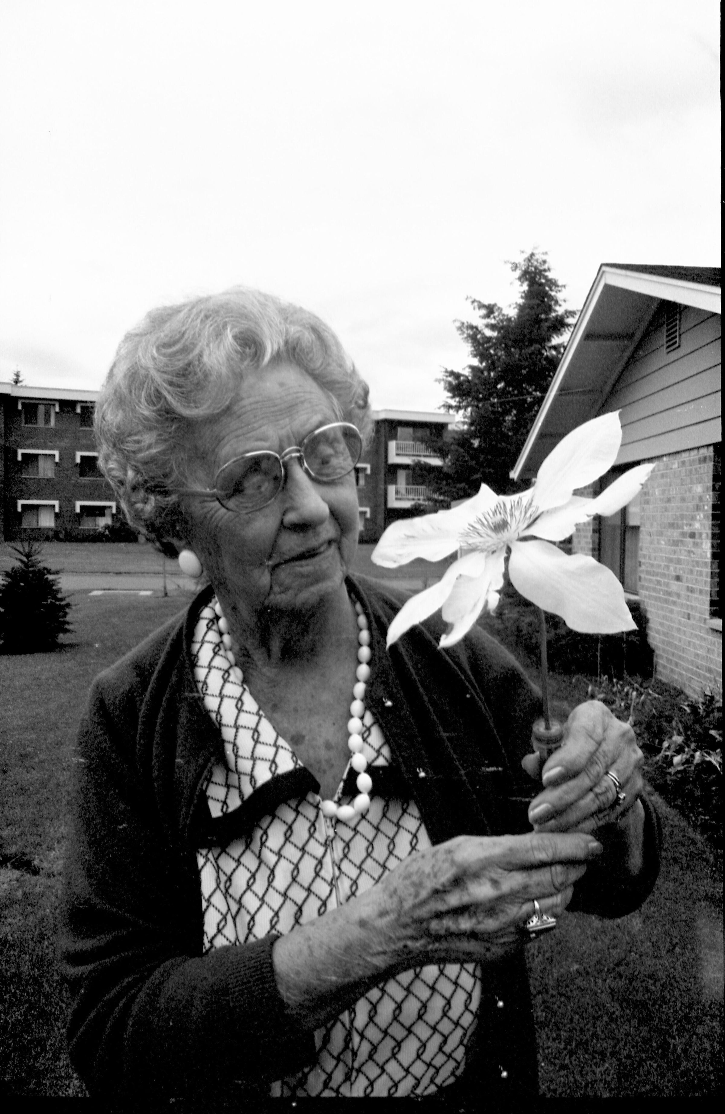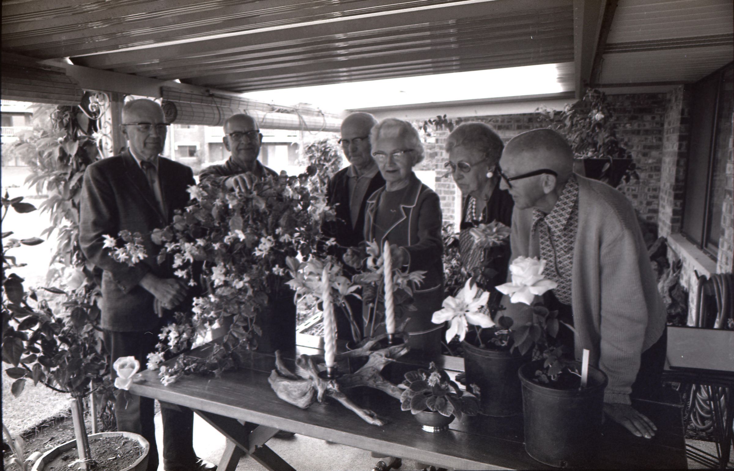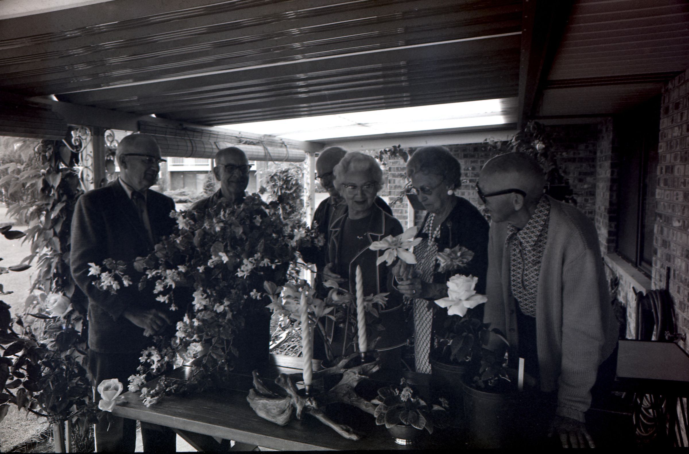 Panorama City Flower Show, 1973. These 3 negative strips were made for the Lacey Leader newspaper. The event showcased in these photos is the 1973 Panorama City flower show. The photos are all of elderly people posing with flowers that they have grown.Made/Created