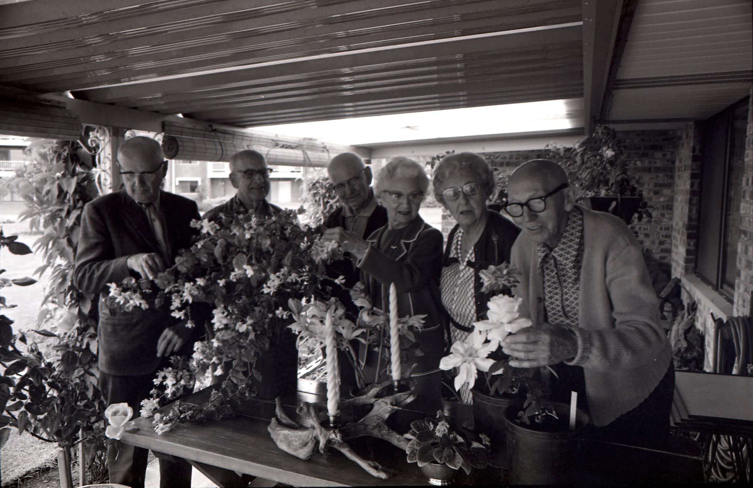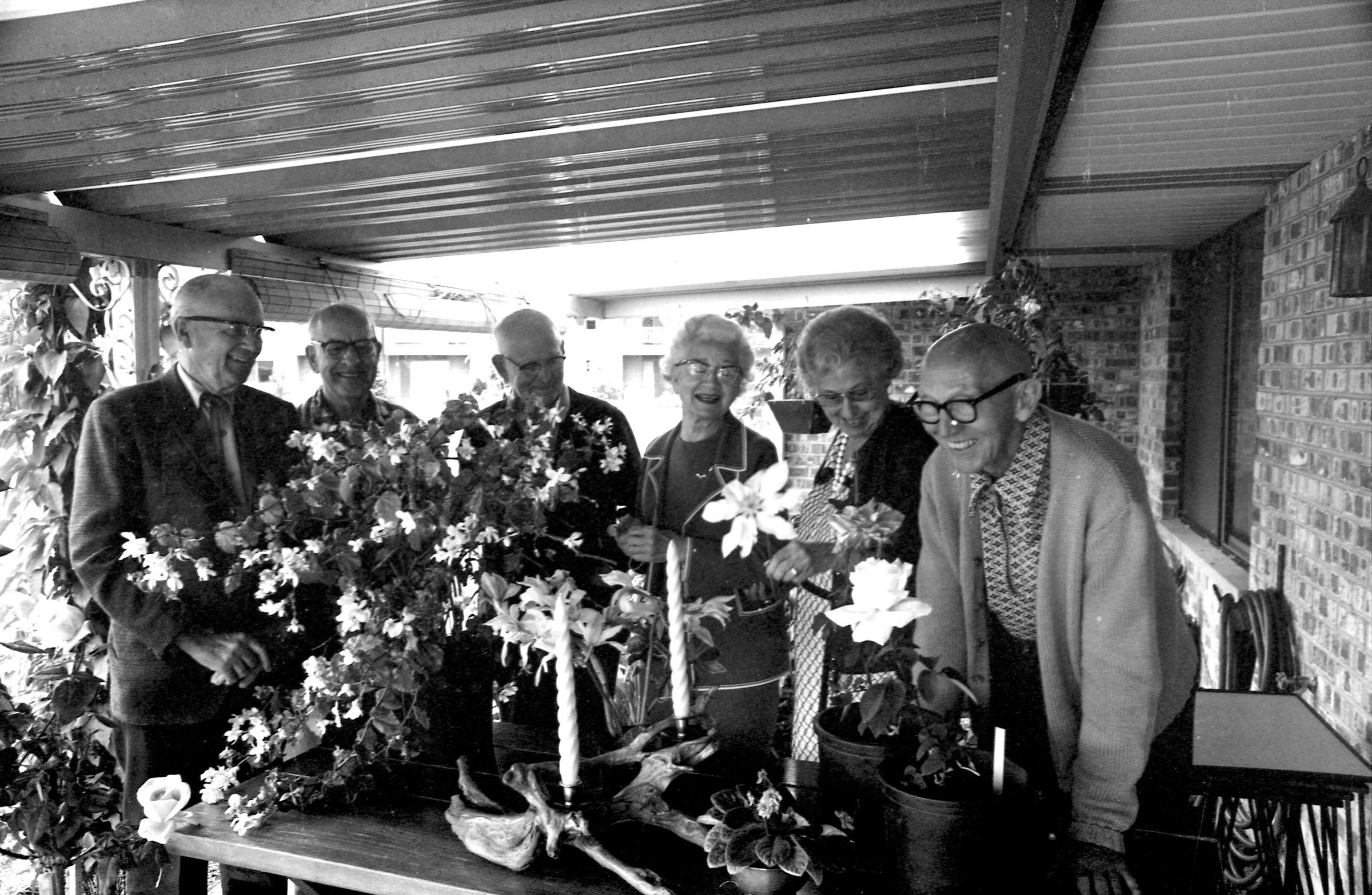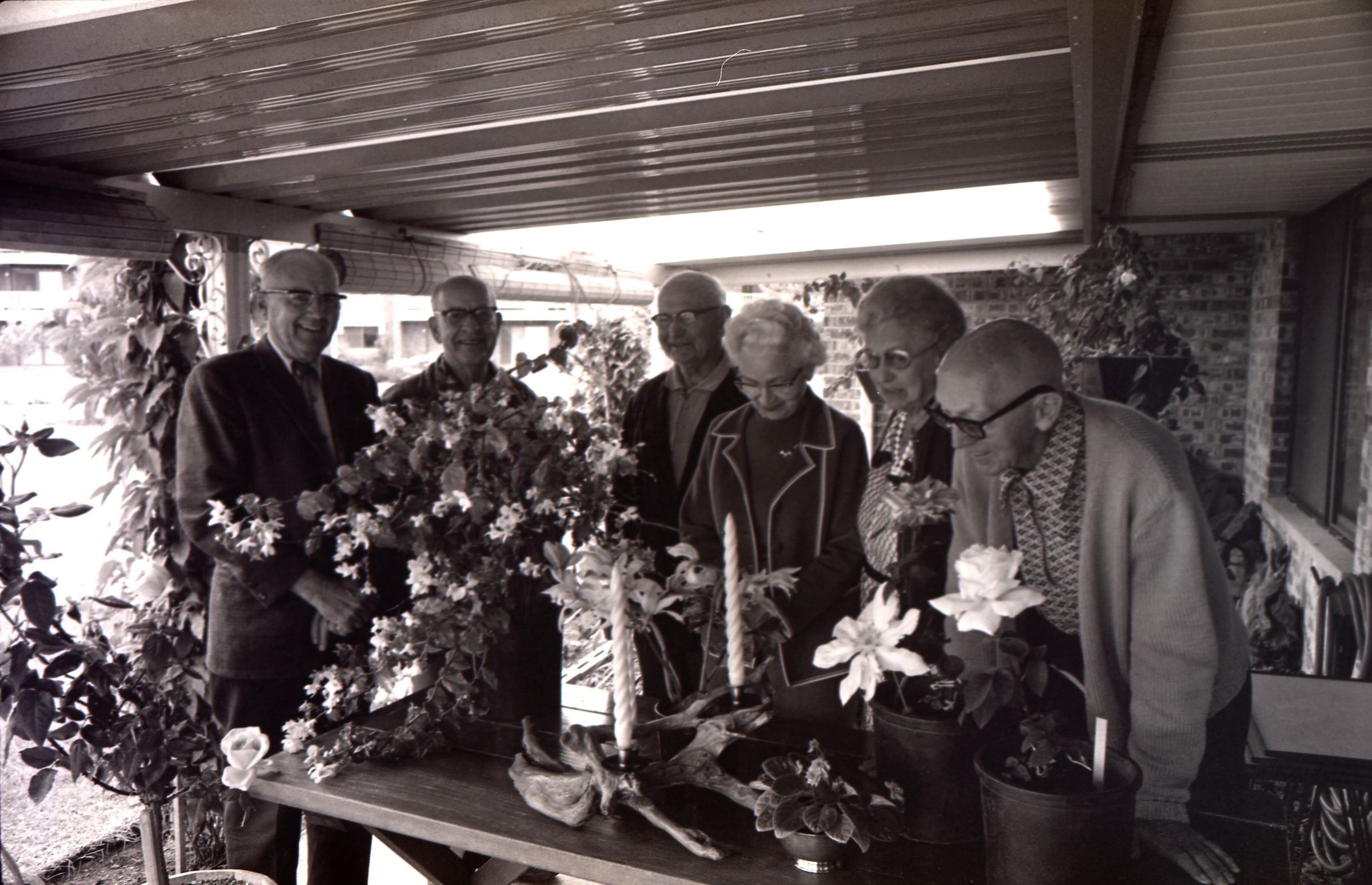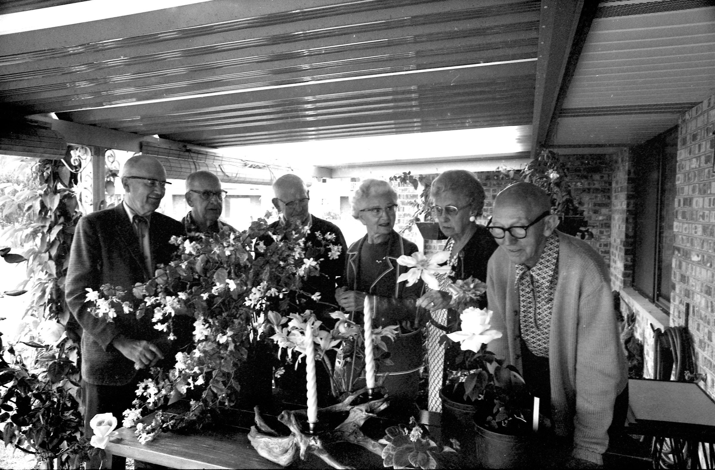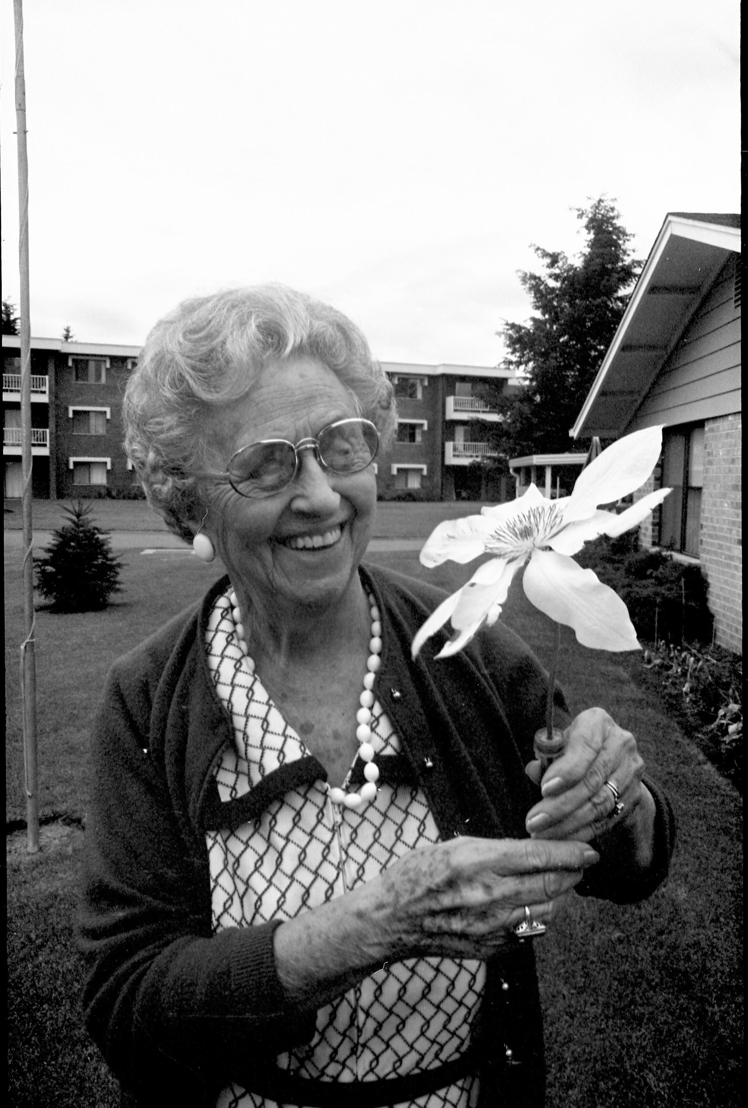 Panorama City Flower Show, 1973. These 3 negative strips were made for the Lacey Leader newspaper. The event showcased in these photos is the 1973 Panorama City flower show. The photos are all of elderly people posing with flowers that they have grown.Made/Created