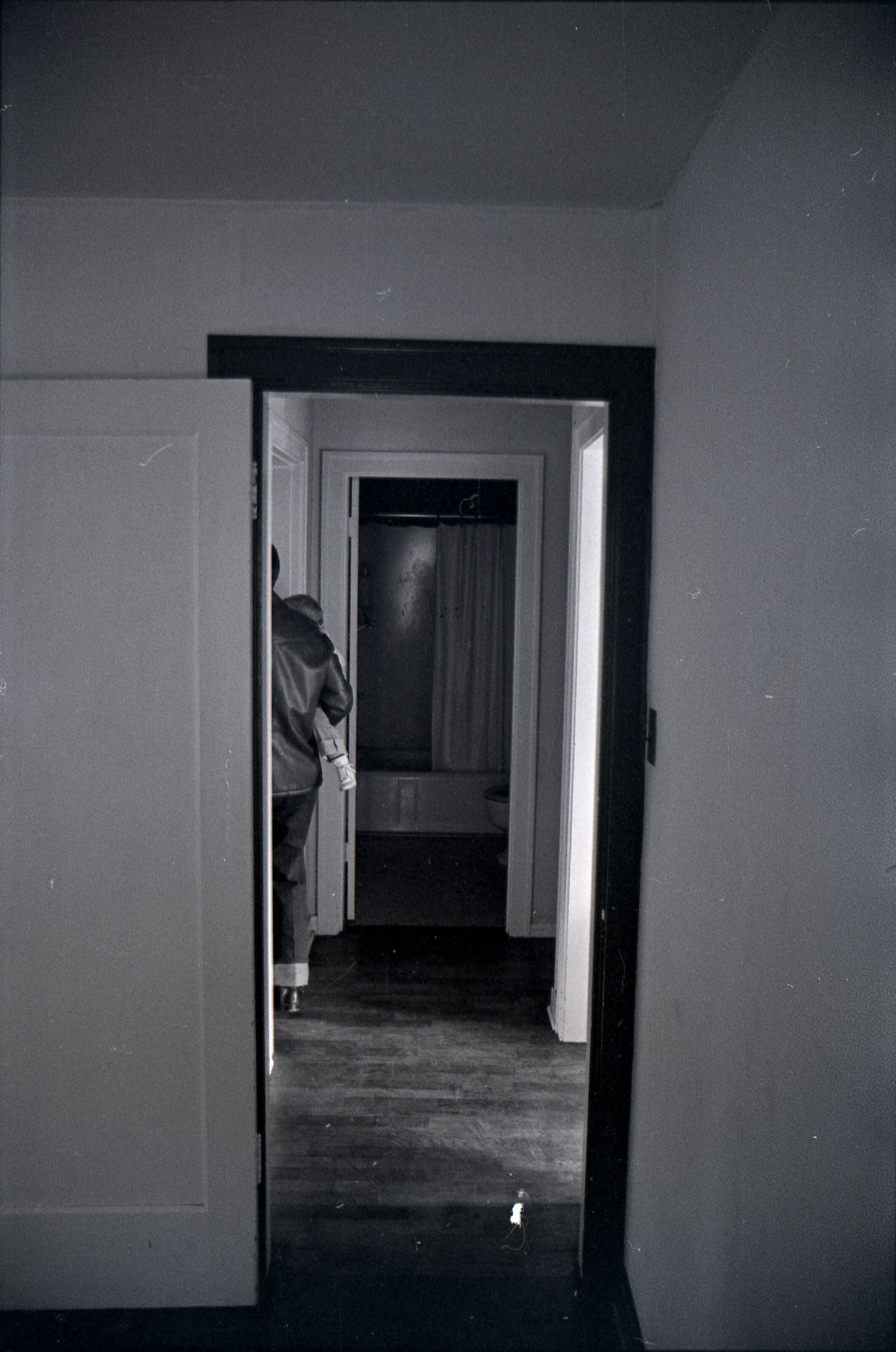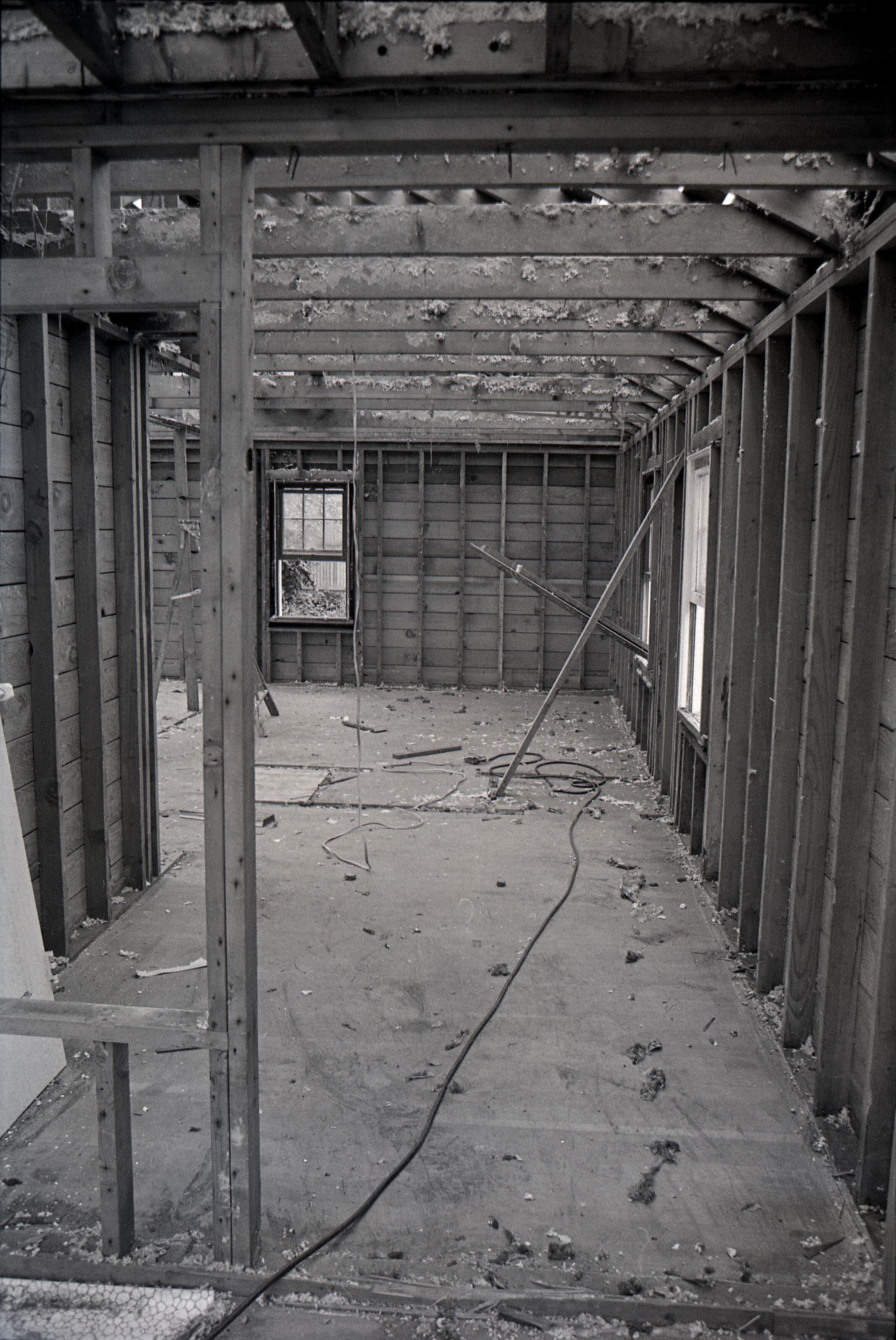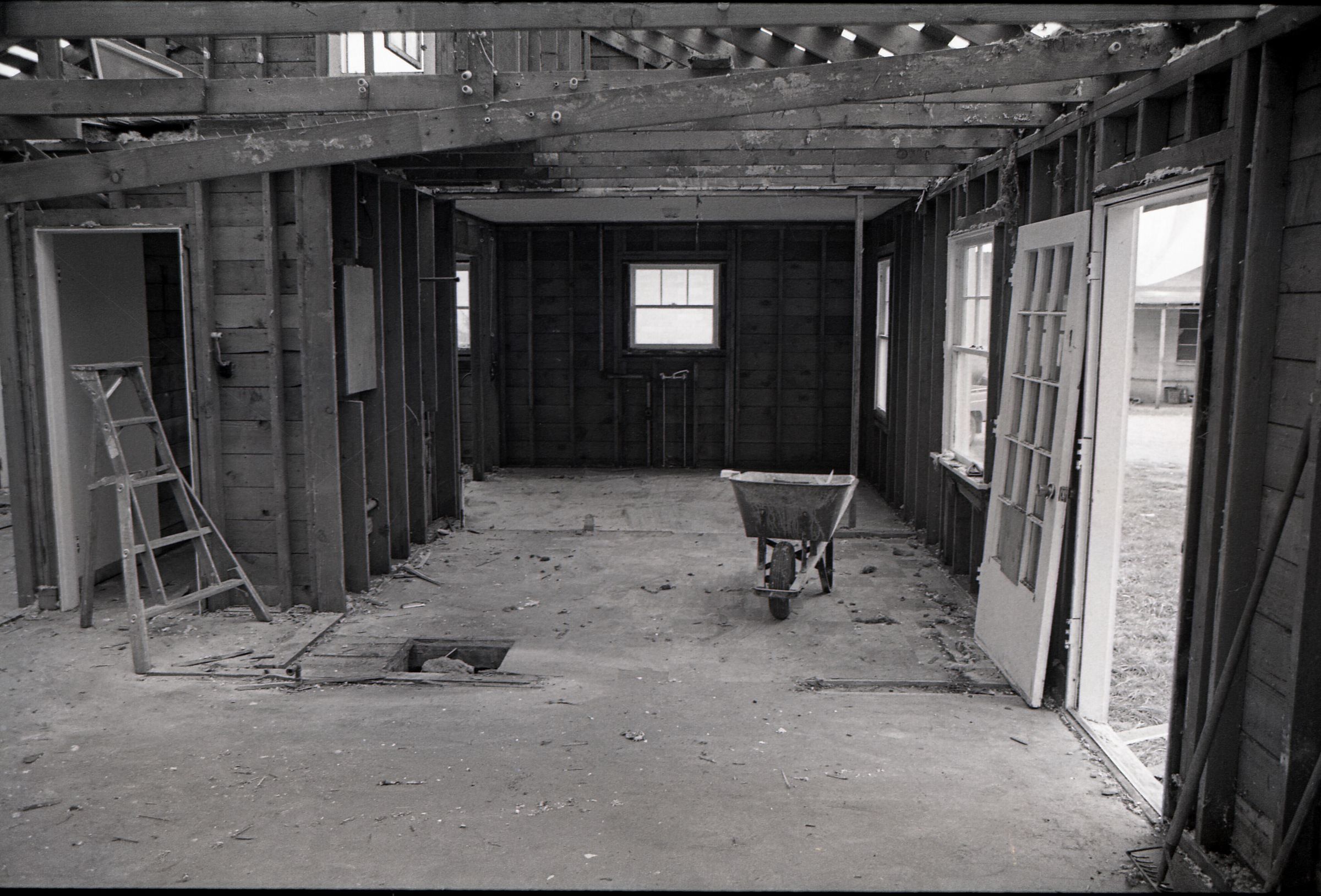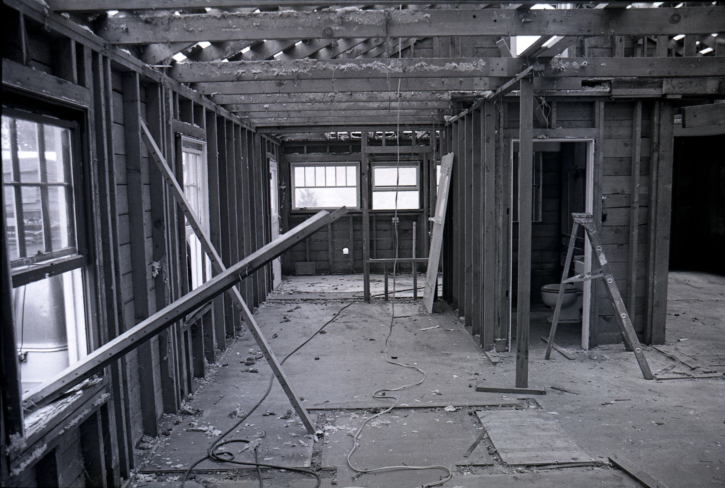 Lacey Leader new office, unknown date. These 9 B&W negative film strips were created for the Lacey Leader Newspaper. Showcased in this sleeve is the construction of a new Lacey Leader office building. The building is in several phases of construction in these photos, from construction such as carpentry of walls and doorways, to the finished office. There are also 2 portraits of an unknown man in this envelope.Made/Created