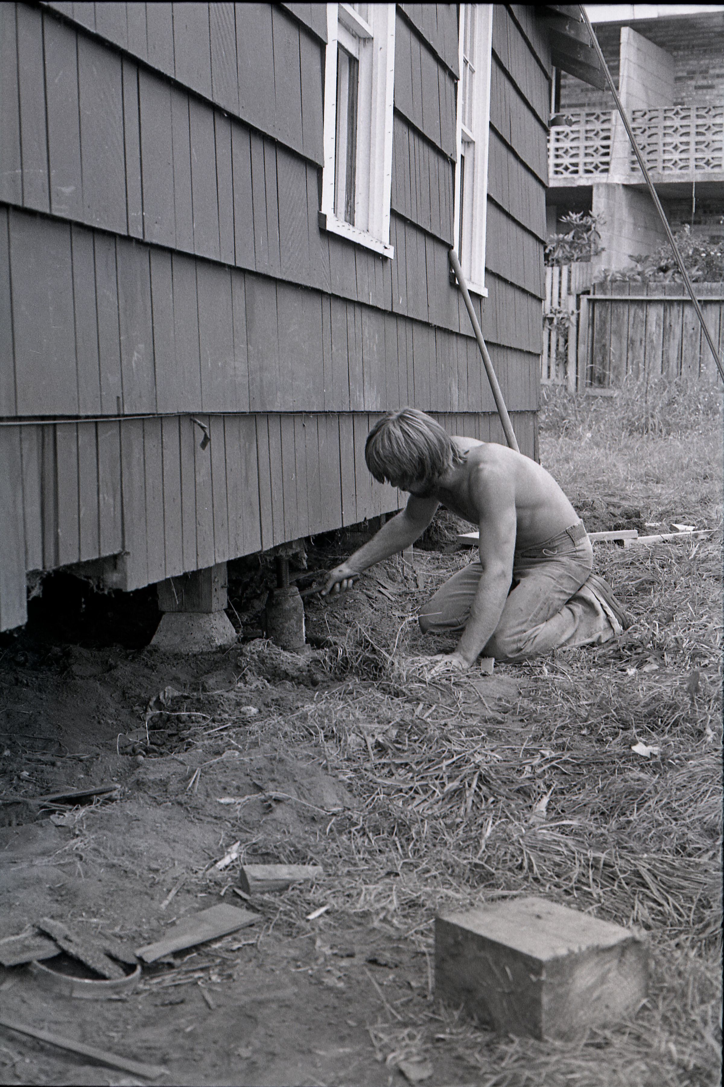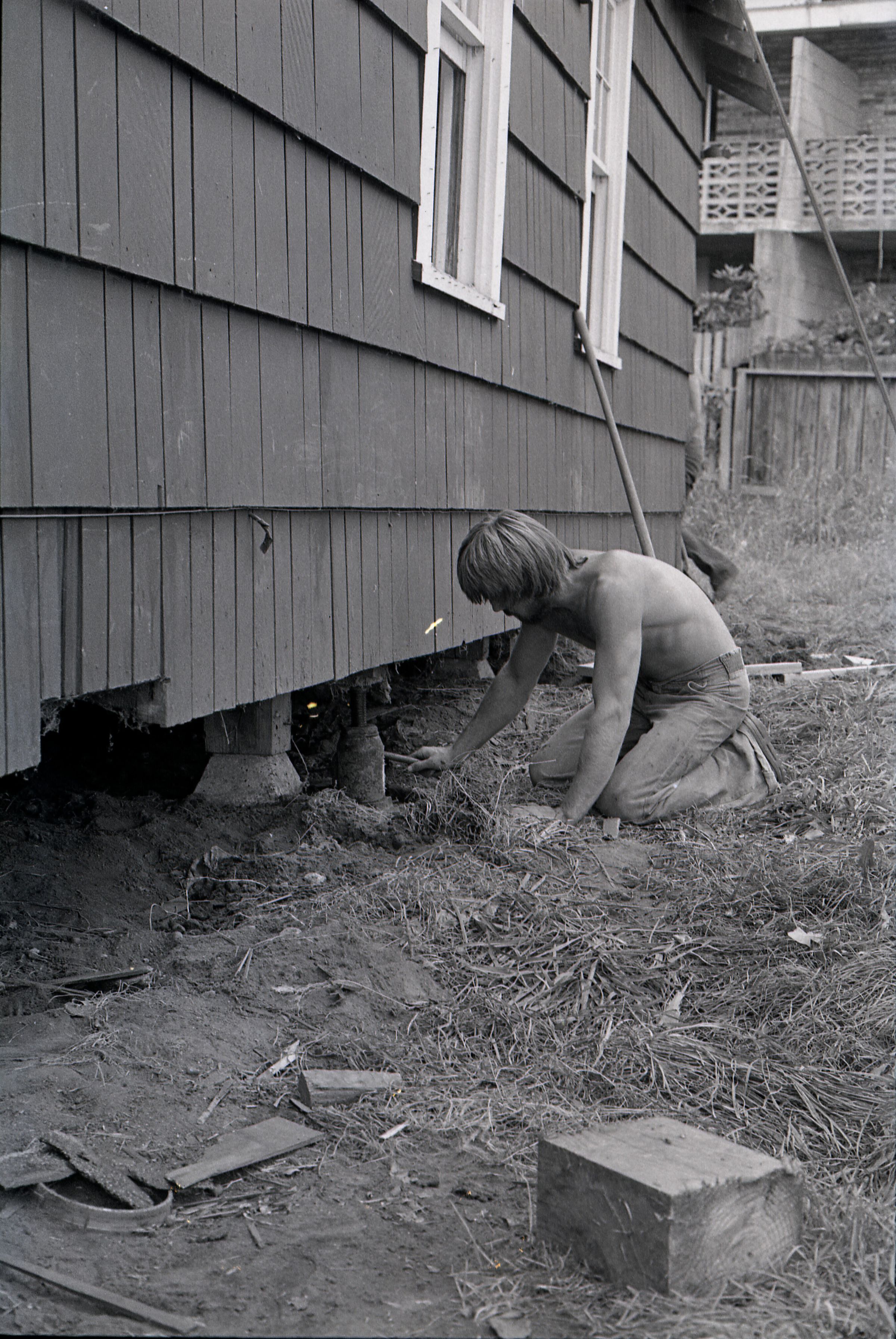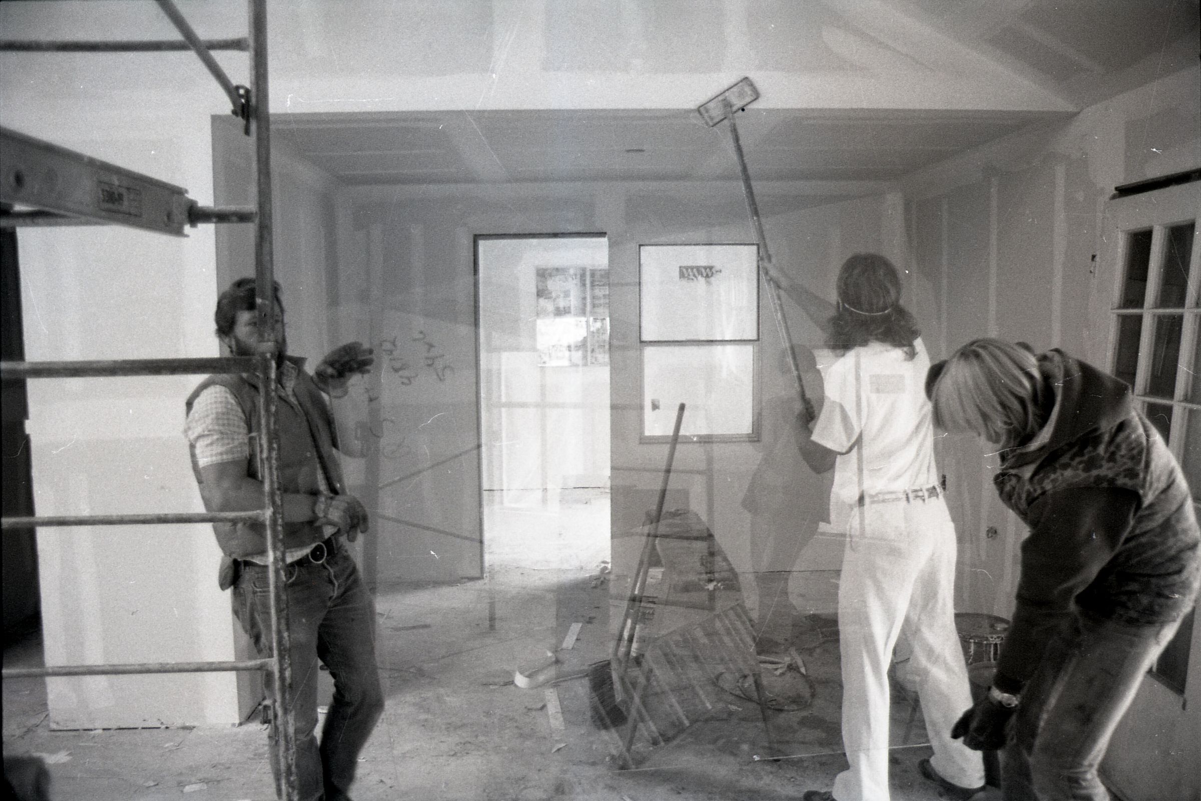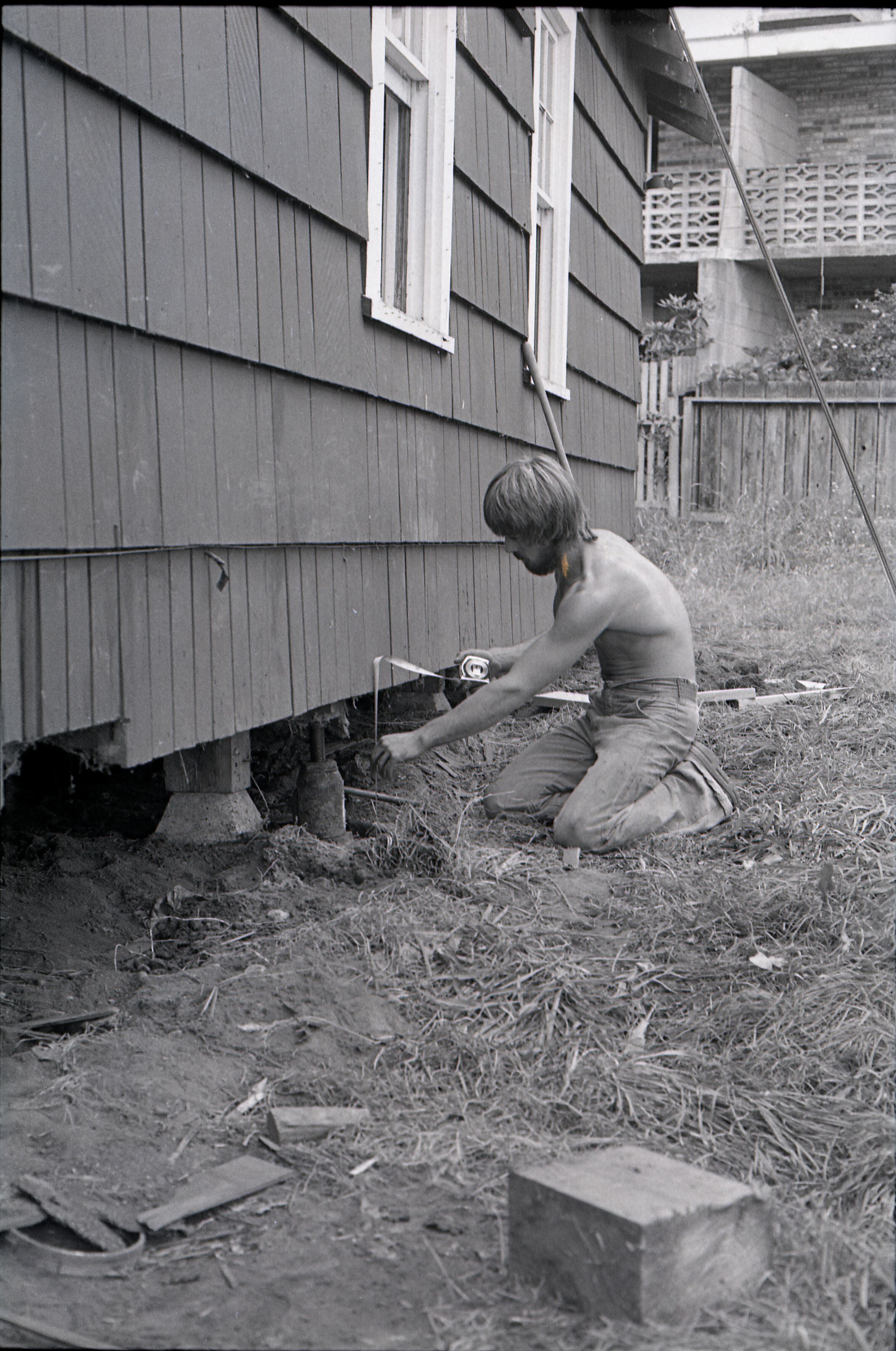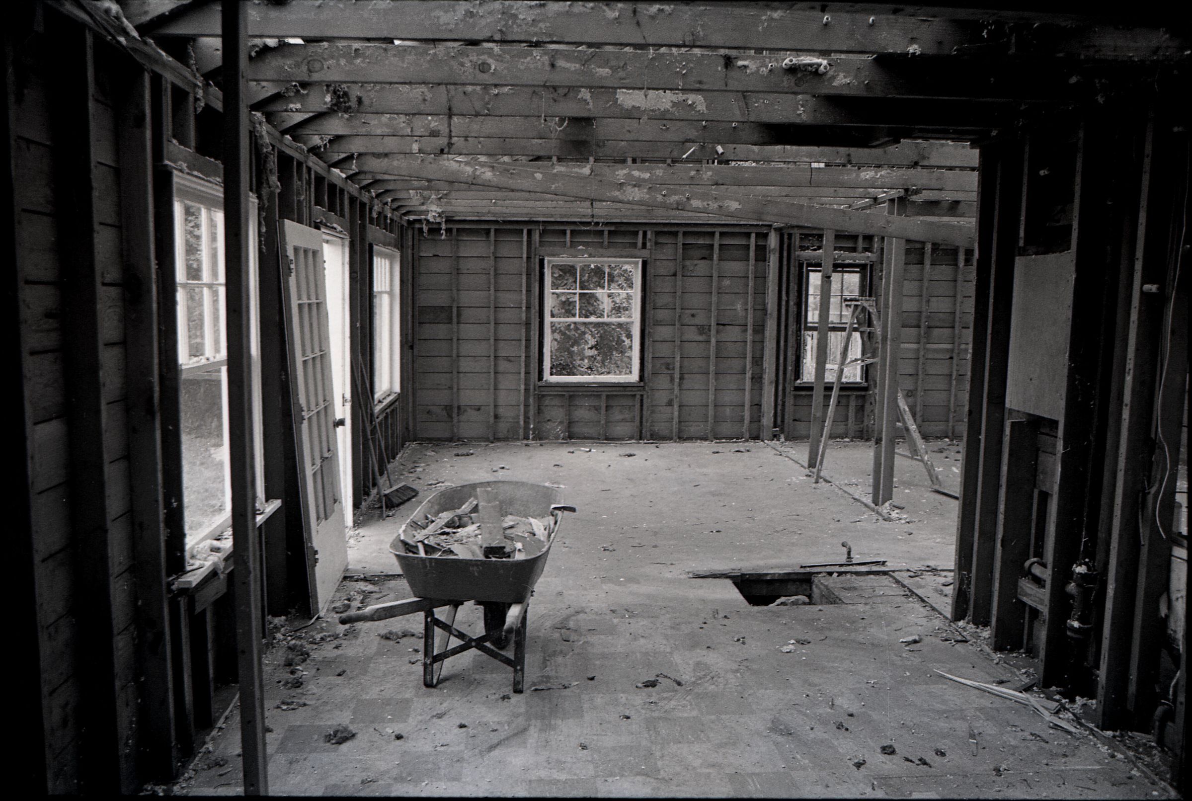 Lacey Leader new office, unknown date. These 9 B&W negative film strips were created for the Lacey Leader Newspaper. Showcased in this sleeve is the construction of a new Lacey Leader office building. The building is in several phases of construction in these photos, from construction such as carpentry of walls and doorways, to the finished office. There are also 2 portraits of an unknown man in this envelope.Made/Created