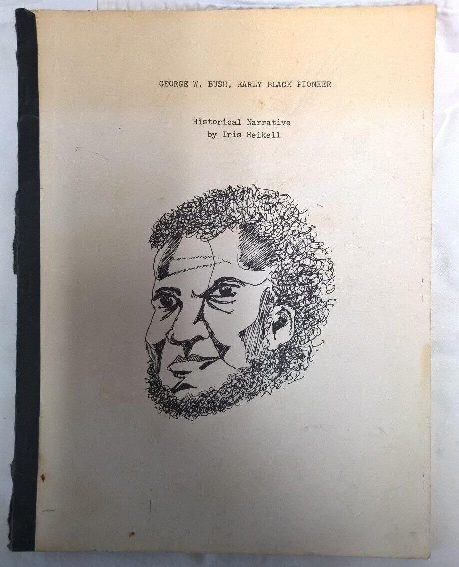 2000-032-0006.1 is the book. "This is the story of George Washington Bush, pioneer Negro, who came to Washington in 1844. The wagon party he travelled with founded the settlement of Tumwater in 1845. One of Bush's sons served two terms in the Washington Legislature. This story was written by Iris Heikell, Woodburn, Oregon, whose ancestors, Joseph Parrott and David Kindred, were in he same wagon train. Mrs. Heikell, a former school teacher, has spent several years researching her book. An adaptation was first published in twelve issues of "The Bulletin", Molalla, Oregon, beginning August 13, 1975.