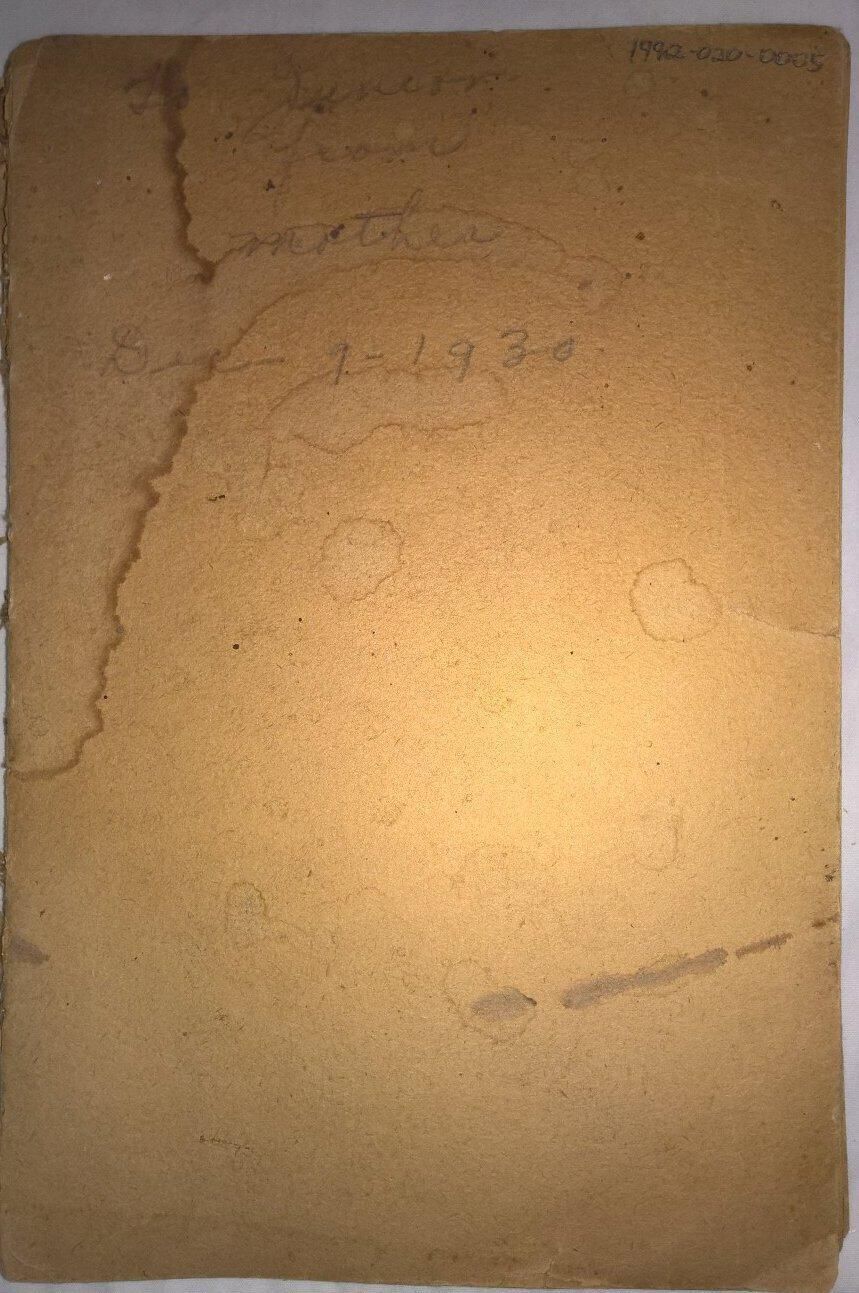 It is made of thick light brown paper with no cover. The binding strings are visible and beginning to come loose.Lexicon