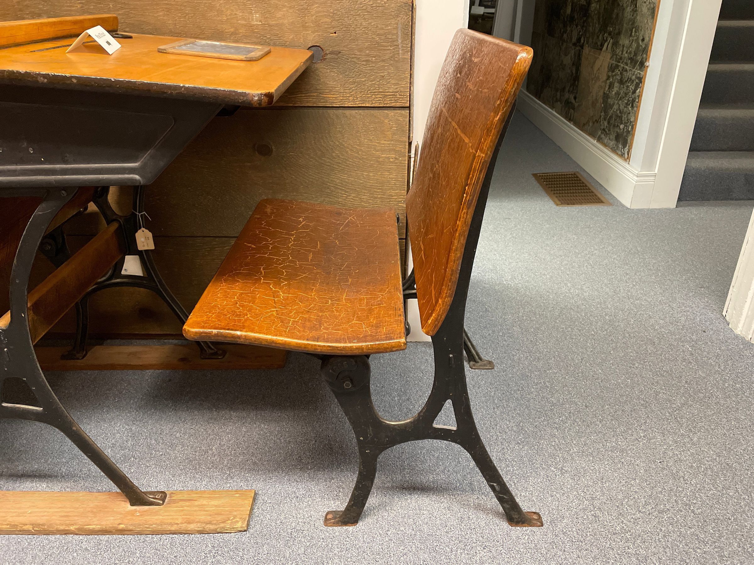 Old wooden school desks. Purchased by donor from Carol Nichols who used them as study desks for her children. Original owner unknown.