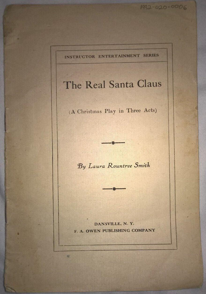 This is a short play featuring nine chorus parts, Santa Claus, a girl, and an elf. There are several songs built into the script with direction to sing them to the tune of other songs. The front cover has been removed, though on the inside of the back cover is a list of other materials in the series by the same publisher.