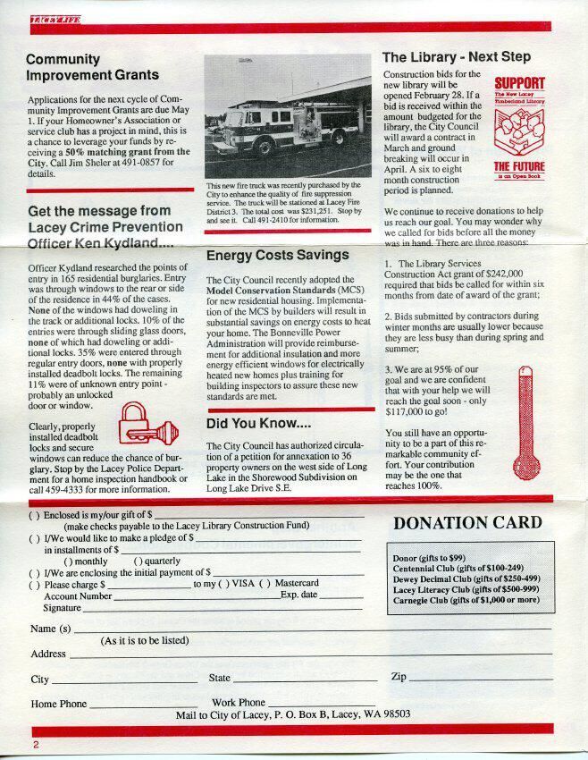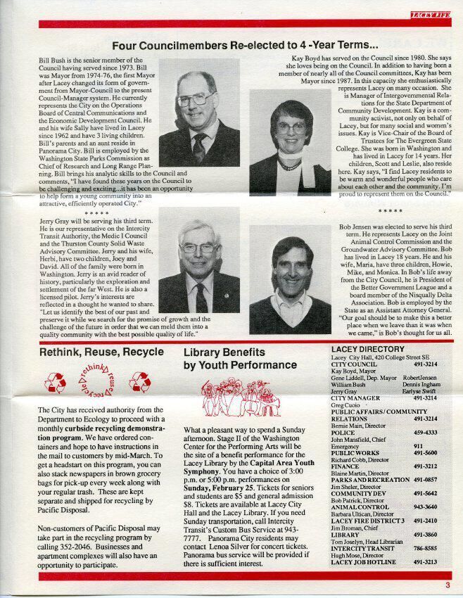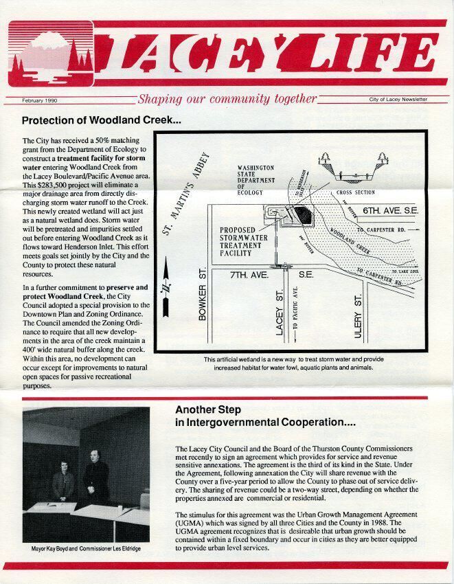 Government Services, Lacey Library, Woodland Creek, Washington State Department of Ecology, Thurston County Commissioners, Urban Growth Management, Community Improvement Grant Program, Shorewood Subdivision, Capital Area Youth Symphony, The, Lacey Parks and Recreation, Zoning