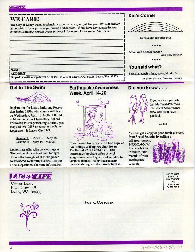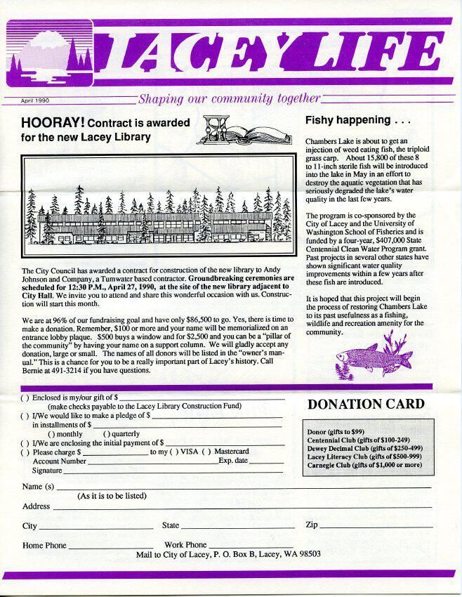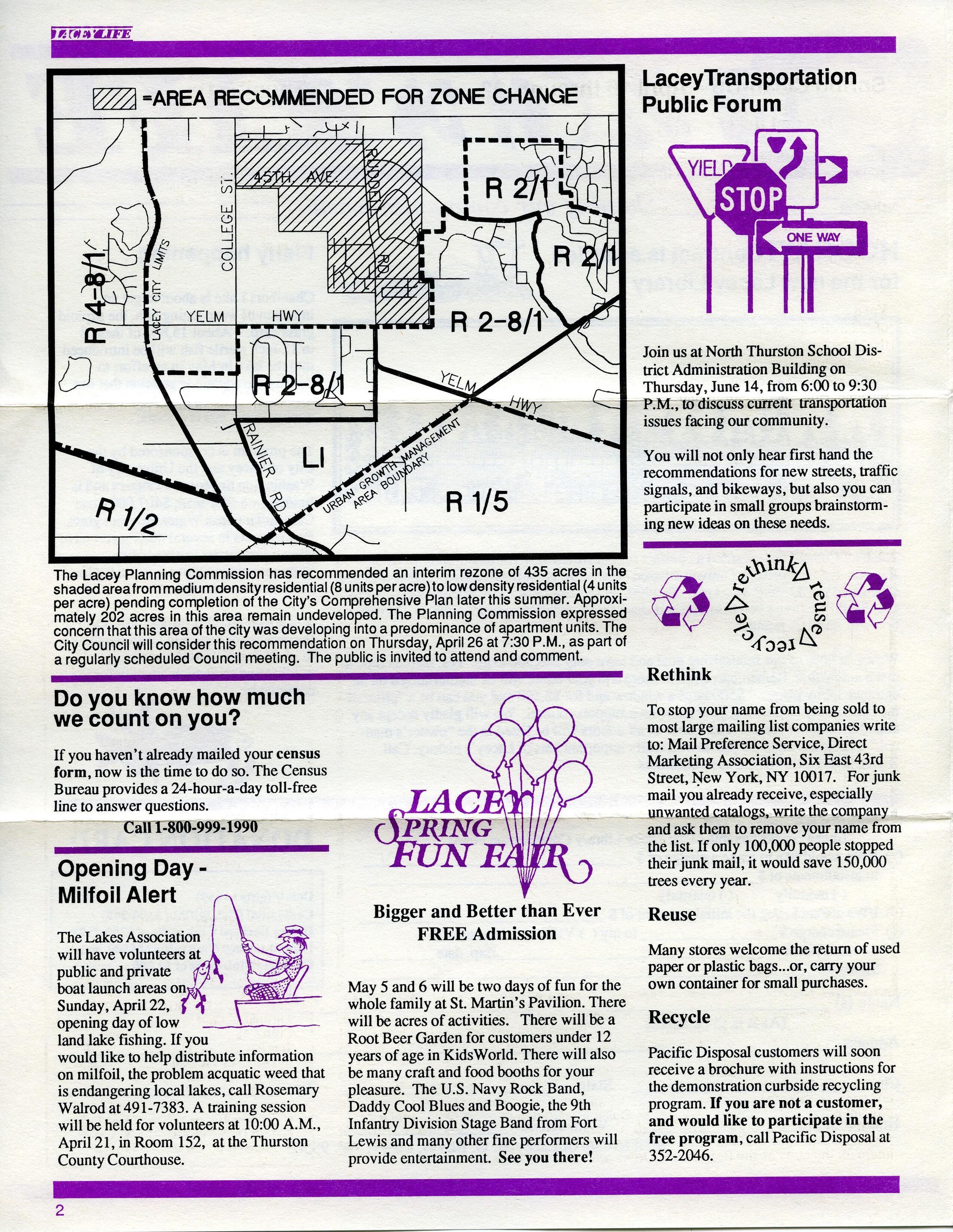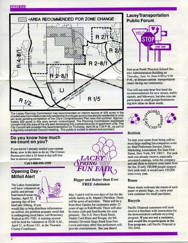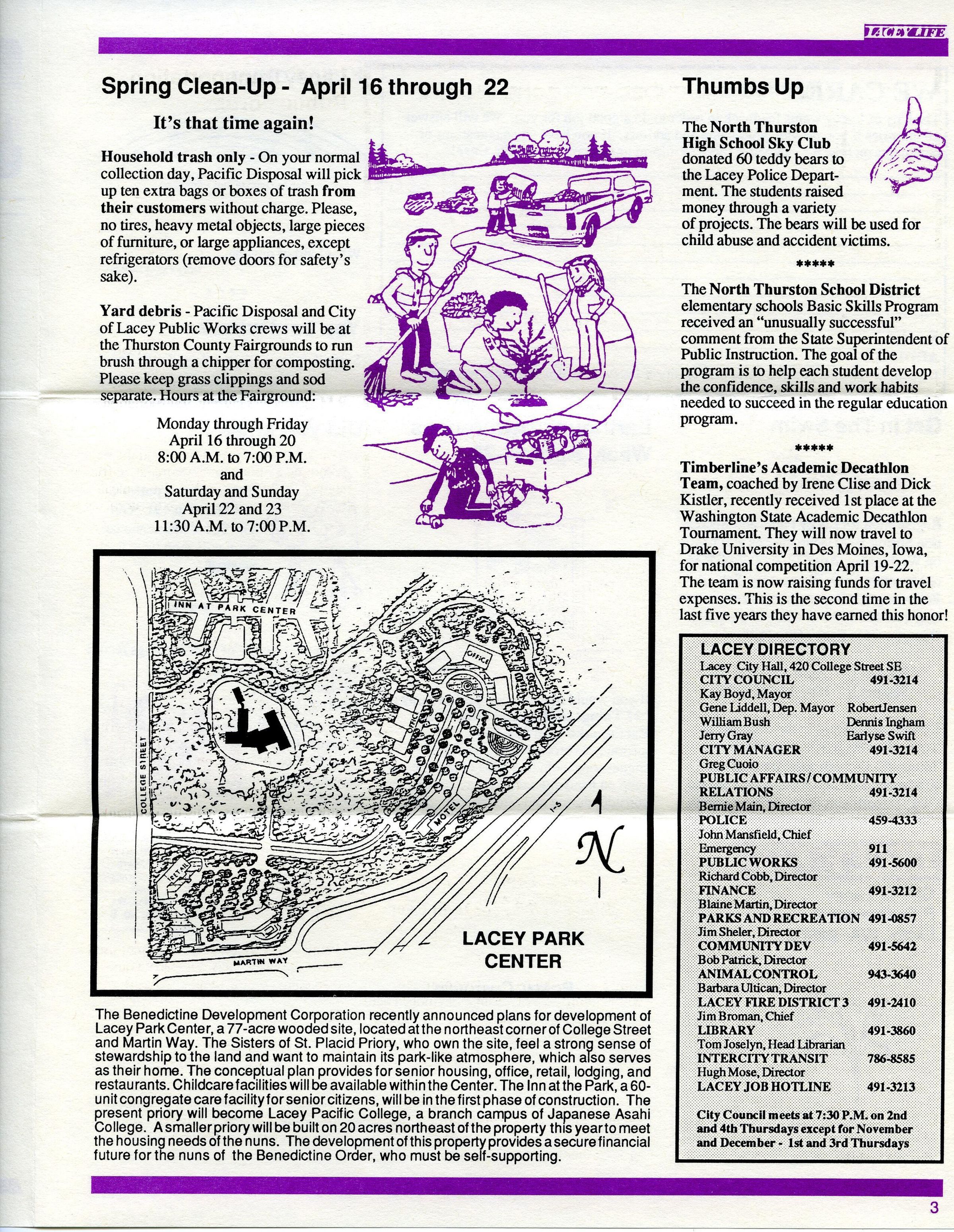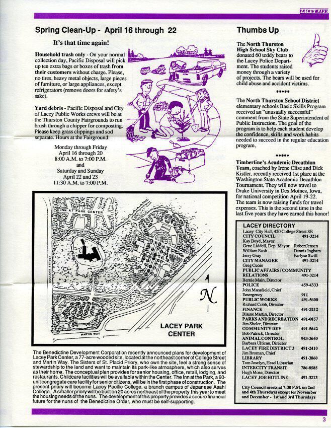 Government Services, Chambers Lake, Lacey Library, Lacey Parks and Recreation, Lacey Planning Commission, Lacey Spring Fun Fair, Lakes Association, The, North Thurston High School, Saint Martin's Capital Pavilion, Saint Placid Priory, Timberline High School