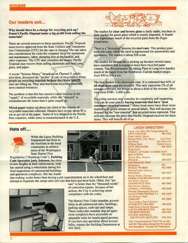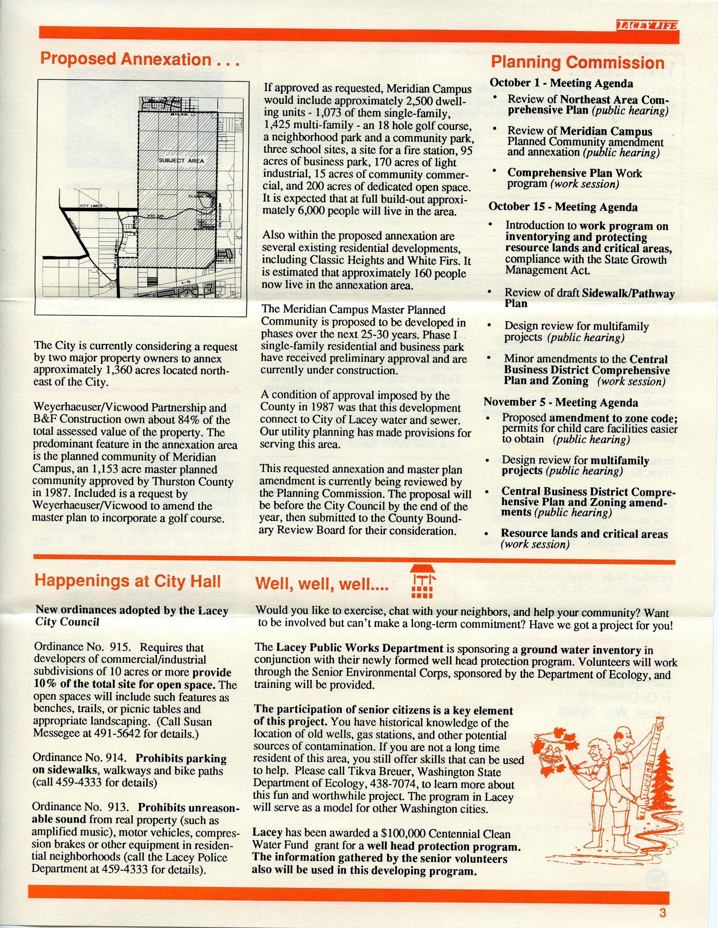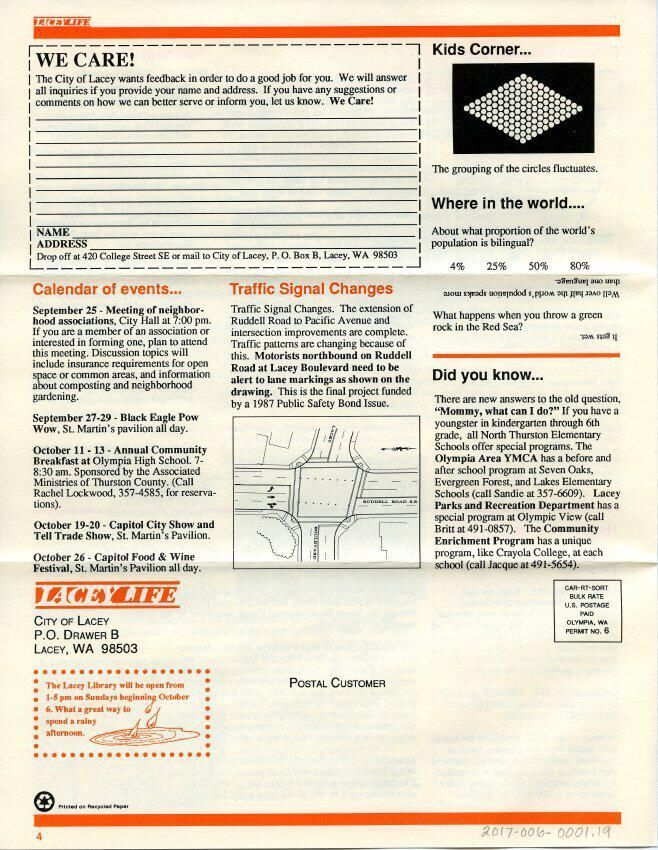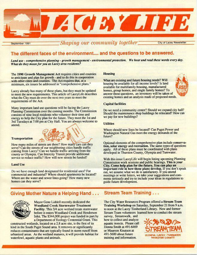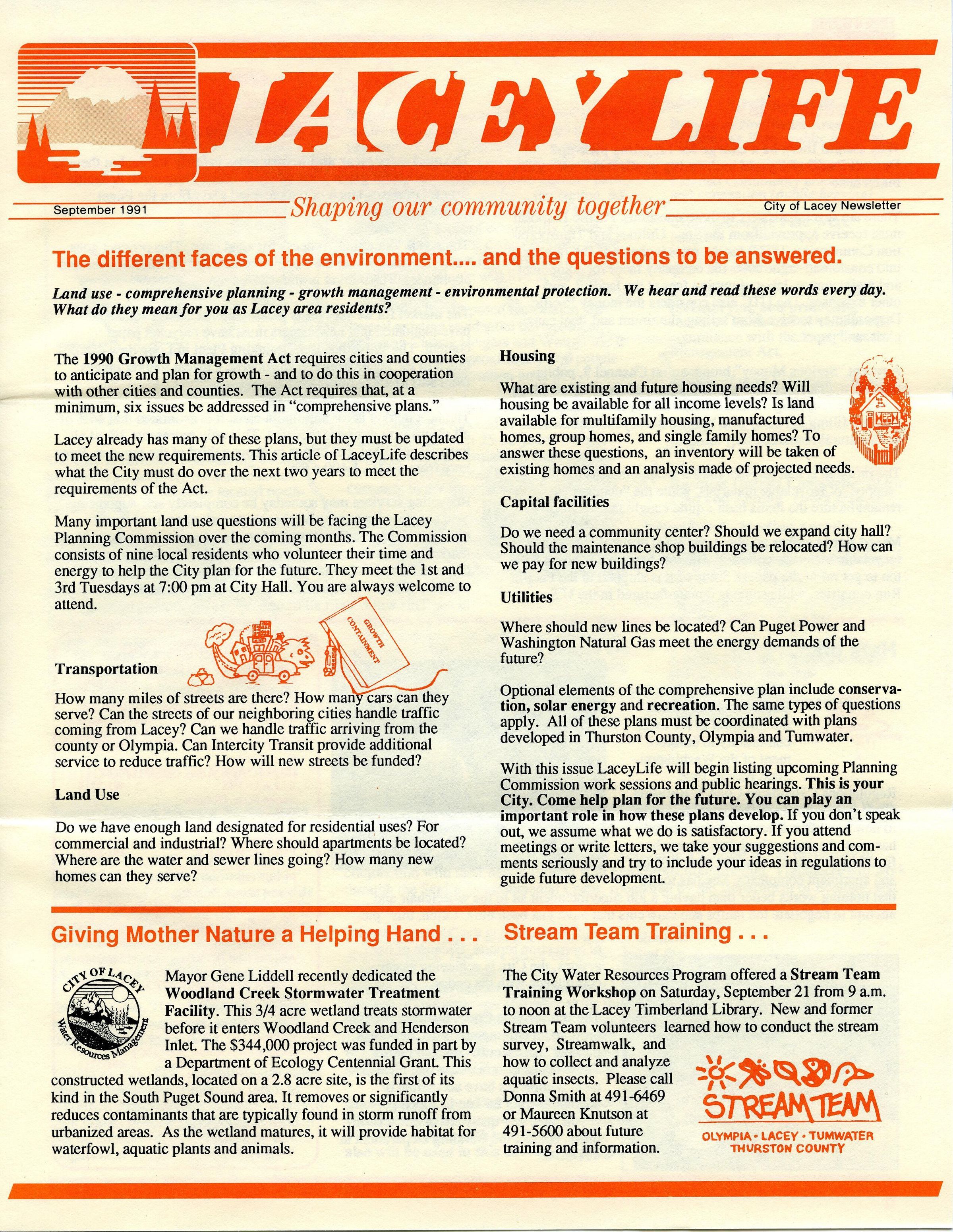 September 1991 issue of the Lacey Life newsletter, a publication of the City of Lacey.