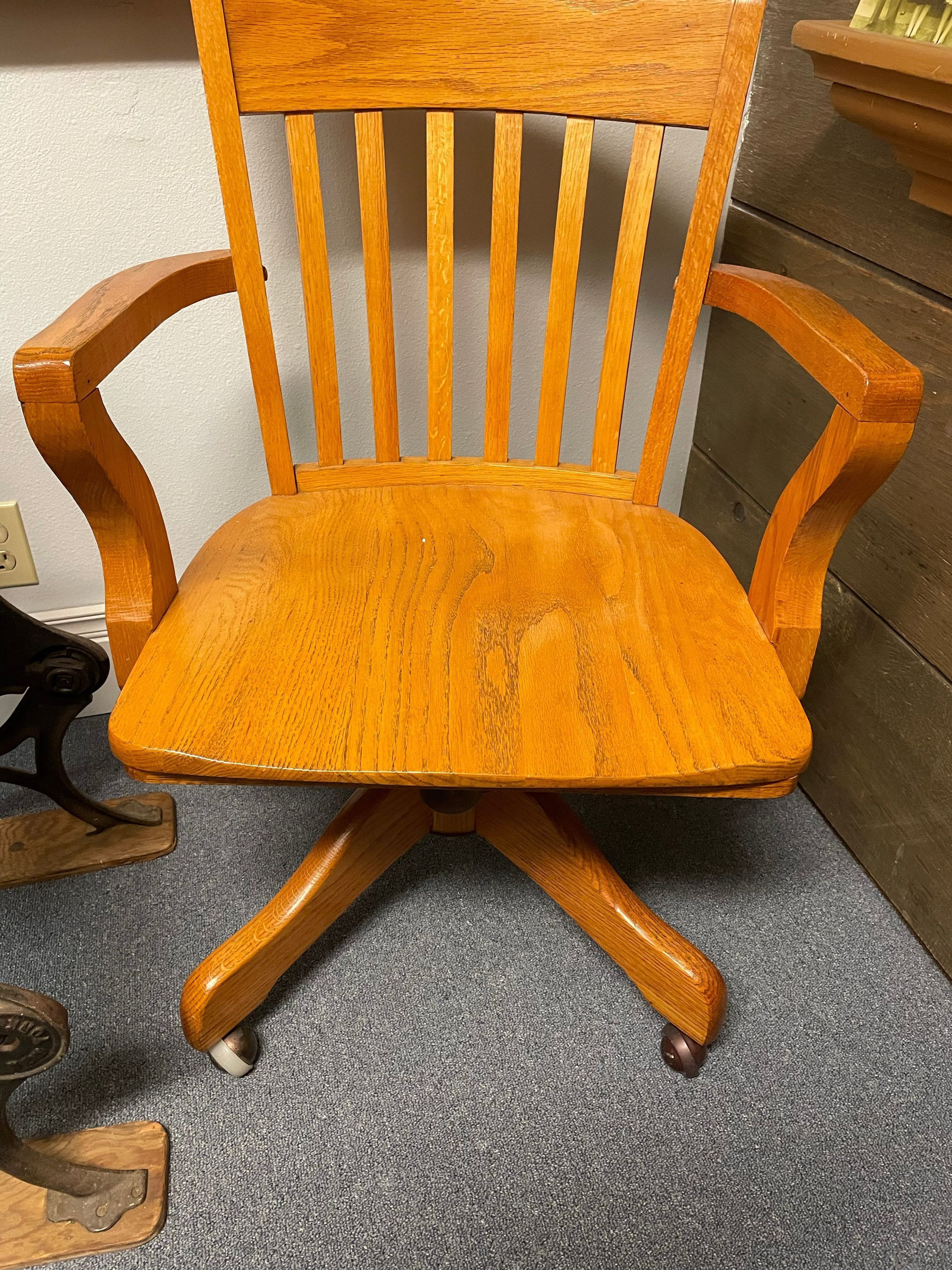 Oak chair that belonged to Ted McArthur while he was principal of Lacey School, 1935-1968.
