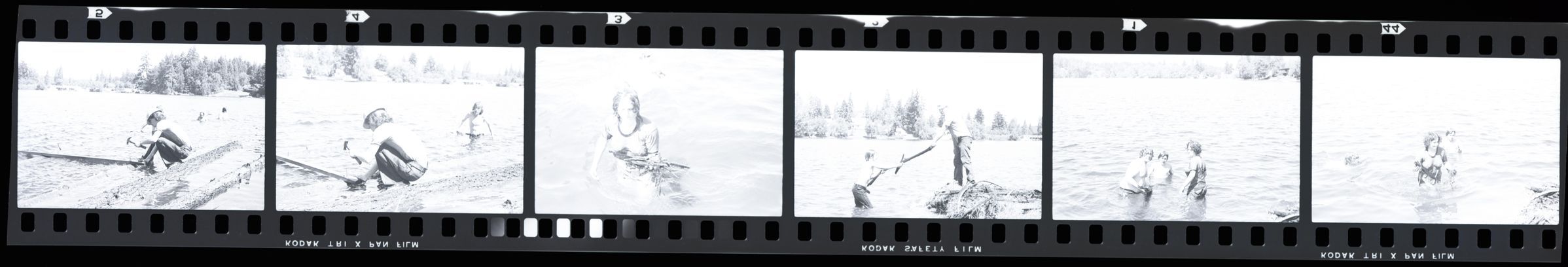 Long Lake swim area clean up, 1974. Black and white negative strip of 6 images originally created for the Lacey Leader newspaper.