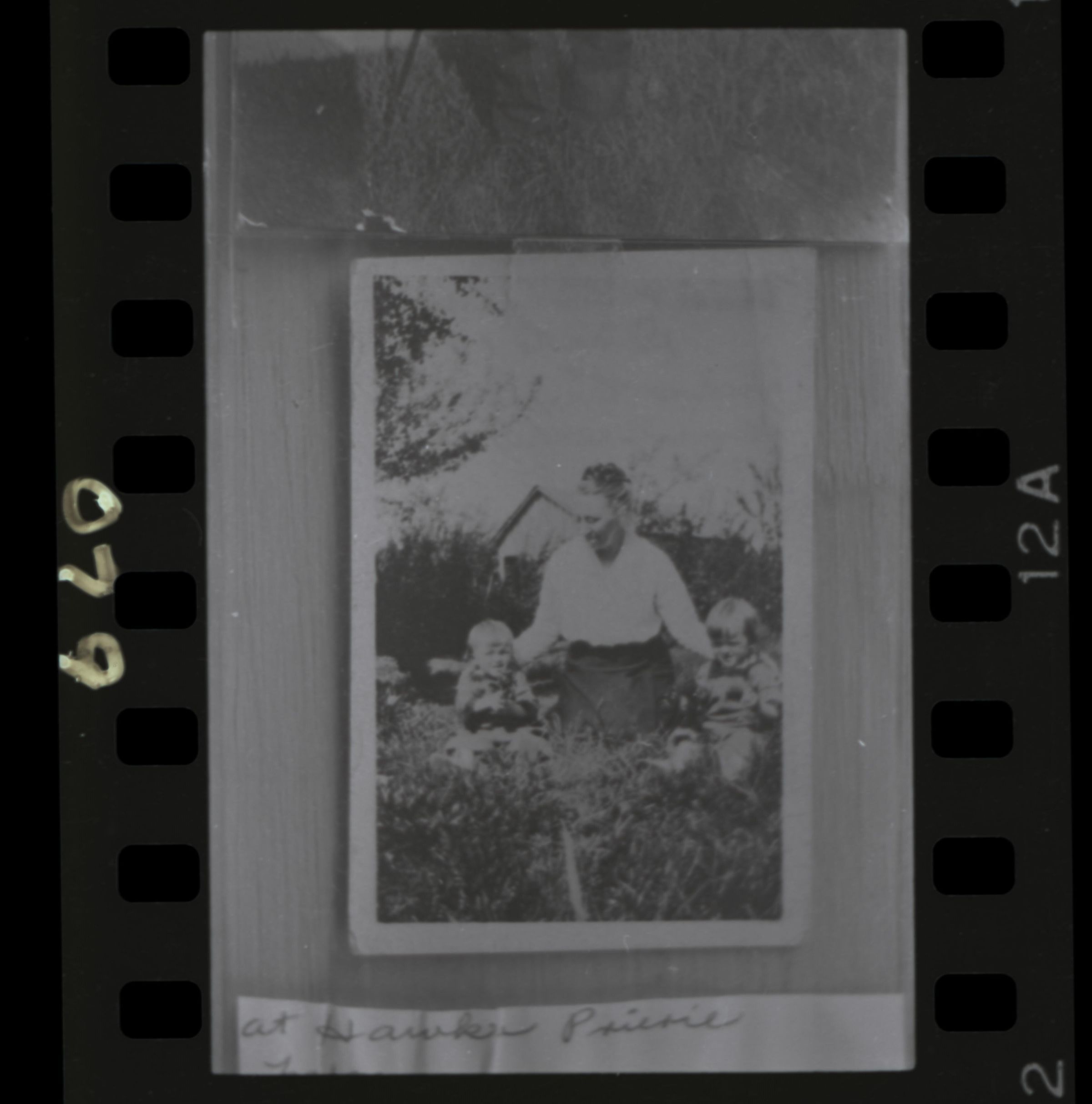 Negative is frame number 12A, third on a strip of six. The frame number "12A" is printed at the right, and "12" at the bottom. "079" is handwritten directly onto the left edge of the negative. On another part of the strip is printed: "Kodak Safety Film" and "Kodak Panatomic X Film". Negative is made from an original 2 x 3 print.Made/Created