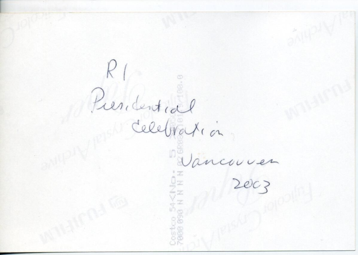 Ken Balsley was invitied to the conference to make a presentation. On the reverse is a handwritten note "RI Presidential Celebration Vancouver 2003."Made/Created