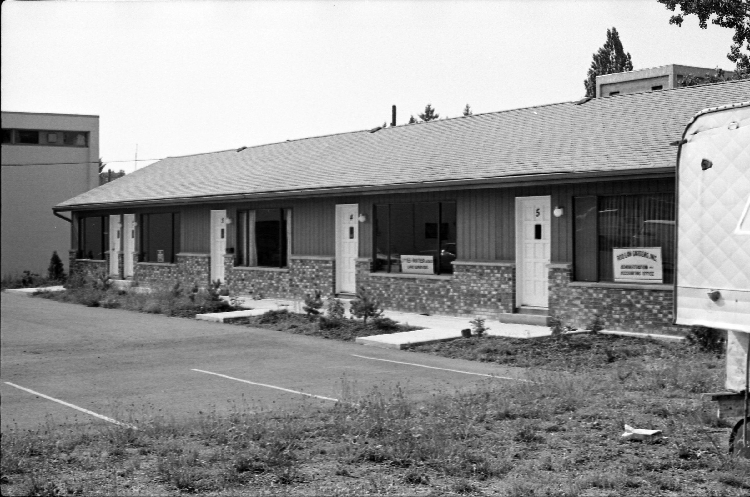American Legion Building, 1975. Black and white negative strip of five images originally created for the Lacey Leader newspaper.