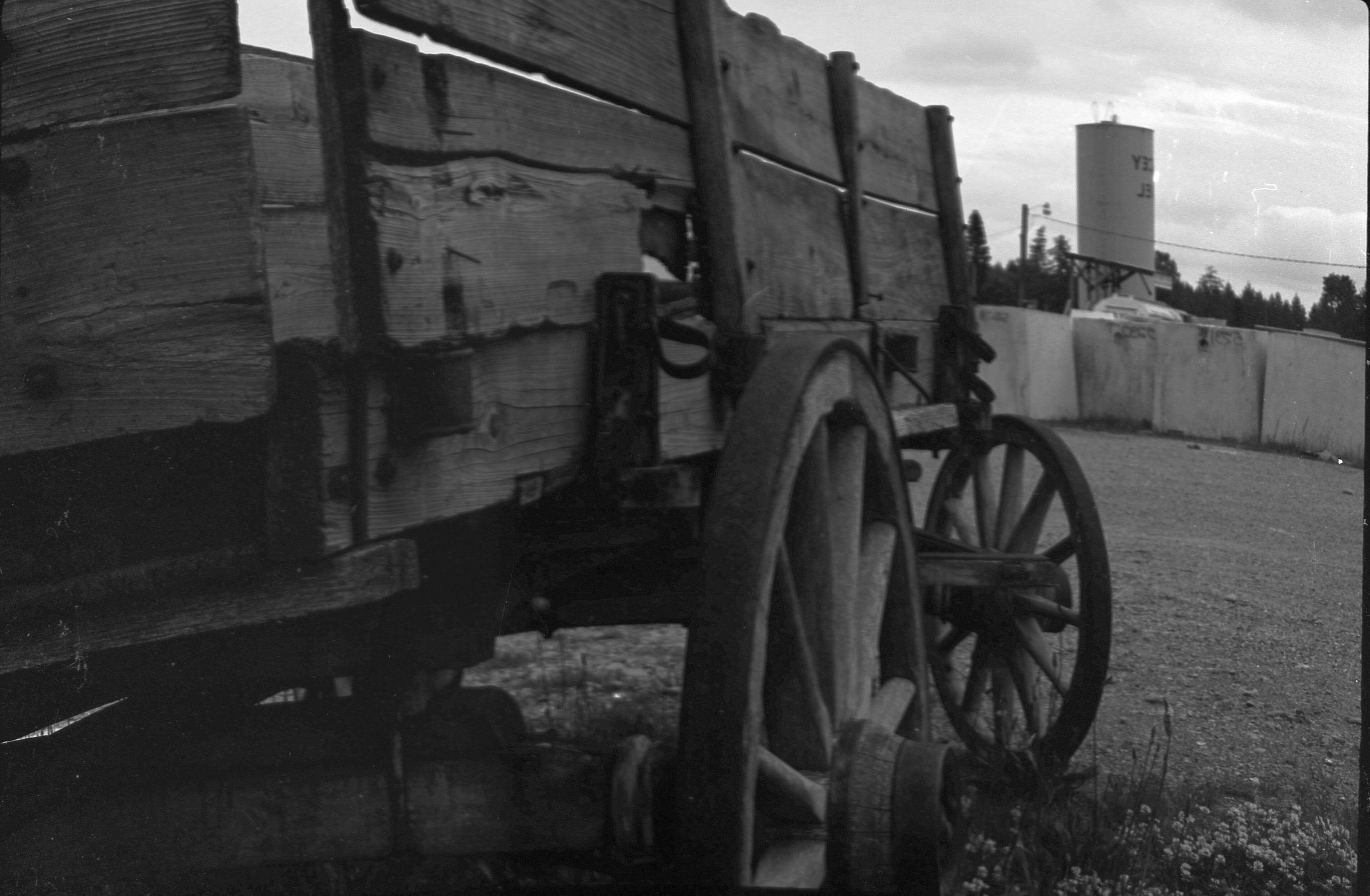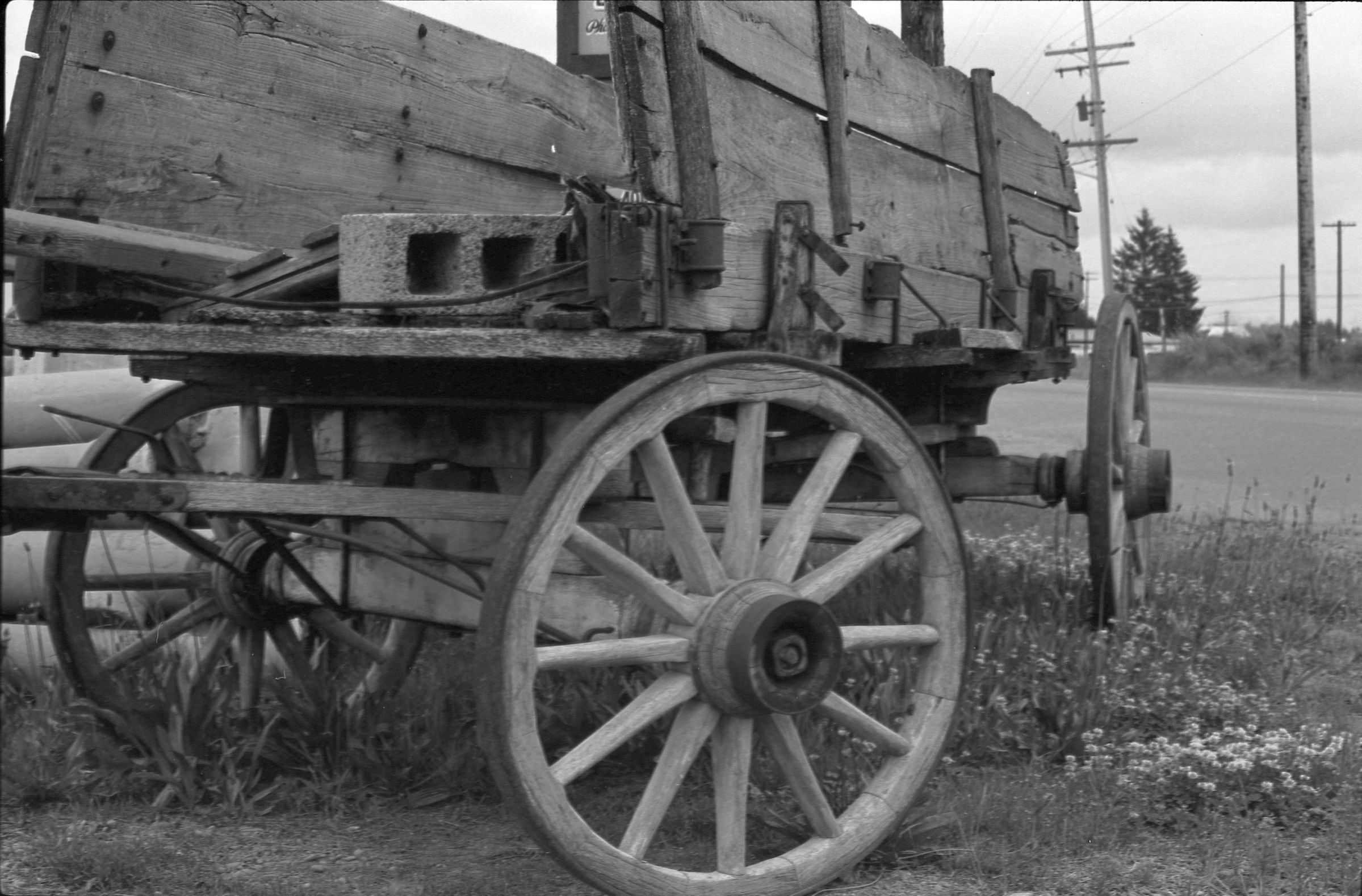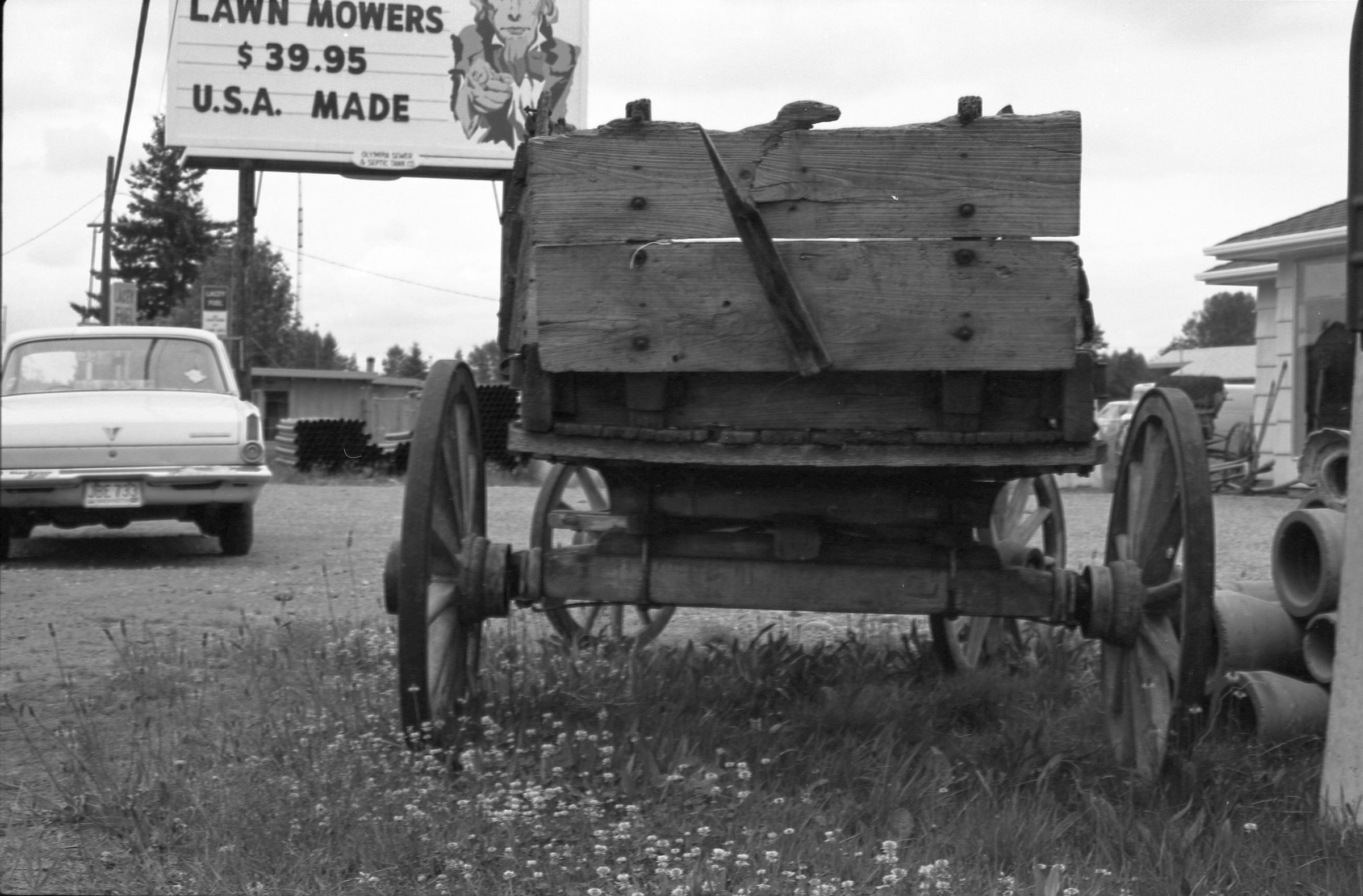 Old Wagons, 1973. Black and white negative strips of 11 images (two strips of five images and one single frame) originally created for the Lacey Leader newspaper.