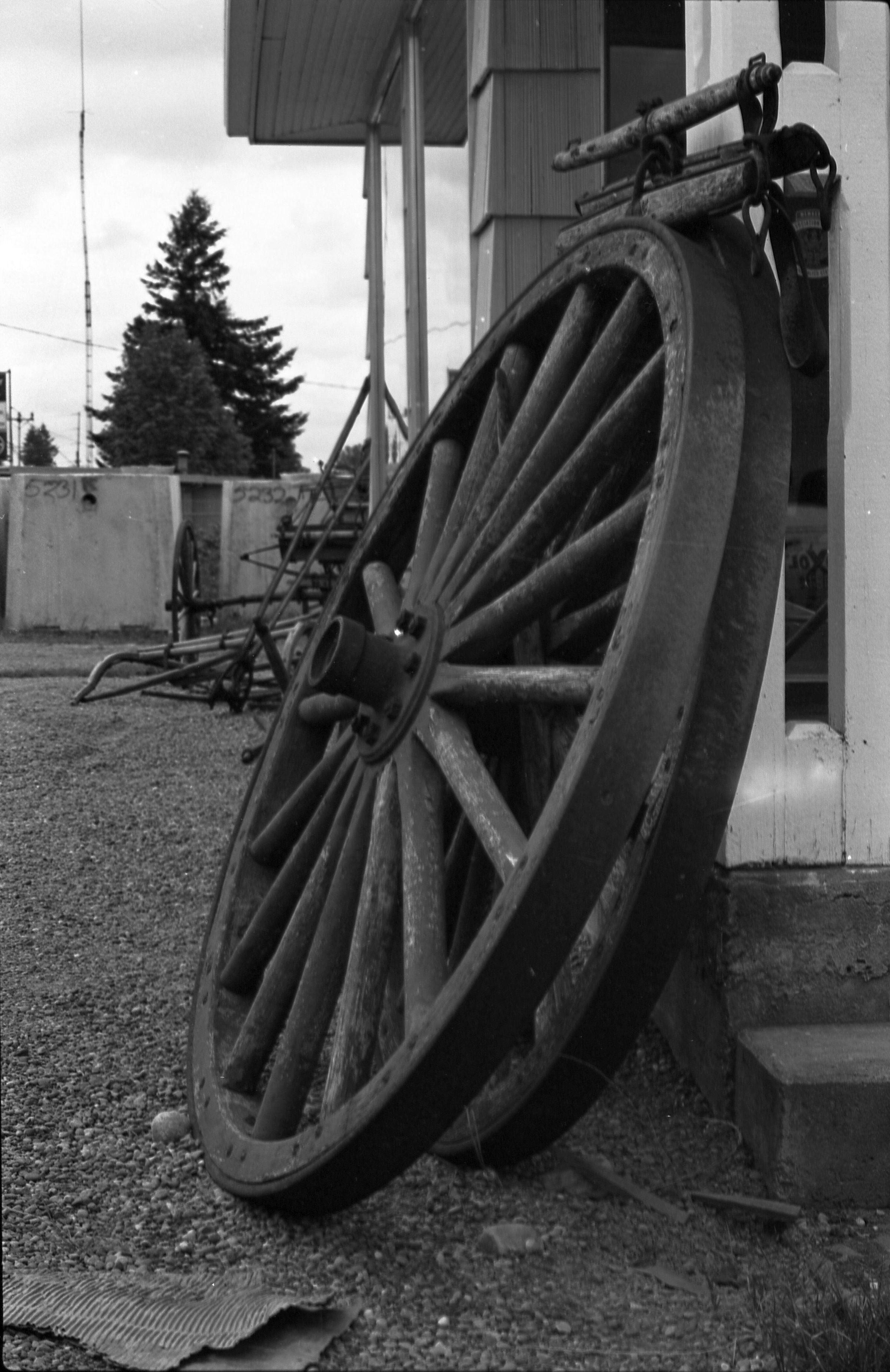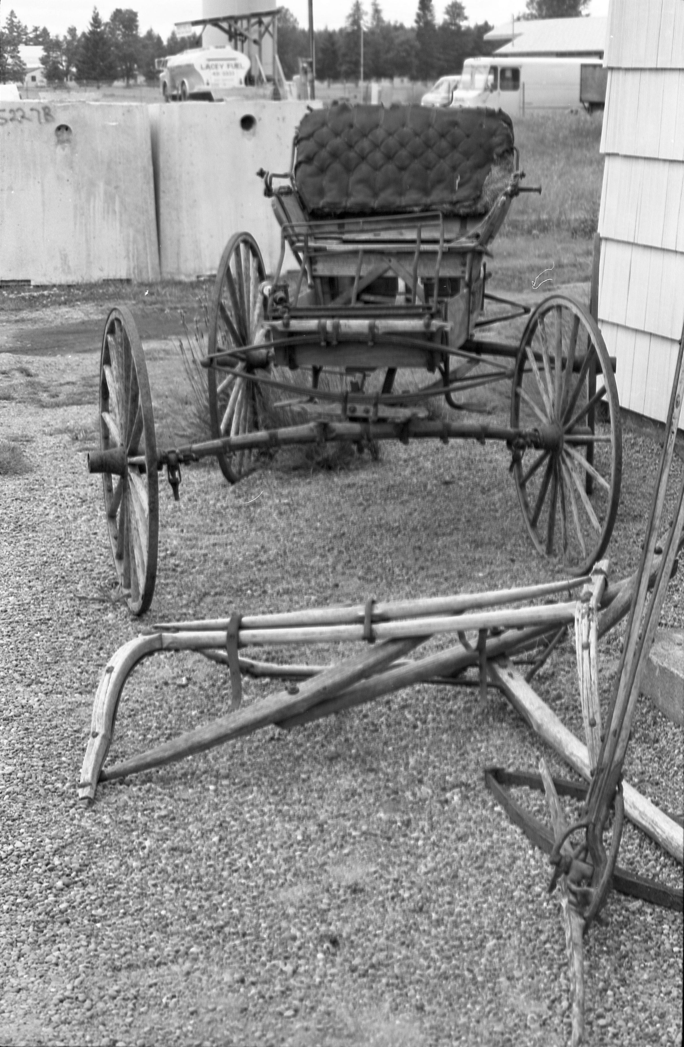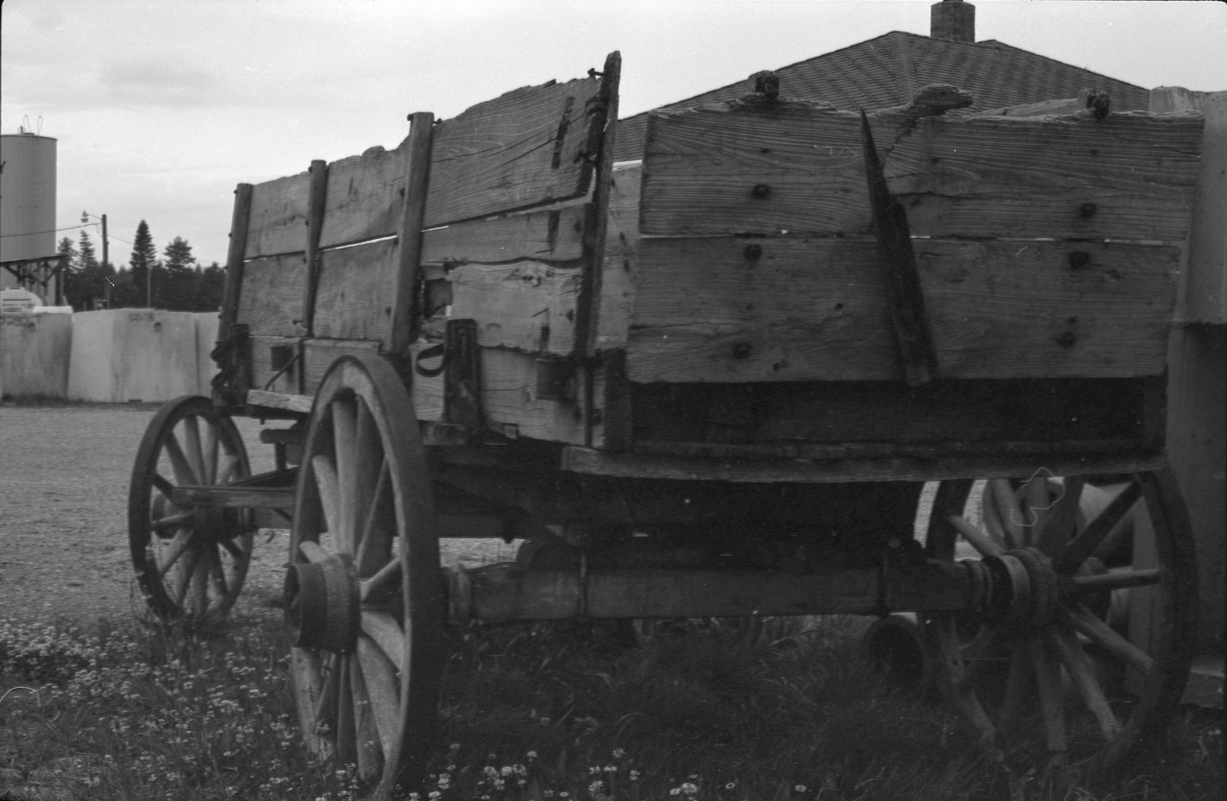 Old Wagons, 1973. Black and white negative strips of 11 images (two strips of five images and one single frame) originally created for the Lacey Leader newspaper.