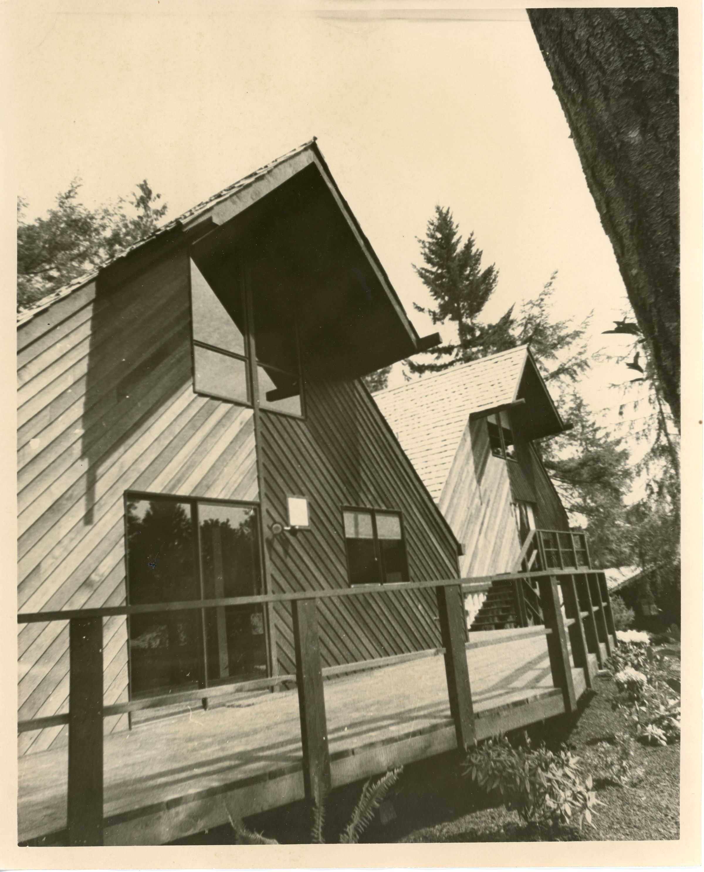 House with steep roof and diagonal siding