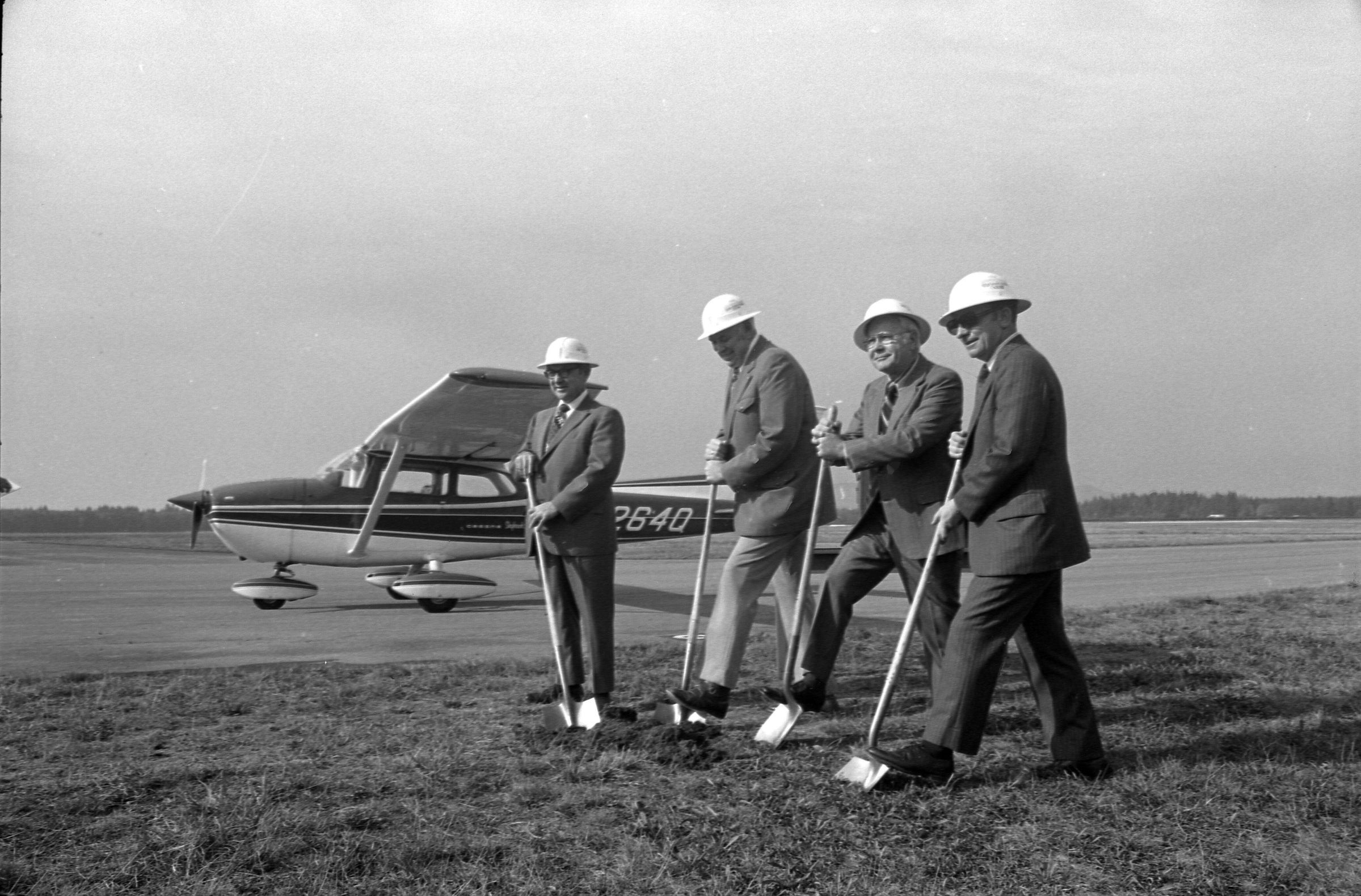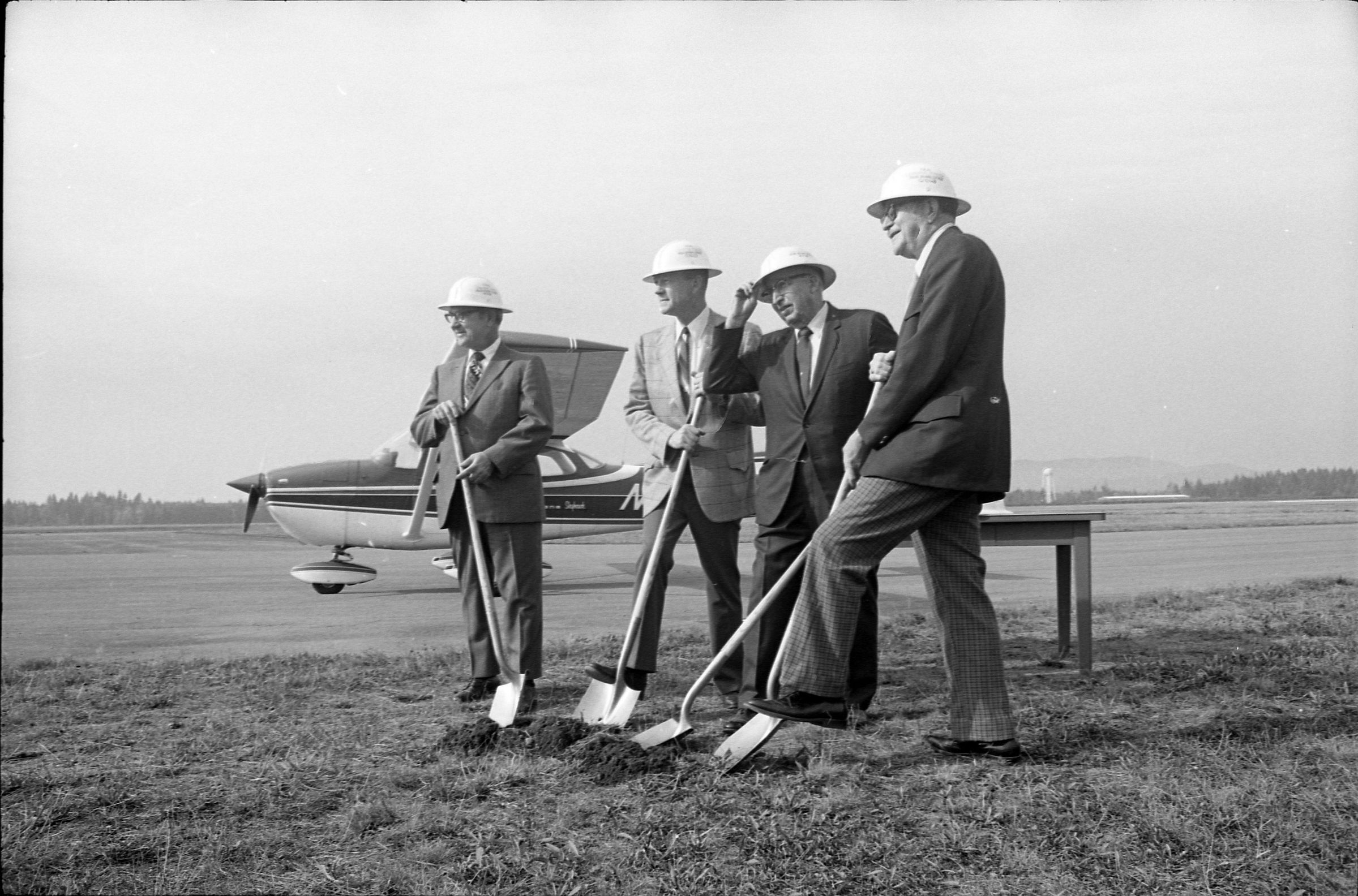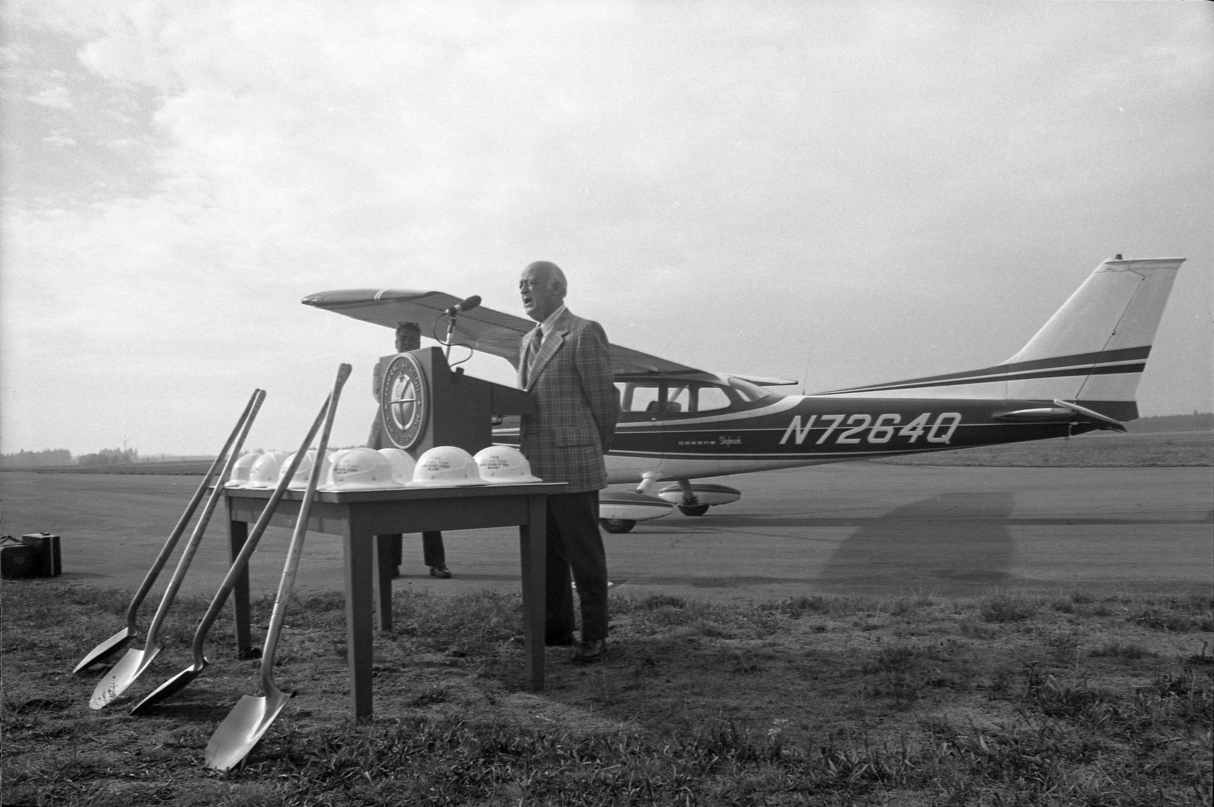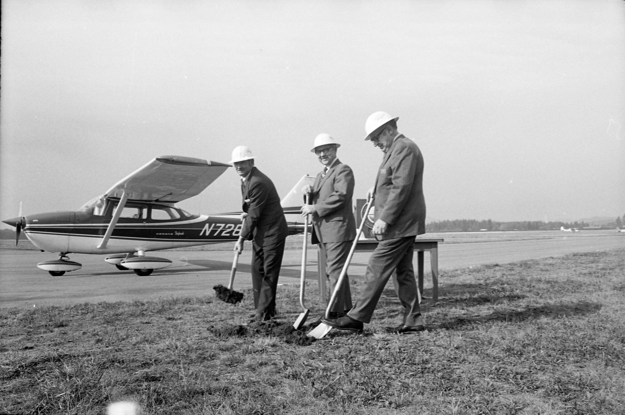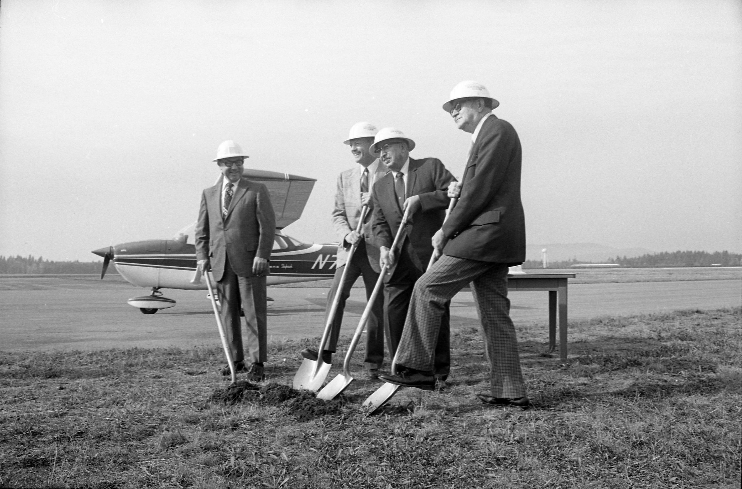 Olympia Airport Dedication, 1973. Black and white negative strips of 19 images (three strips of five, and one strip of four) originally created for the Lacey Leader newspaper. These images are of the Olympia Airport dedication in October of 1973.Made/Created