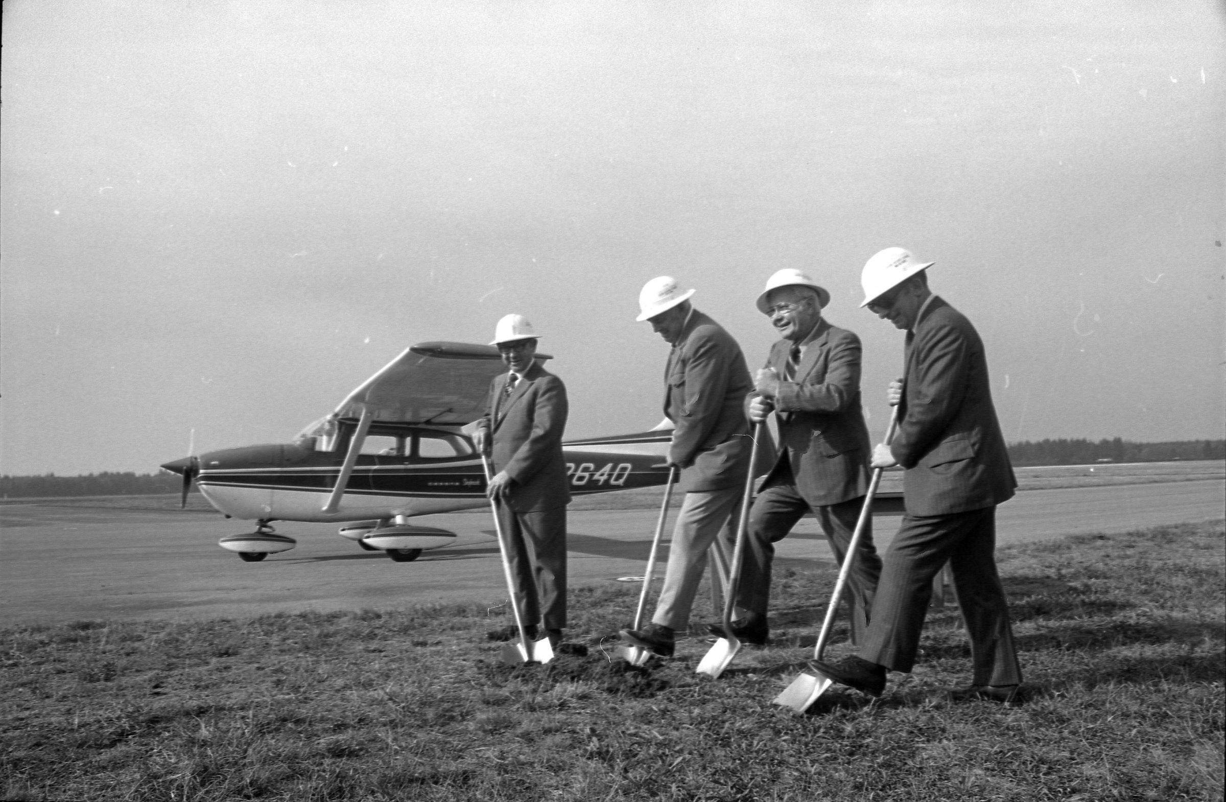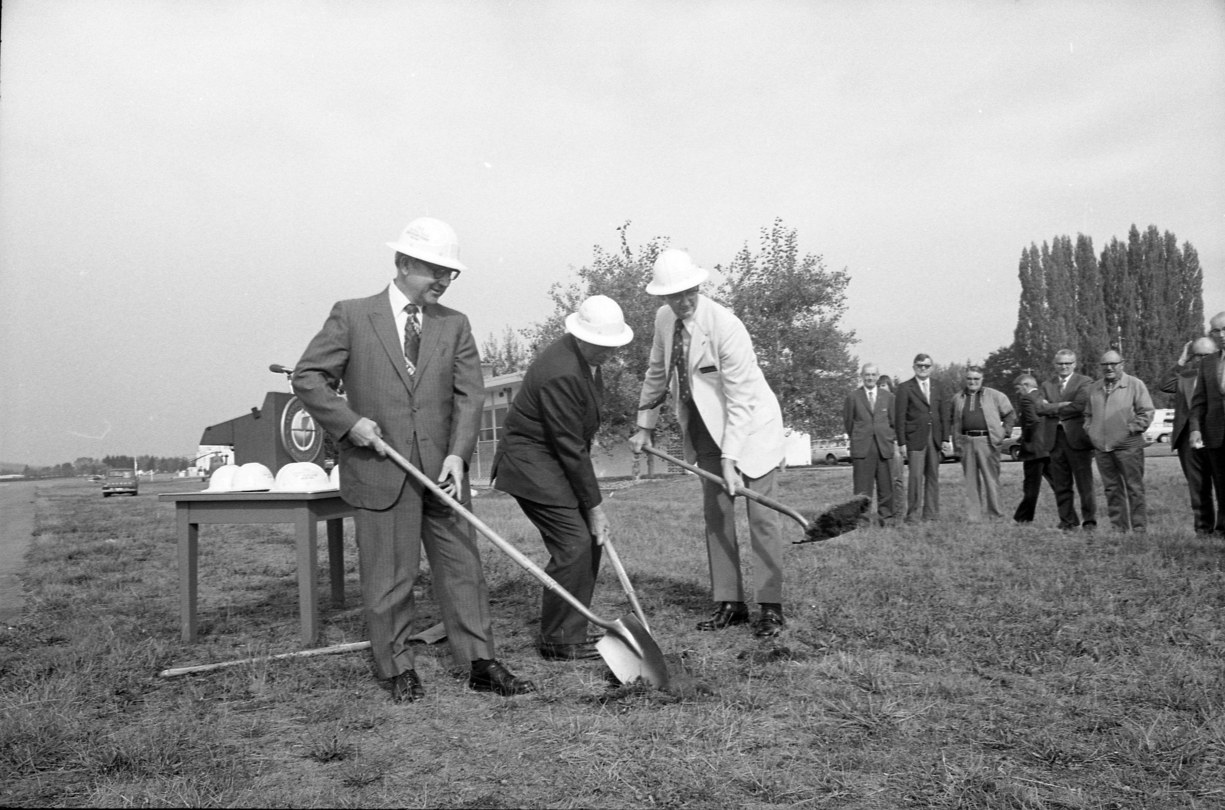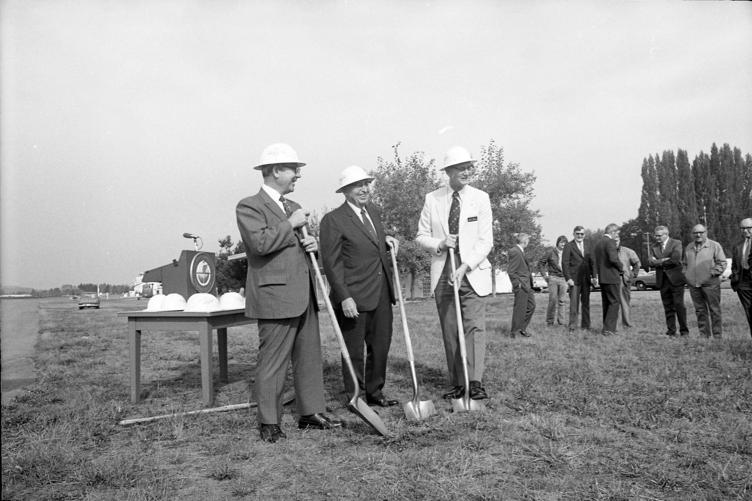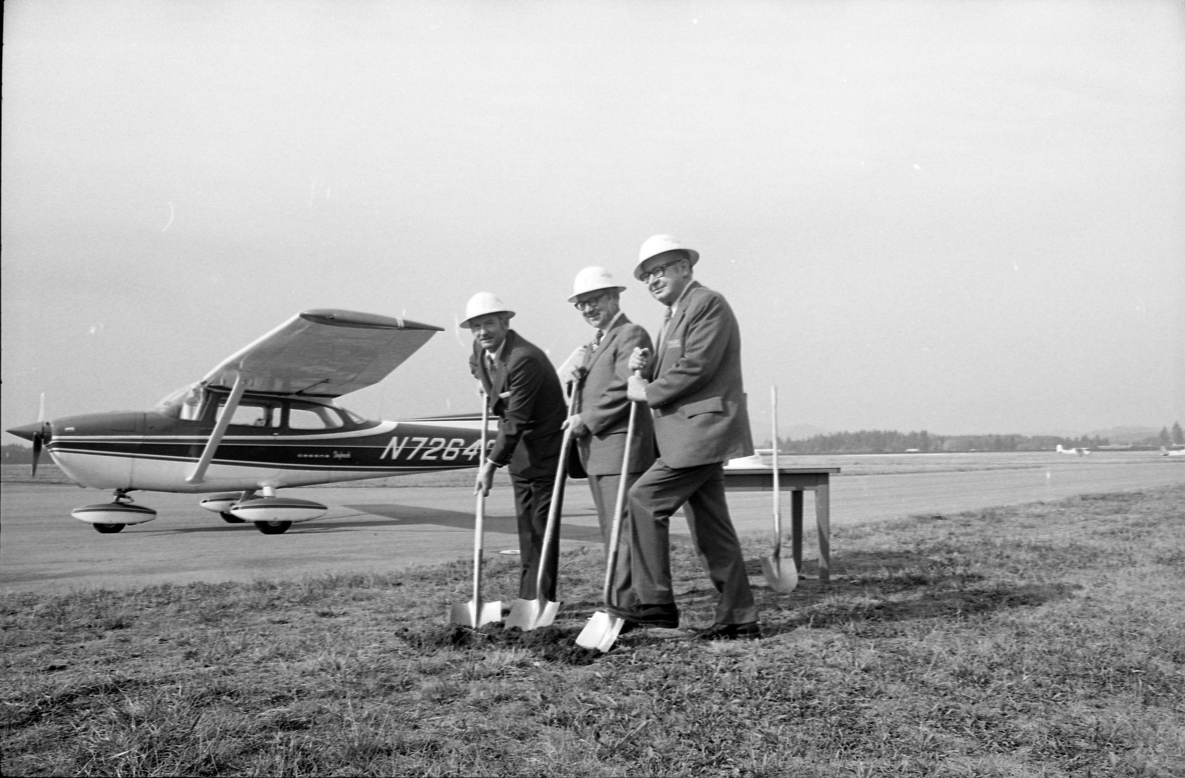 Olympia Airport Dedication, 1973. Black and white negative strips of 19 images (three strips of five, and one strip of four) originally created for the Lacey Leader newspaper. These images are of the Olympia Airport dedication in October of 1973.Made/Created
