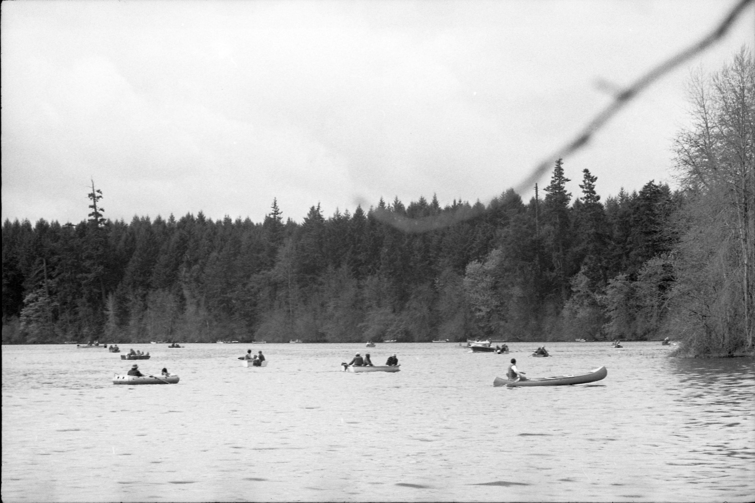 Frames 40b-44b and 1b show several small boats and kayaks out on the water. There is a large group of trees in the background behind them.Made/Created