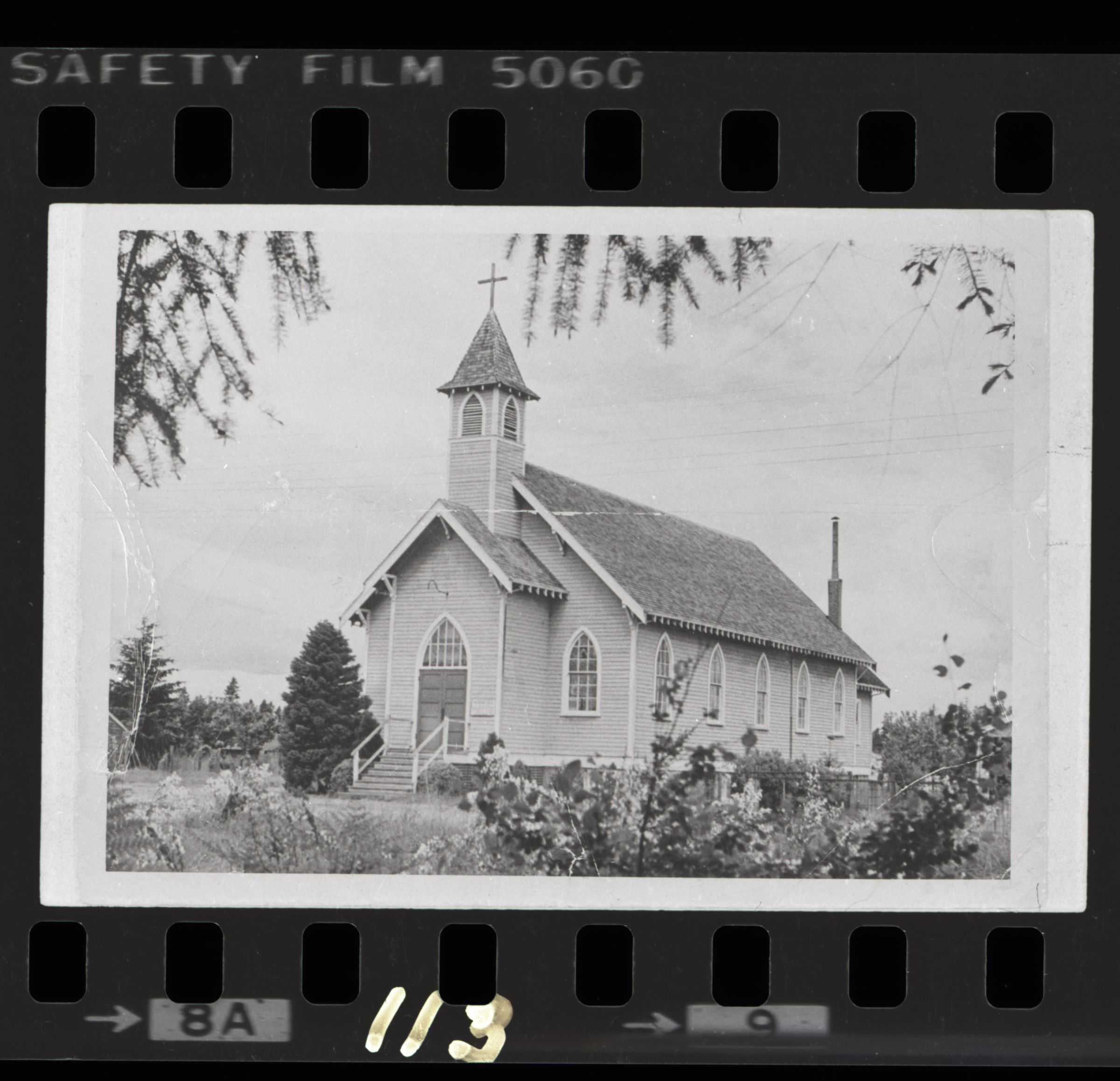 Negative is first on a strip of five images, frame number 7. Printed at the left is frame number "7" and to the bottom "7A." "115" is handwritten directly onto the left edge of the negative. It appears that it was also previously written on the emulsion side of the negative and crossed out. At the top is printed: "Kod[ak Safe]ty Film 5060".Made/Created