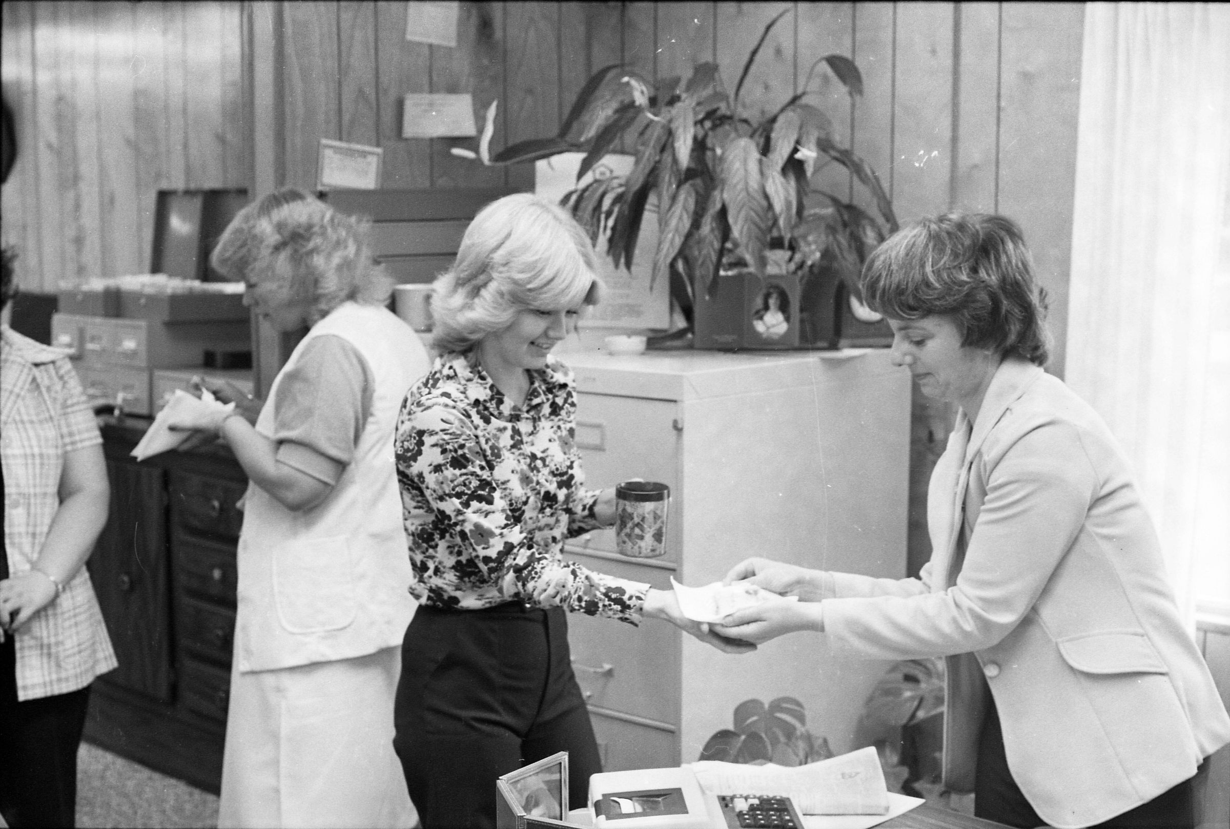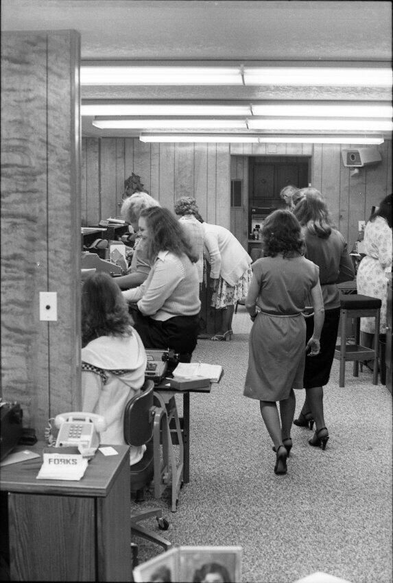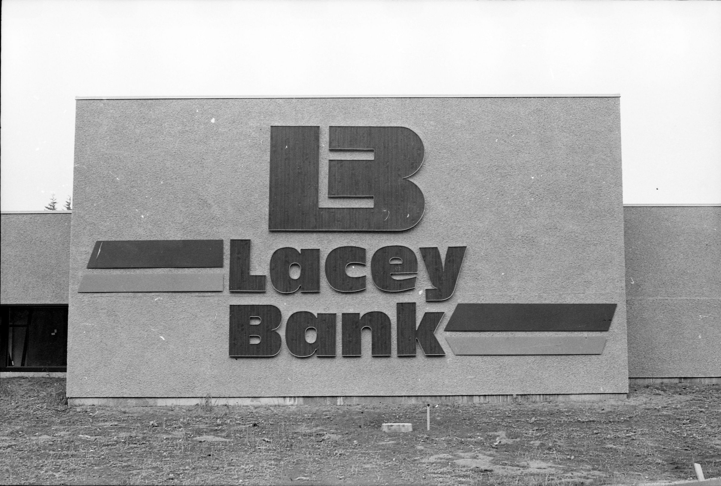 Lacey Bank,1980. Black and white negative strips of 14 images (one strip of six frames, one strip of five frames, and one strip of three frames) originally created for the Lacey Leader newspaper.