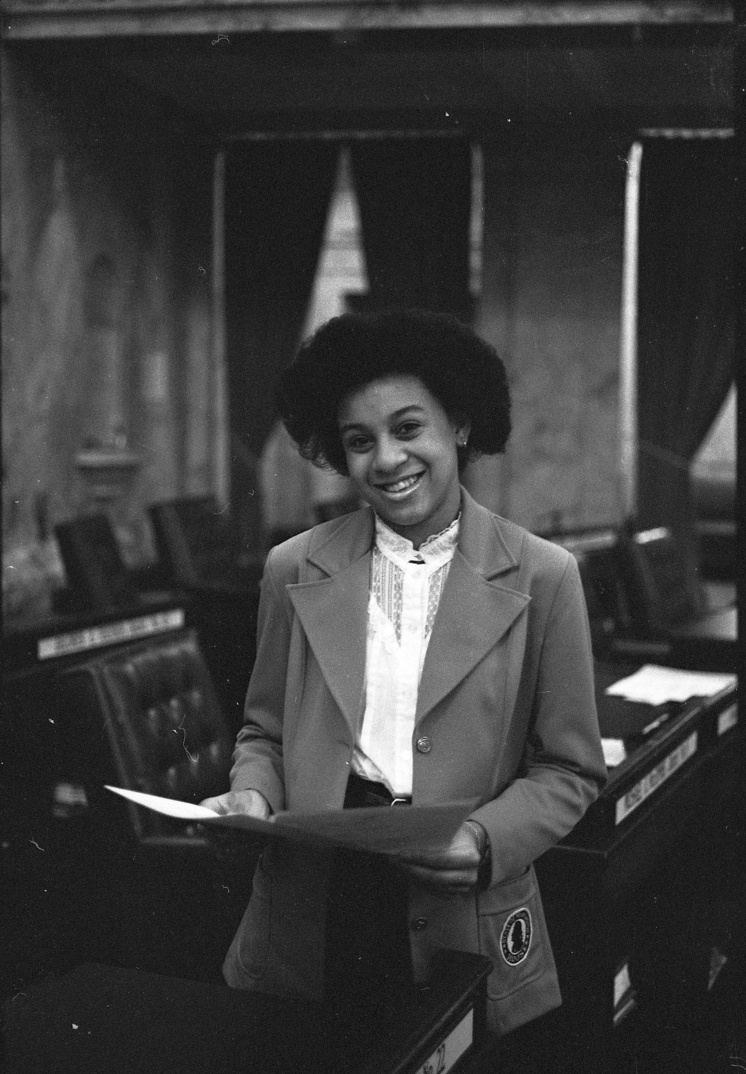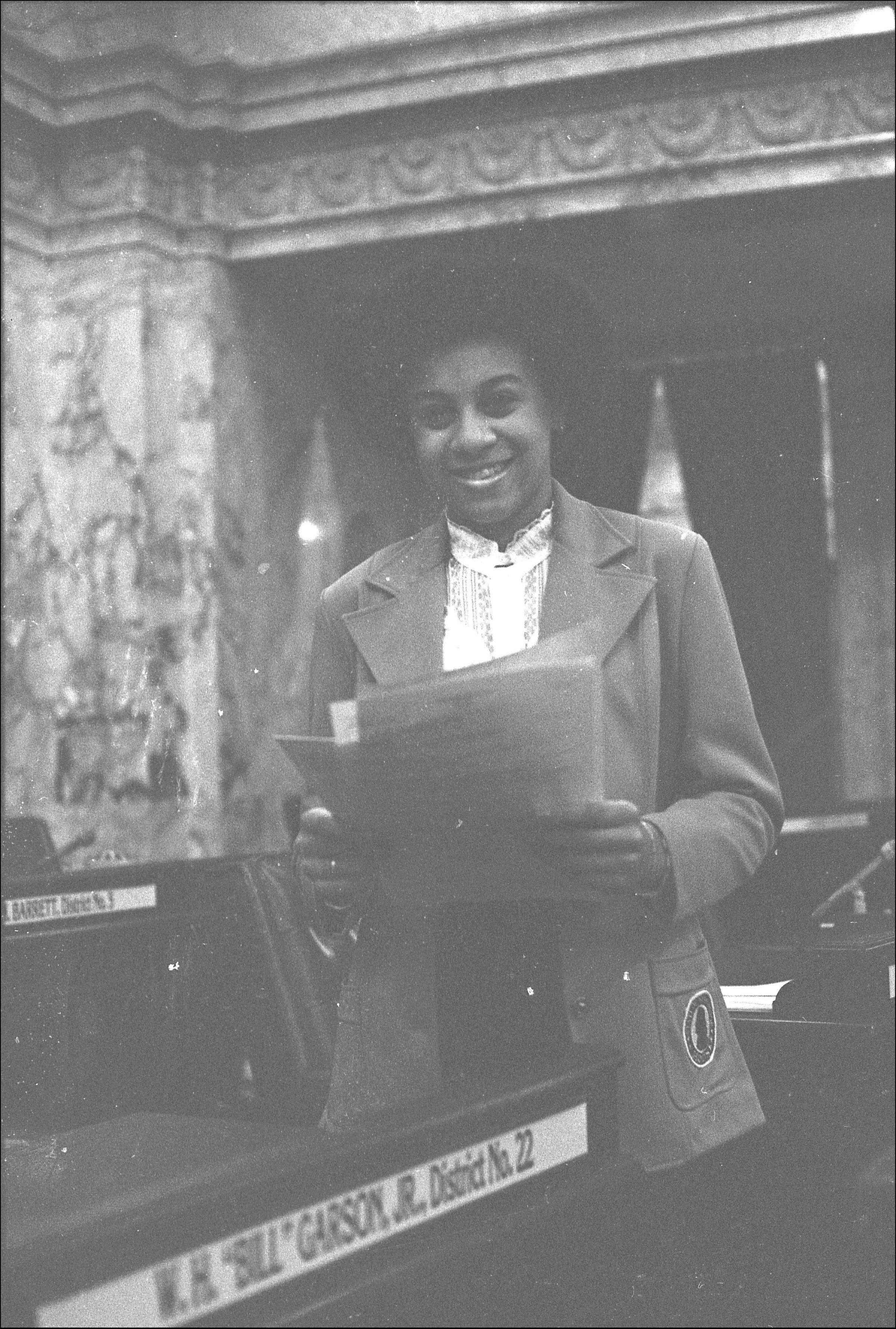 Dabrena Jackson. Black and white negative strips of 11 images (one strip of five frames and two strips of three frames) originally created for the Lacey Leader newspaper. These photographs are of a woman named Dabrena Jackson, according to the envelope containing the negatives.