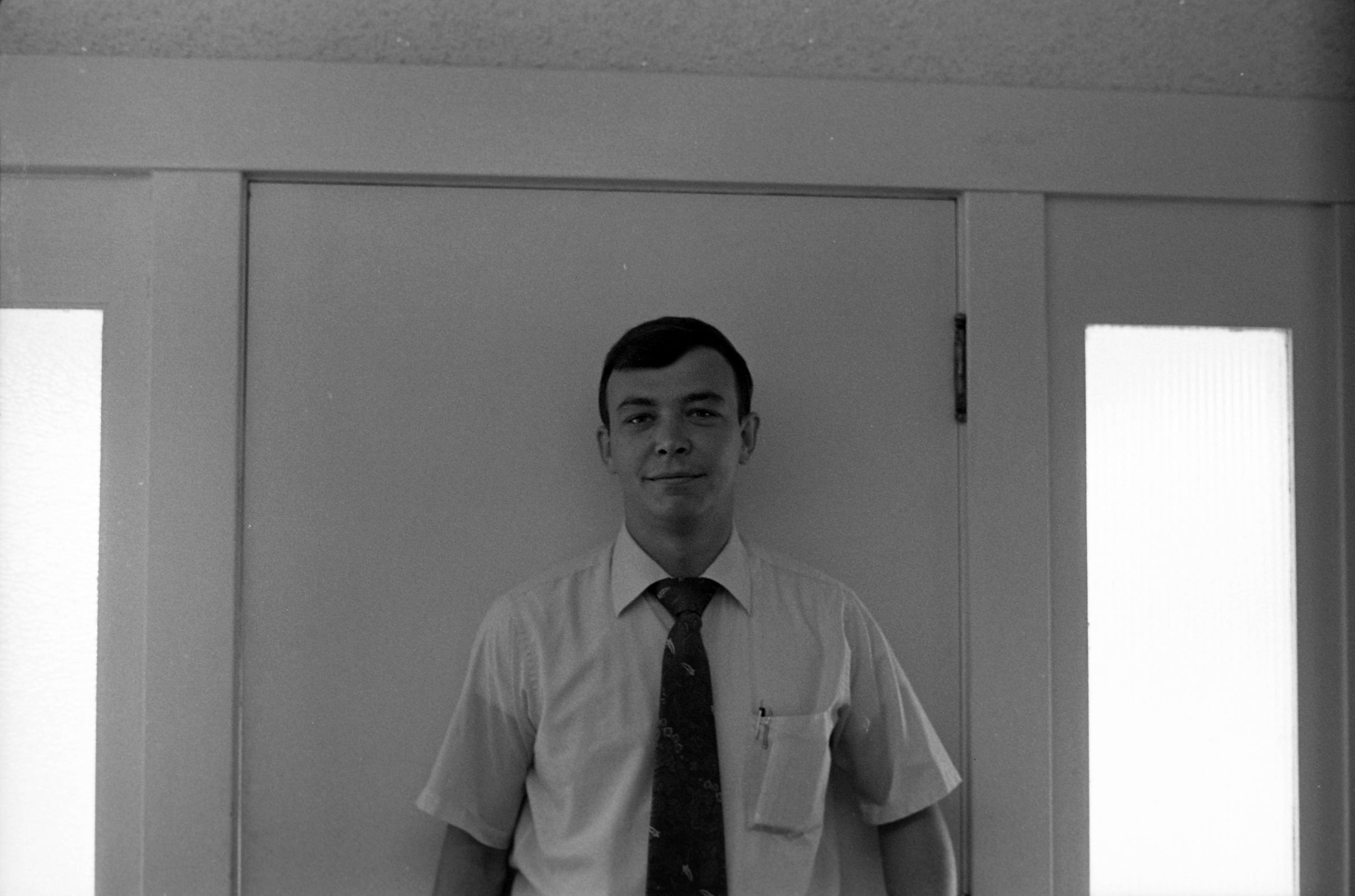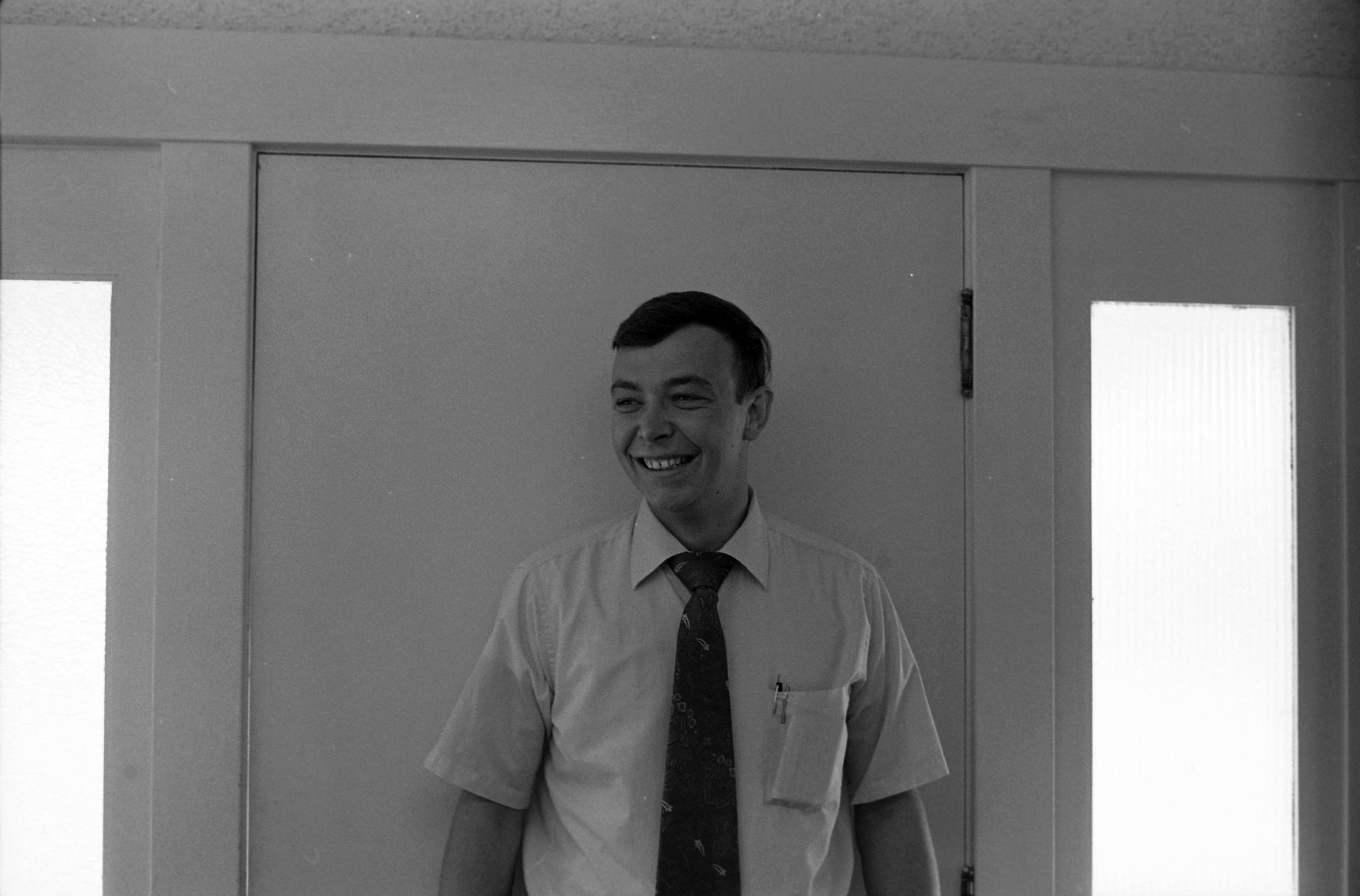 Jerry Kesselburg. Black and white negative strip of two frames originally created for the Lacey Leader newspaper. According to the envelope, these photographs are of Jerry Kesselburg.Made/Created