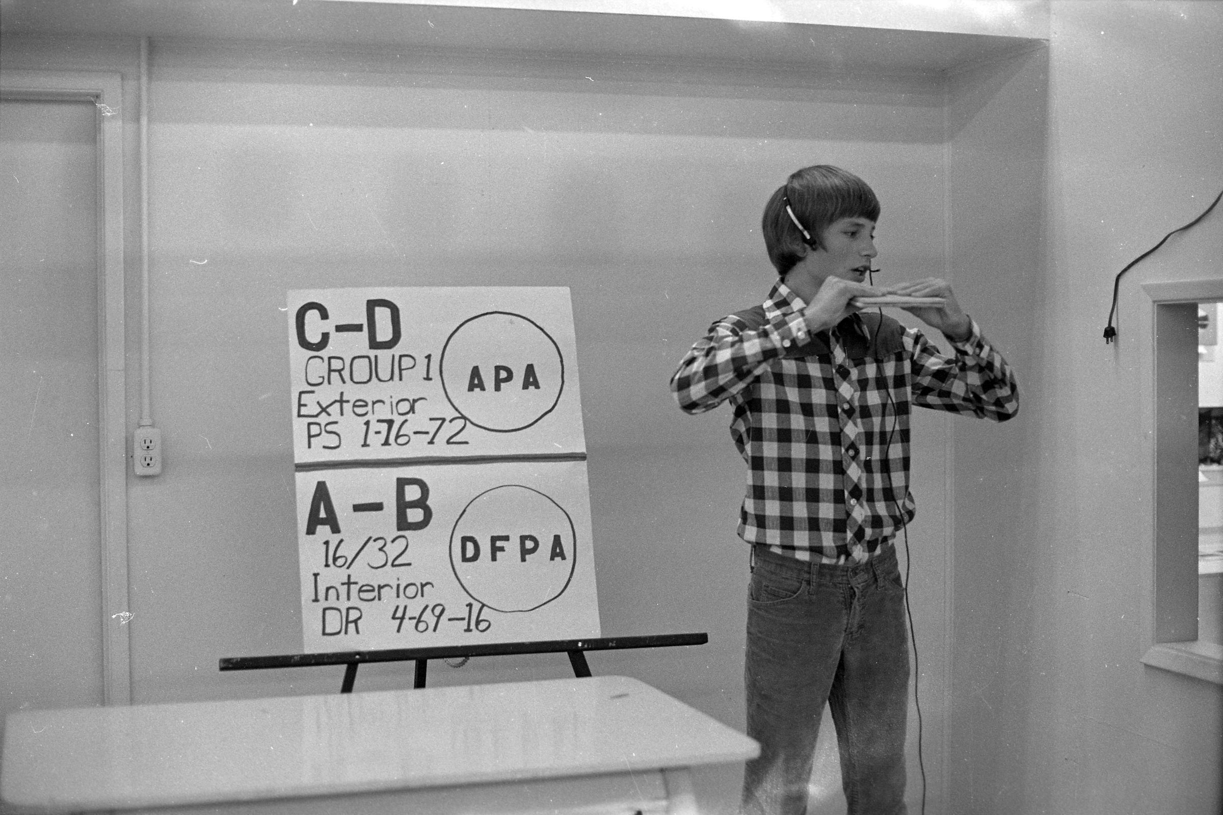 One negative strip (bearing images 0g-3g) shows two different young men giving scientific presentations.