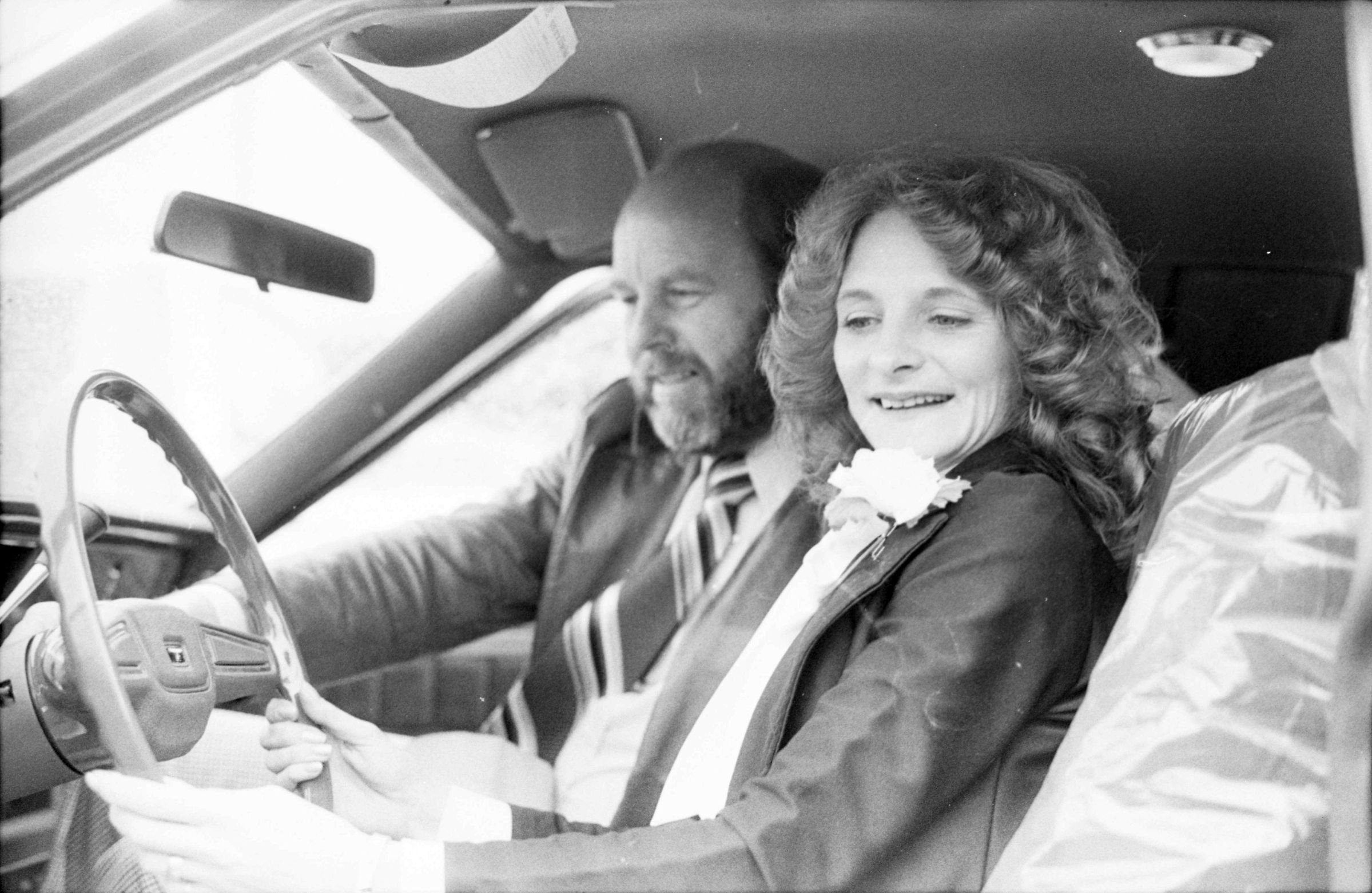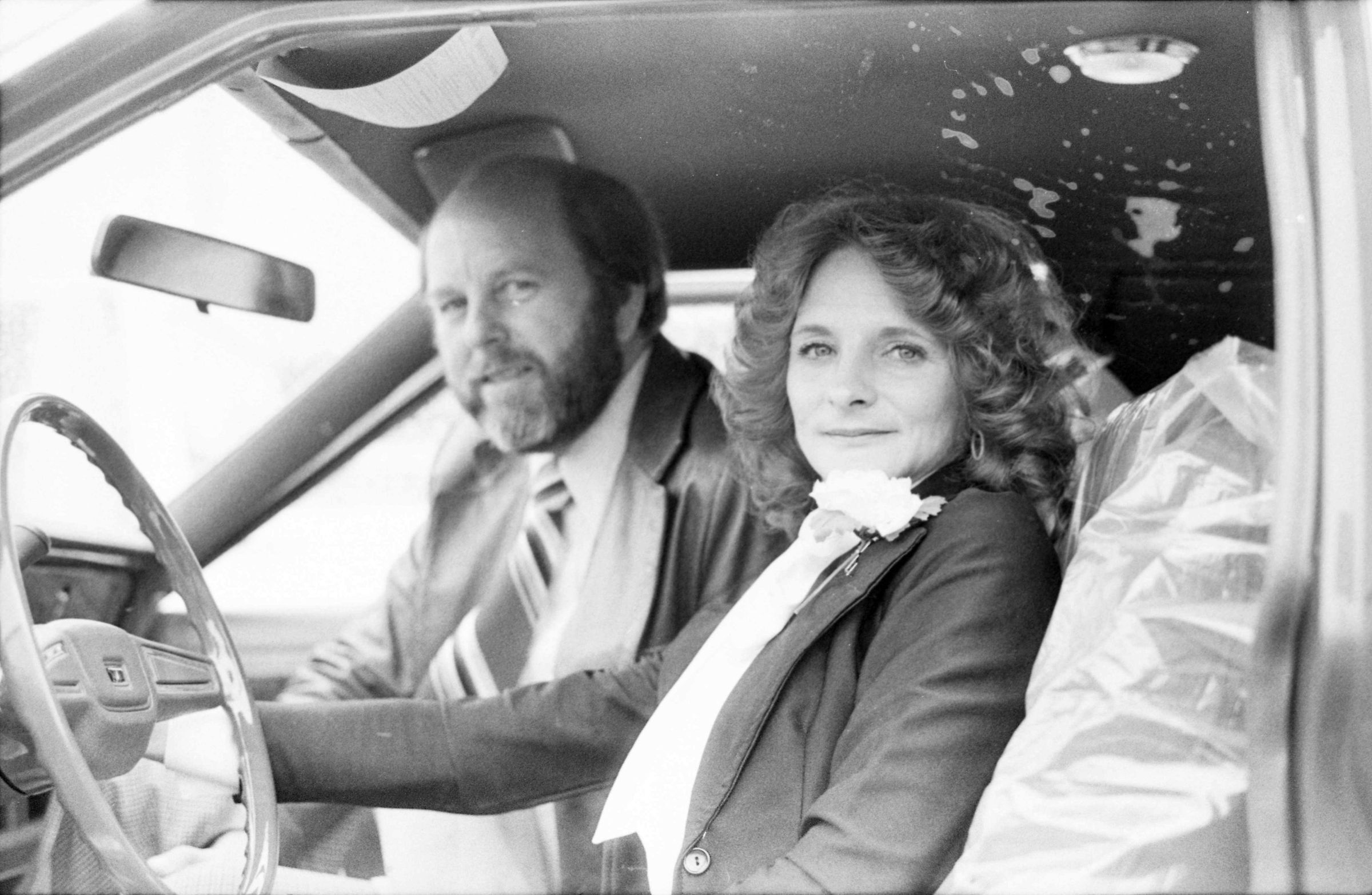 Two of the film negative strips (bearing images 10b-14b and 15b-19b) show a man with a pen in his pocket posing for a picture and two men and one woman in various positions in and around a car in either a car dealership or parking lot.