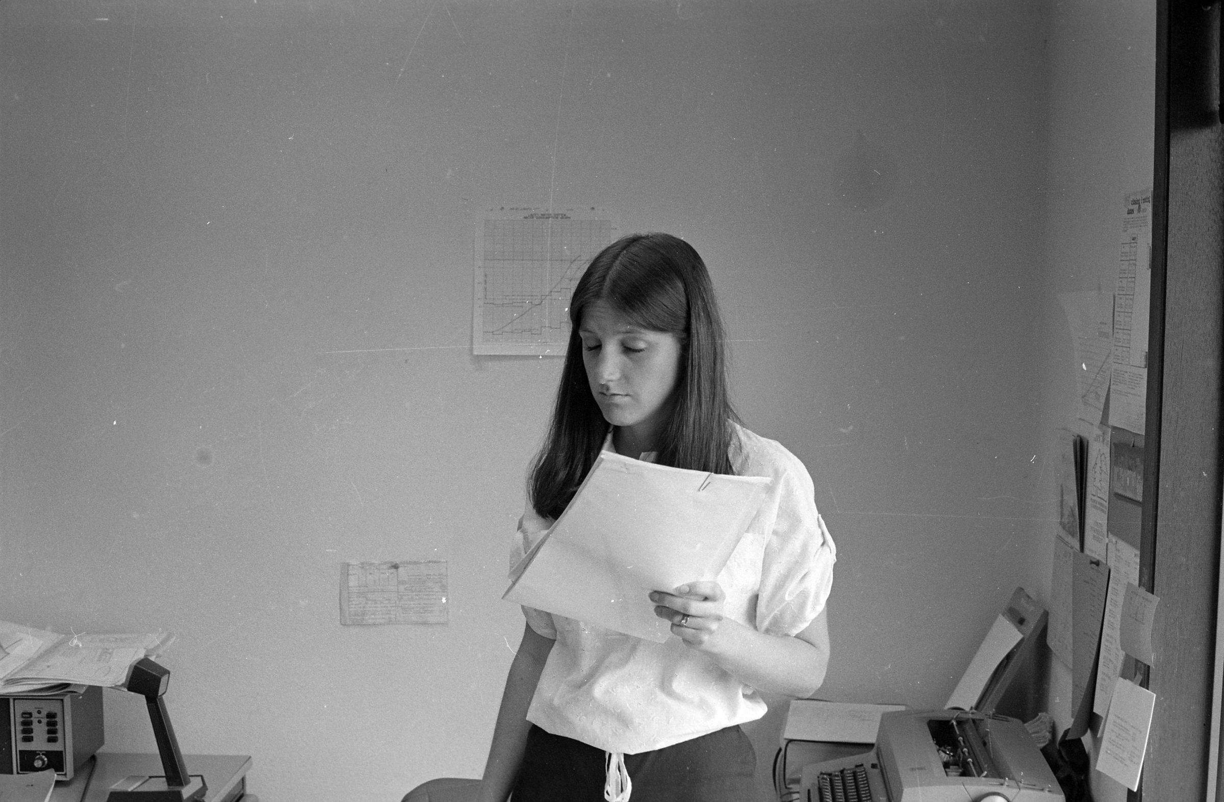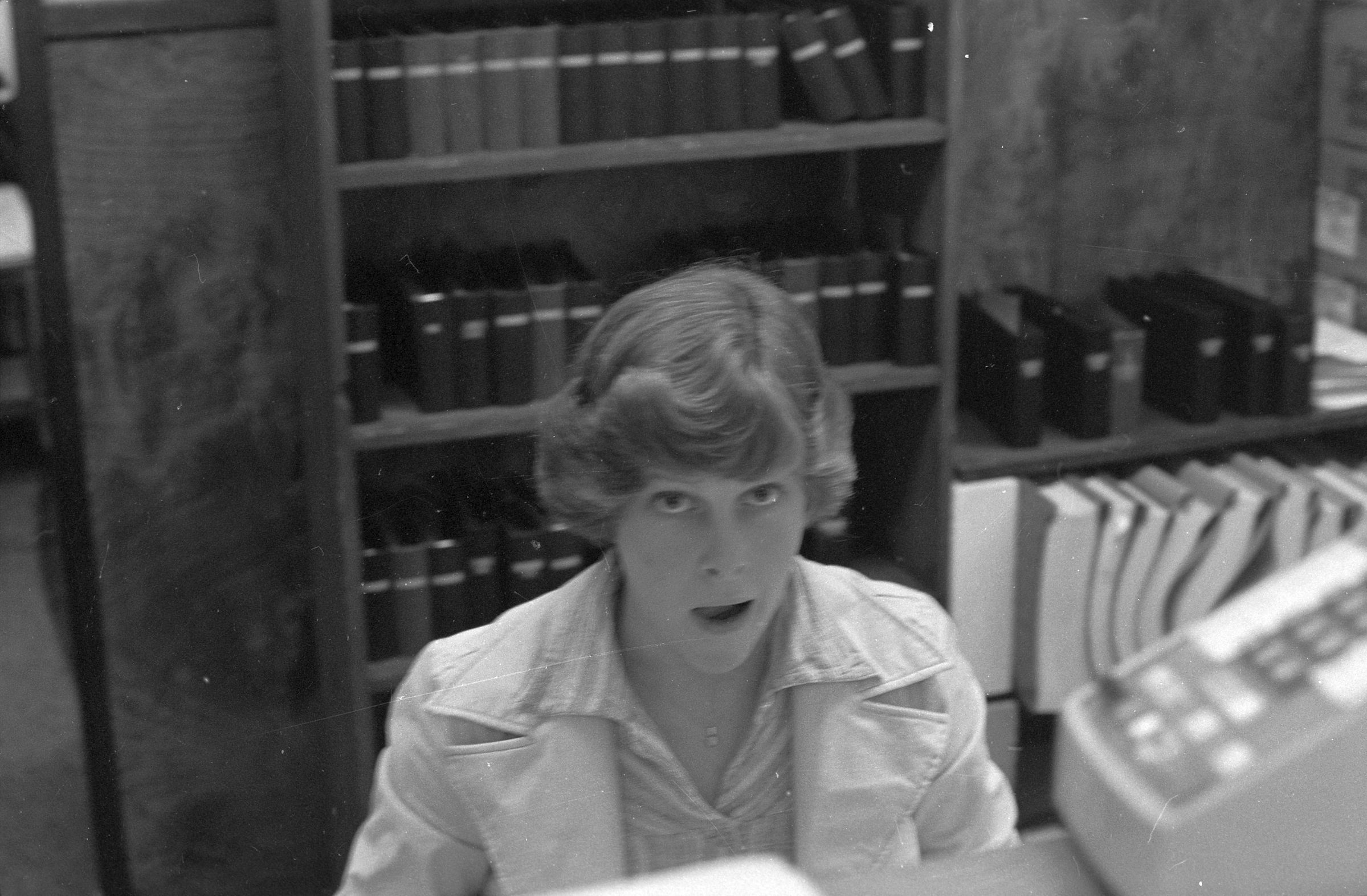 One negative strip (bearing images 1h-3h) shows a woman sitting on a desk and a desk by itself.
