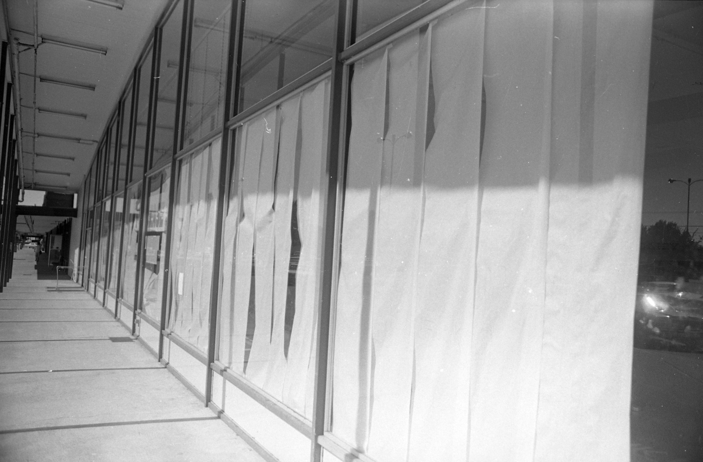 One negative strip (bearing images 39j and 40j) shows a long corridor with curtained windows along at least the right-hand side.