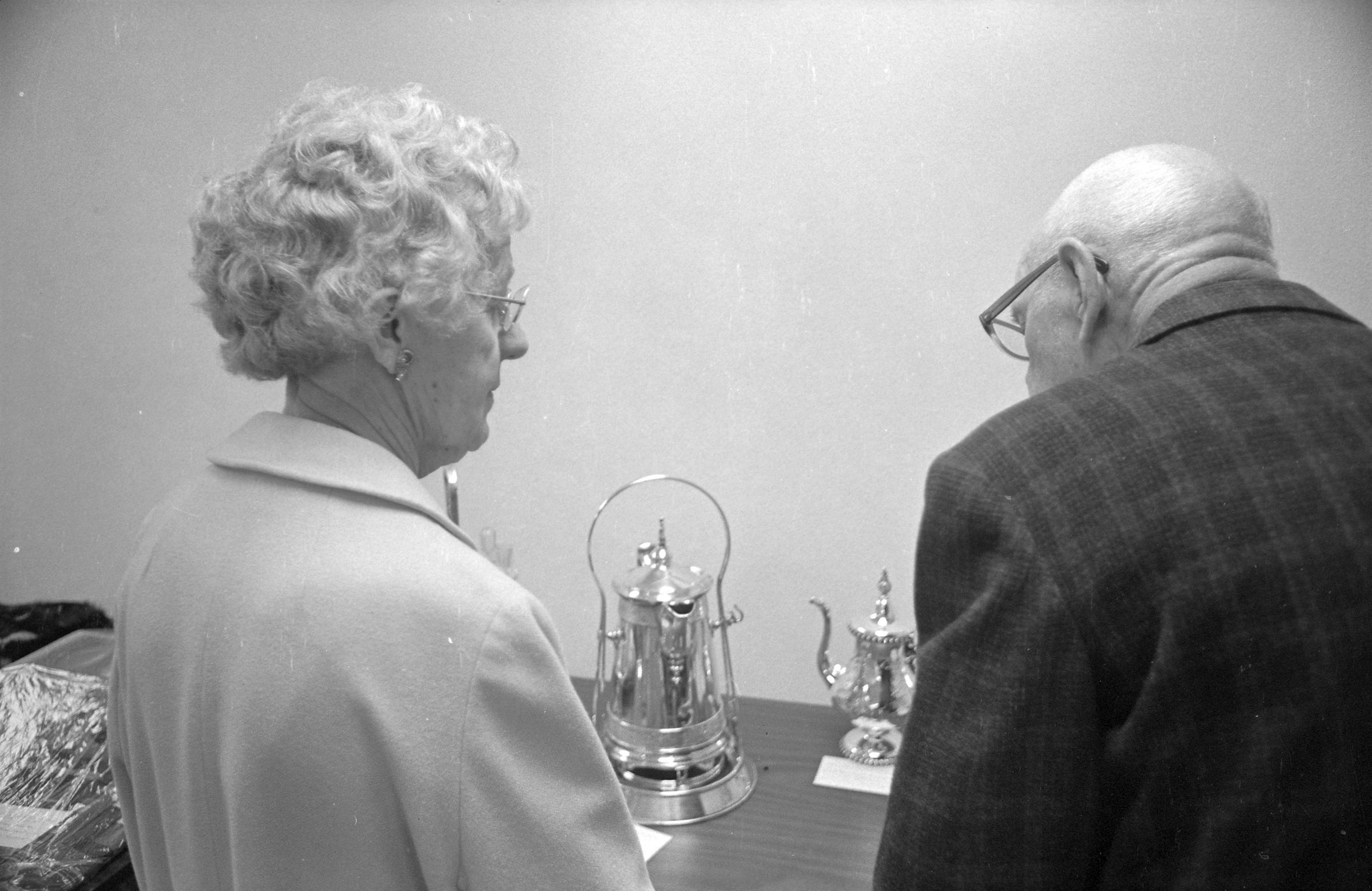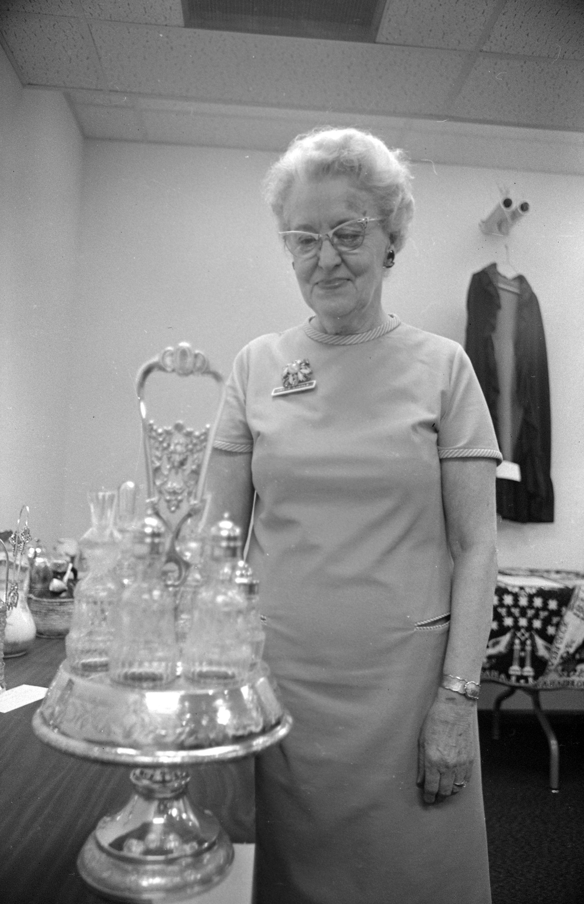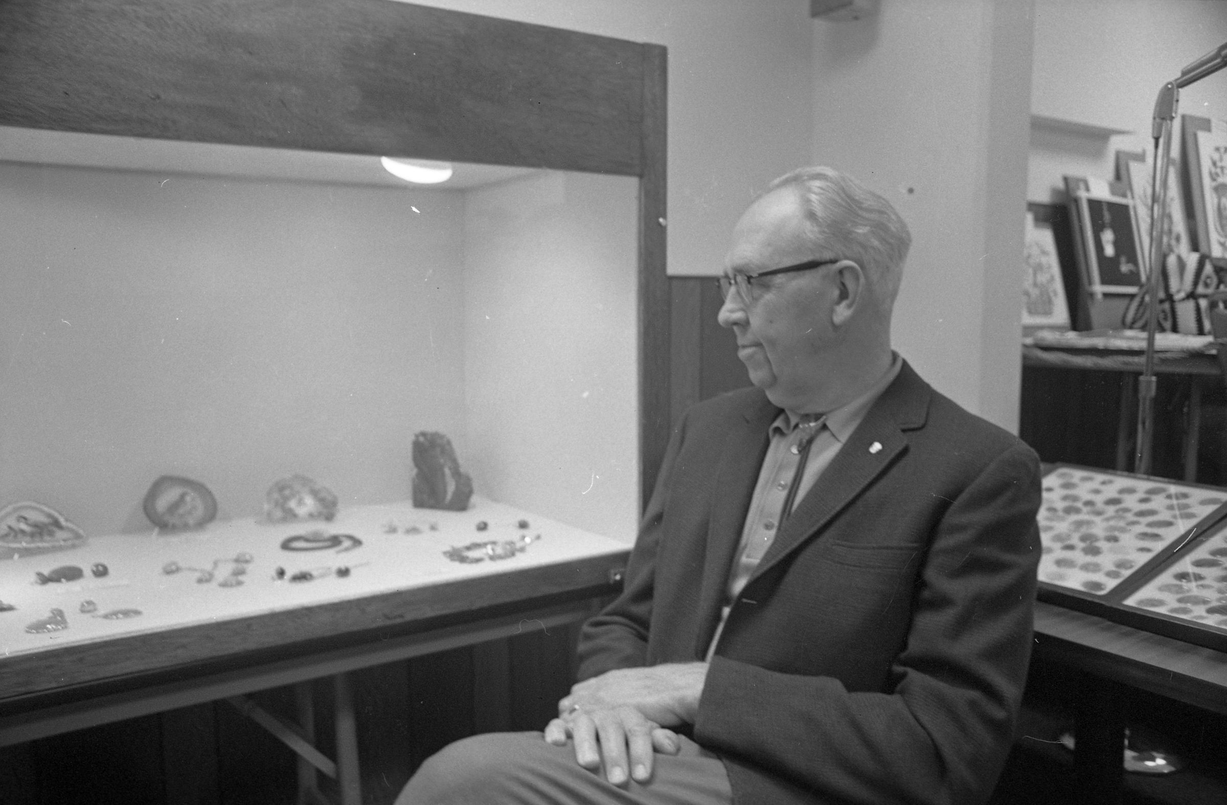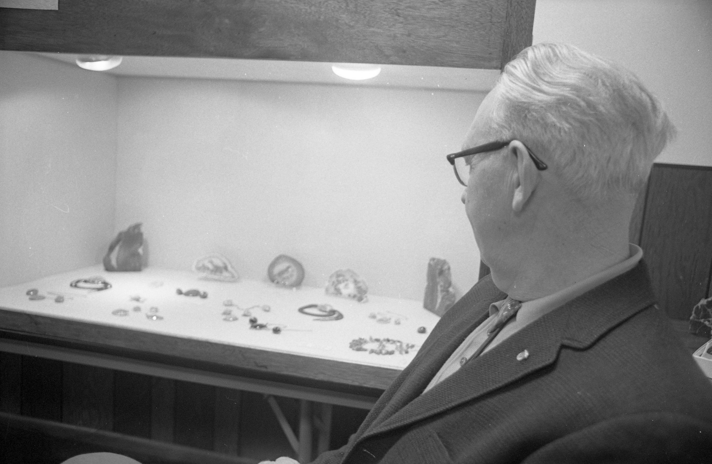 Panorama City Art Show, 1973. These eight strips of film negative strips were created for the Lacey Leader newspaper. Four strips bear five images each (images 1a-5a, 6a-10a, 4b-8b, and 40a-44a), two strips bear four images each (images 9c-12c and 17c-20c) and two strips bear three images each (images 1d-3d and 21d-23d). More than one roll of film was used when originally capturing these images, so there are two different images physically numbered with the numerals 1 through 10. All of these images show various images of art pieces or individuals either posing with or looking at a number of displays of various arts and crafts pieces.