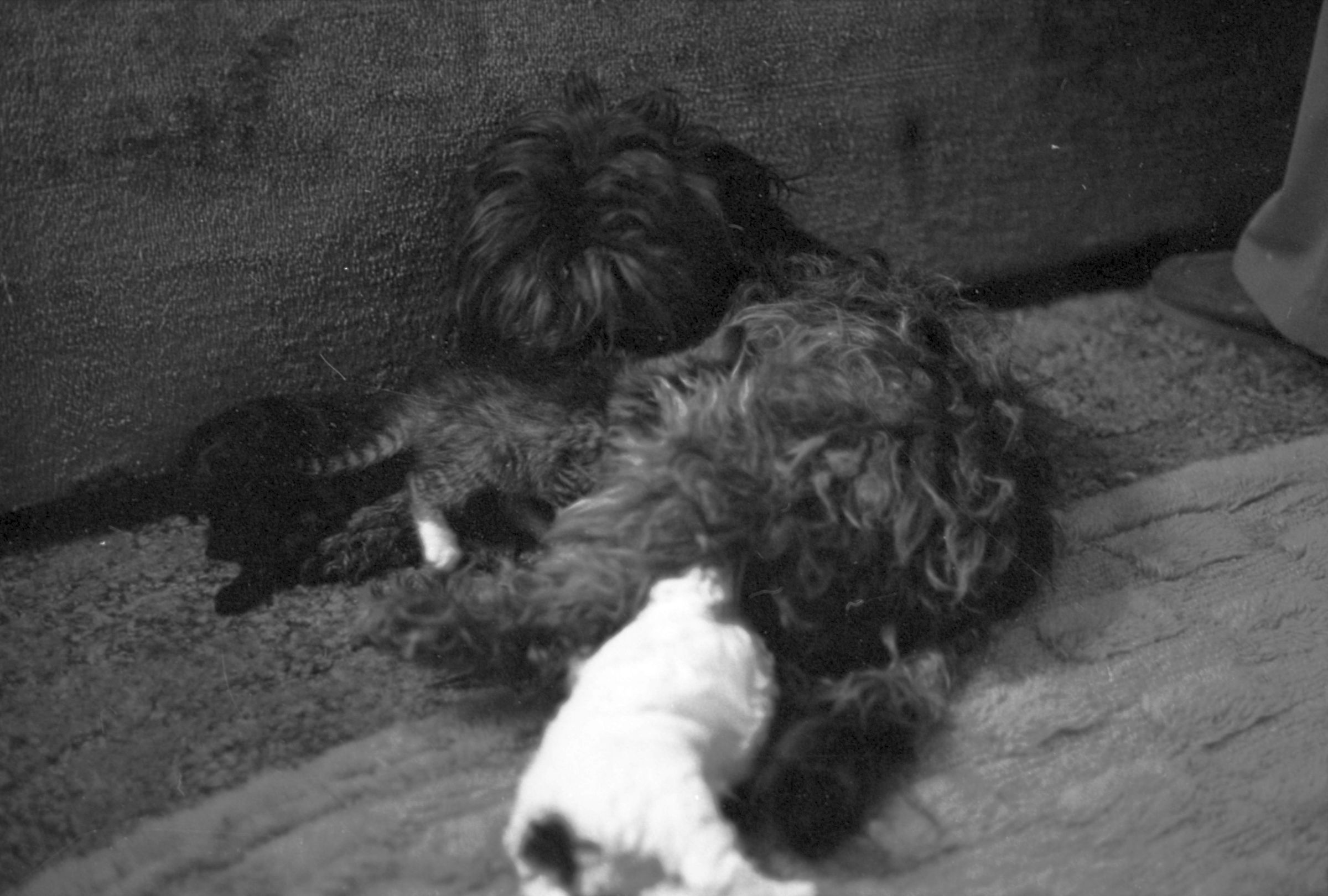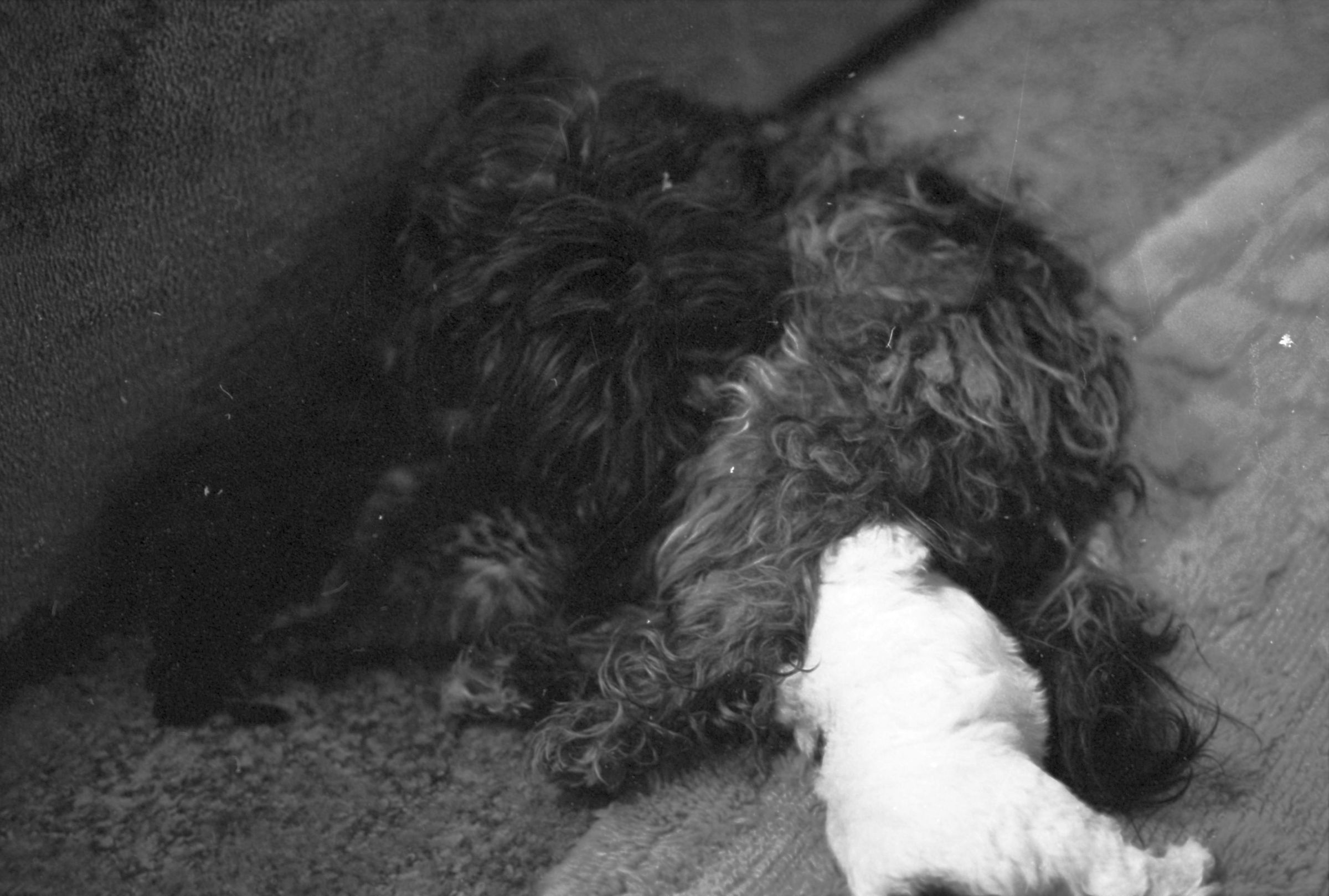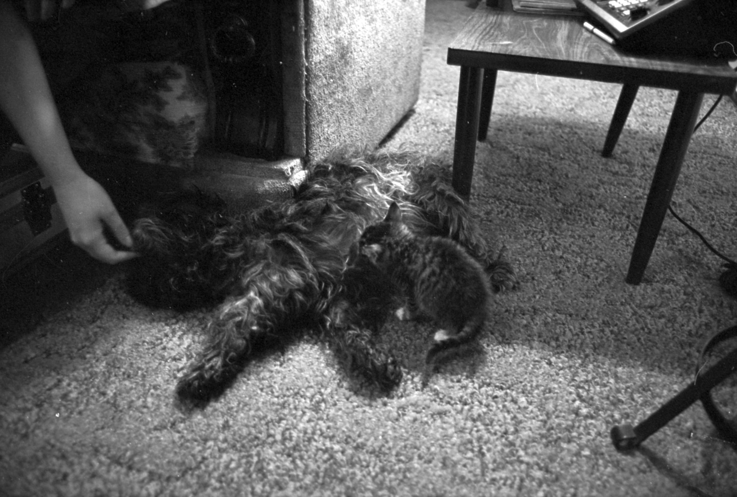 Debbie Southweek's cat, unknown date. These two film negative strips were created for the Lacey Leader newspaper. Both strips hold five images each. These images all show a cat and/or a dog.Made/Created