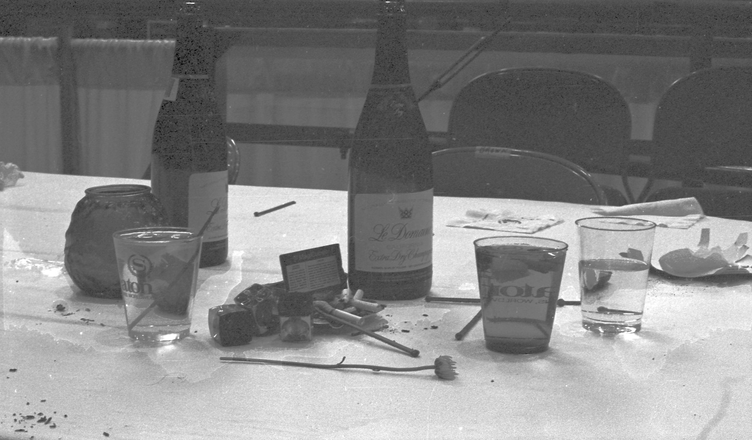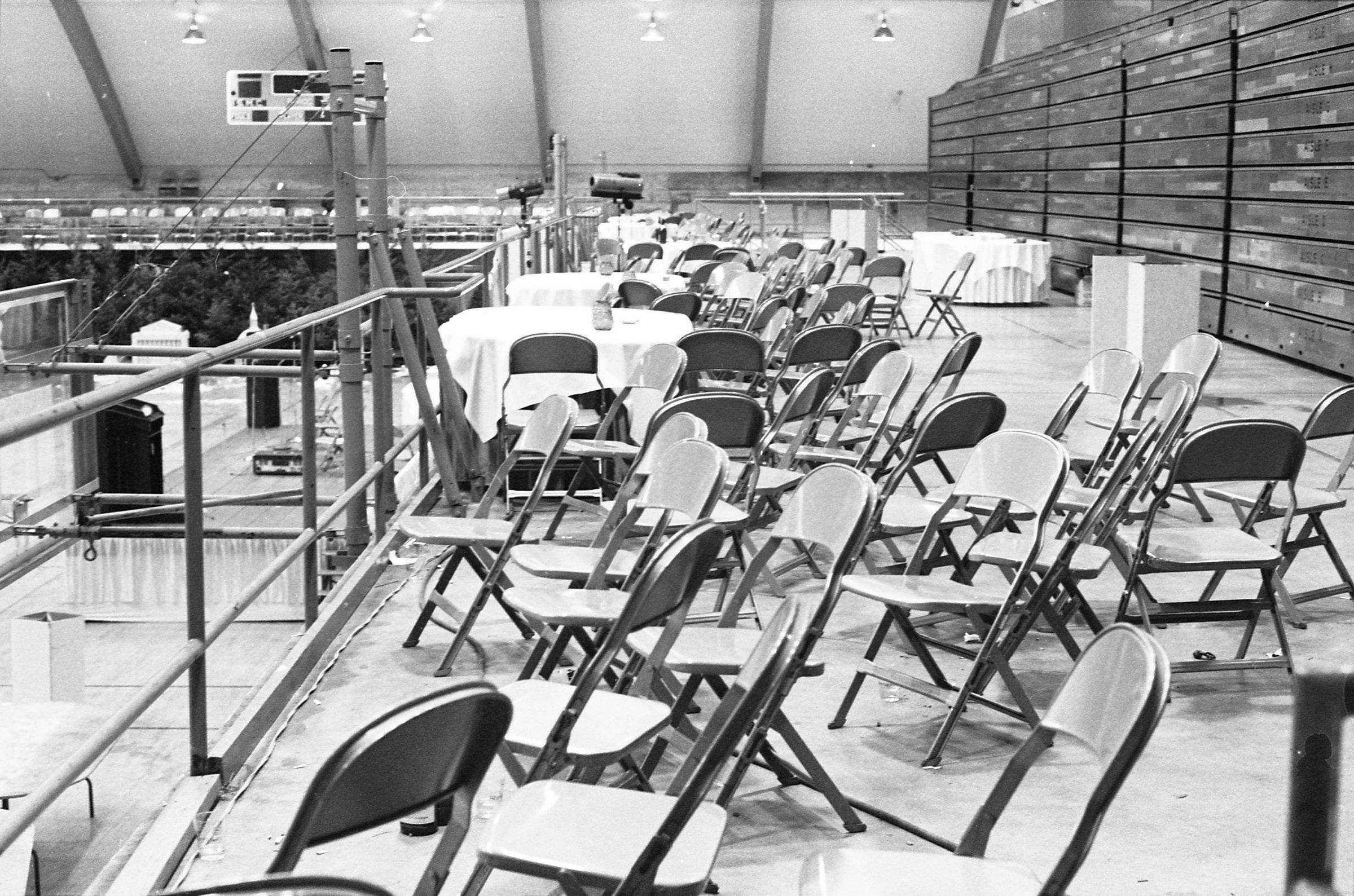 Dixy's Ball, 1977. These five black and white film negative strips were created for the Lacey Leader newspaper. Due to the fact that the images from this sleeve came from several different film strips, several of the physical numbers are duplicated for different images. As a result, for the purposes of this description, any numbers that are duplicated will be assigned an "a" and a "b" (ex: 17a and 17b).