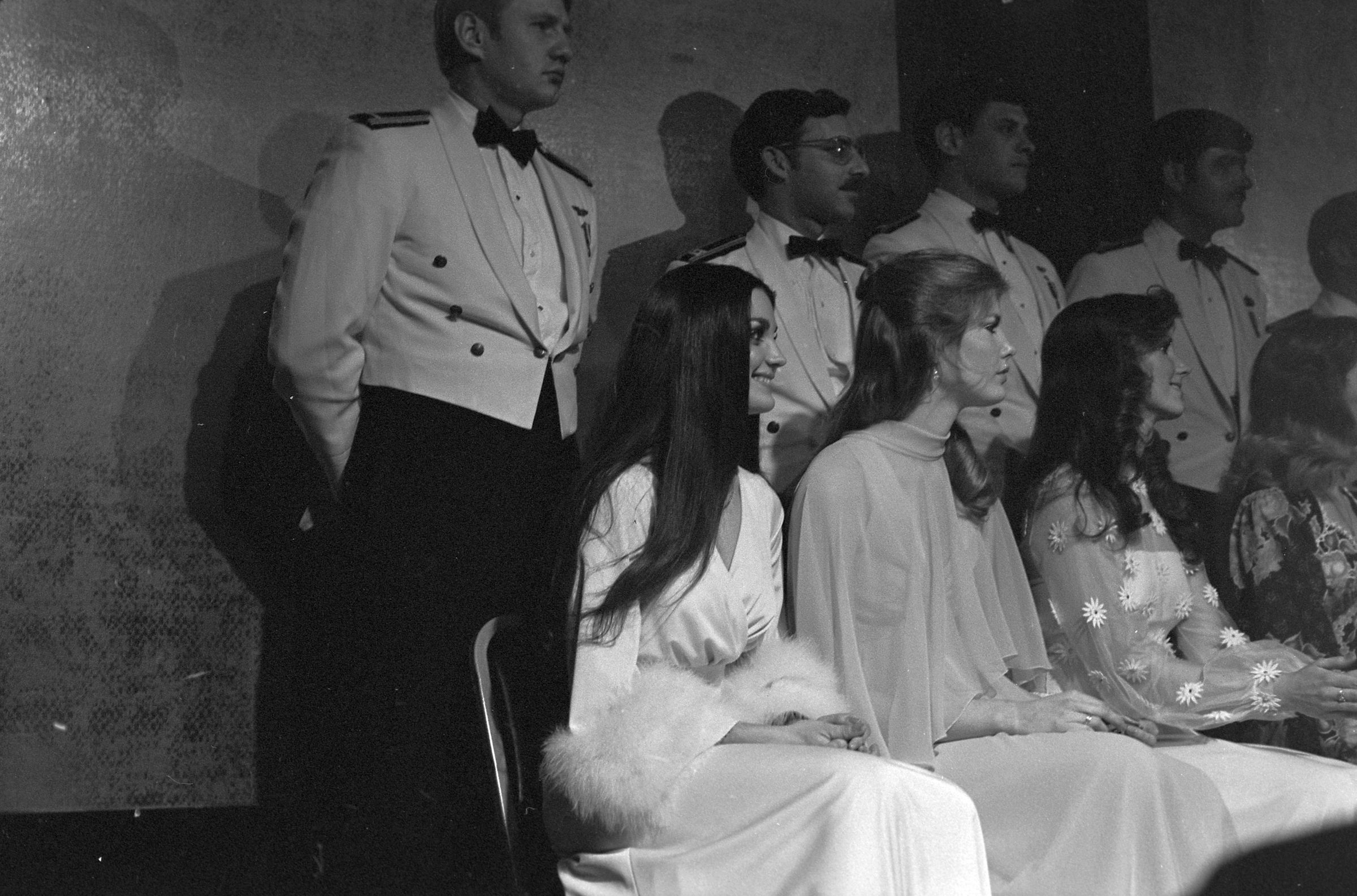 Ms. WA Universe, unknown date. These two black and white film negative strips were created for the Lacey Leader newspaper. One of the strips holds five images (images 38-42) and one strip holds one image (image 35). These images show a beauty pageant and what appears to be a scene from a stage play.Made/Created
