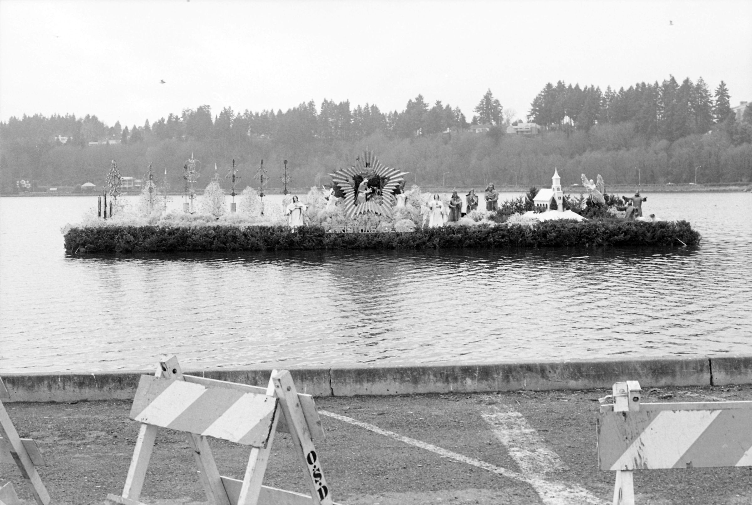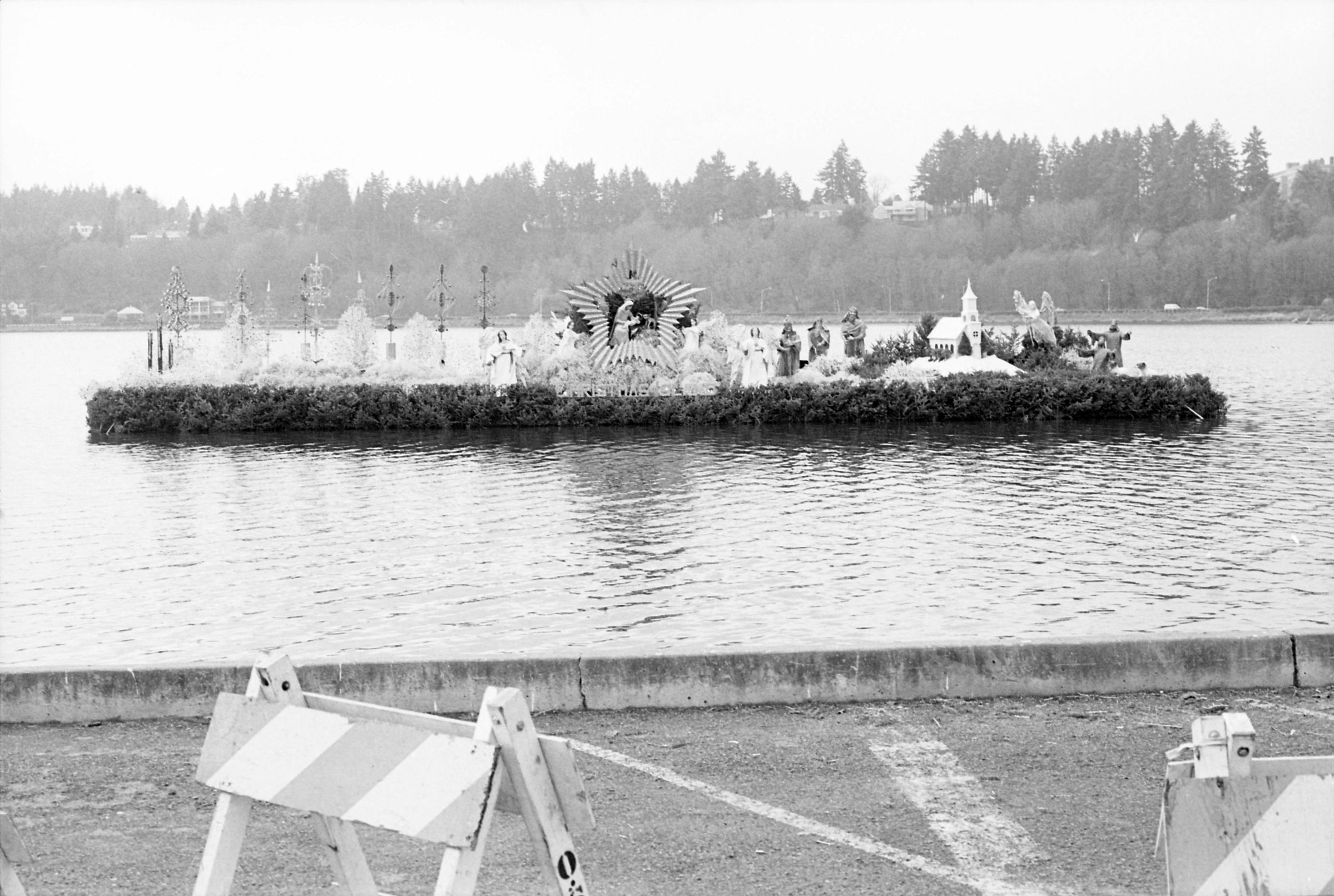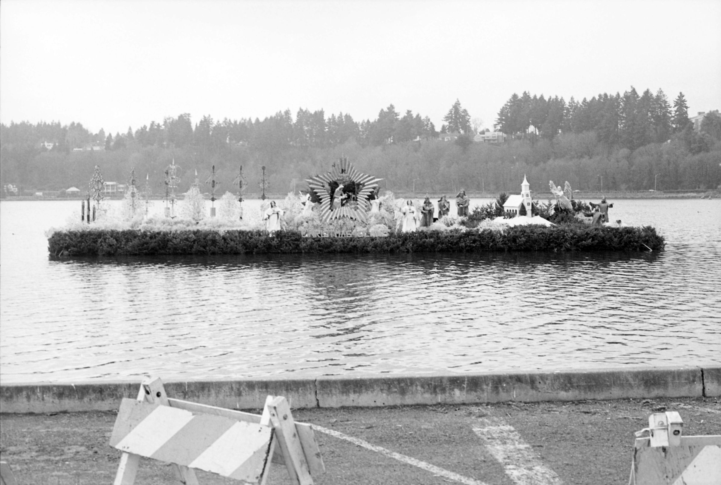 Christmas Island was a large, Christmas-themed display which floated on a series of joined pontoons. The display was originally located on the property of a man named Leonard Huber who operated an event venue on the same property. The display was later purchased by a group of Olympia businessmen and moved to Capitol Lake in Olympia, Washington. After approximately ten years of seasonal display on Capitol Lake, the display moved to South Sound Center.Made/Created