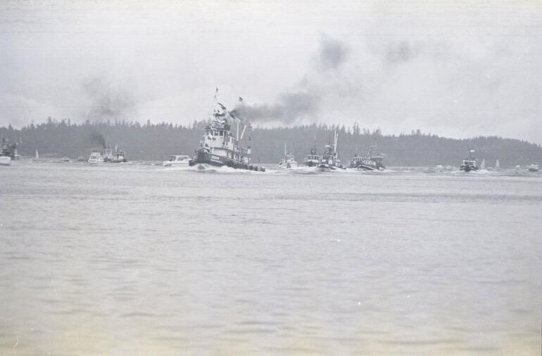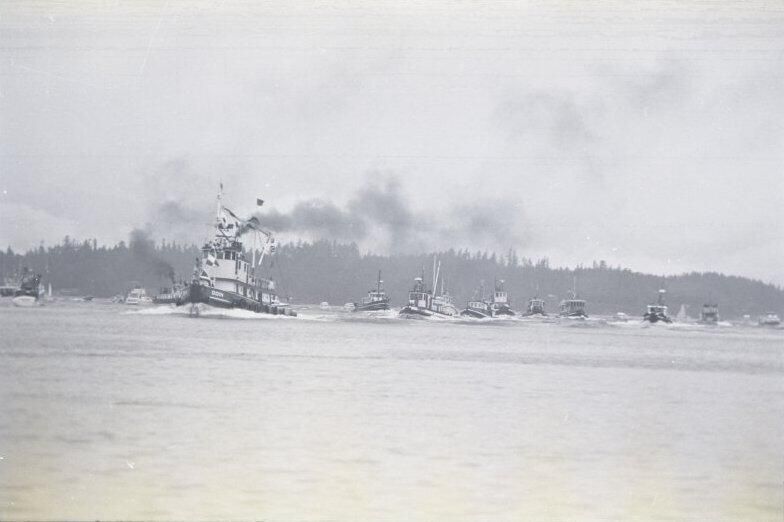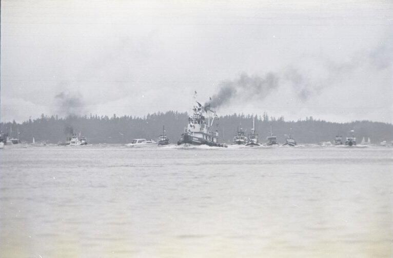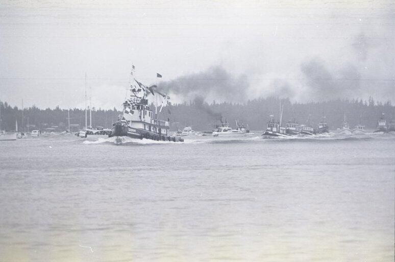 This tugboat race is part of an annual tugboat race and festival which began in the early 1970s and became known as Olympia Harbor Days.