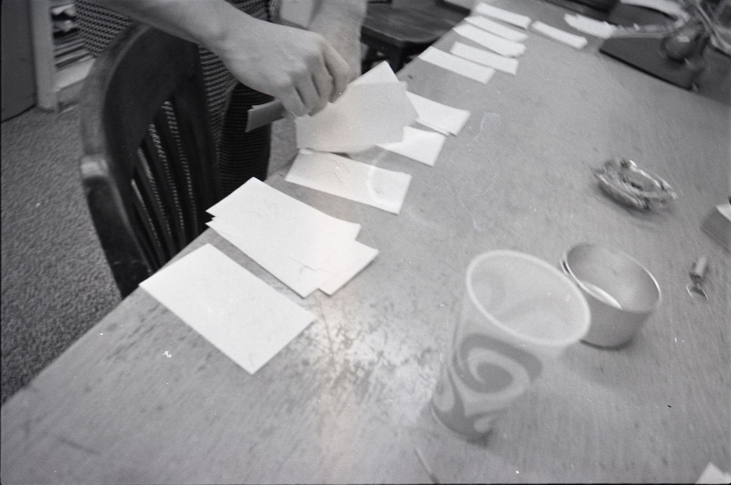 Printed in alternation along one edge of the strips in groups a, b and d is "KODAK SAFETY FILM" and "KODAK TRI X PAN FILM." Printed at intervals along one edge of the strips in groups c and e is "KODAK SAFETY FILM 5063."Lexicon