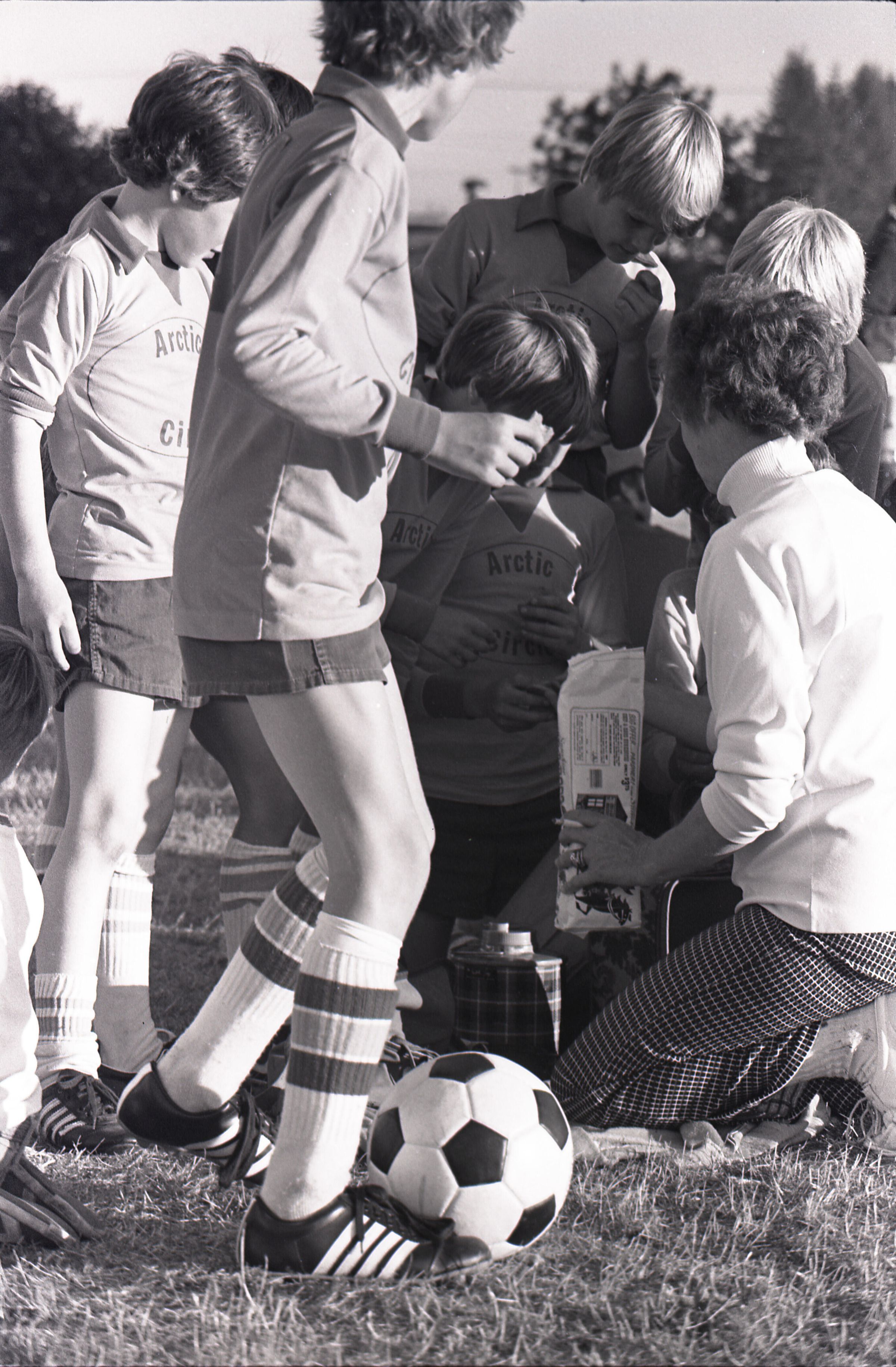 The second series shows children playing soccer (18b-38b). According to the teams' jerseys, one team is representing Arctic Circle and the other is representing McKinney's.