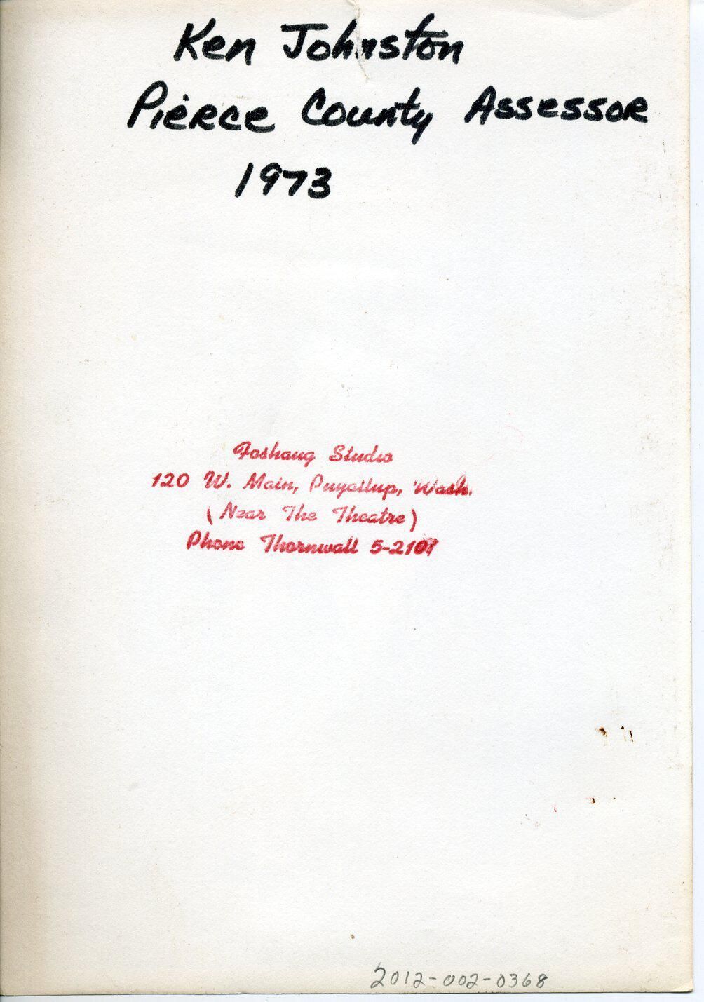 Mr. Johnston was Pierce County Assessor in 1973.Made/Created