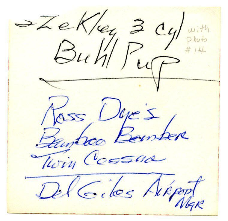 Szekley 3 cyl Buhl Pup, Ross Dye's Bamboo Bomber twin Cessna Del Giles, Airport ManagerRelationships