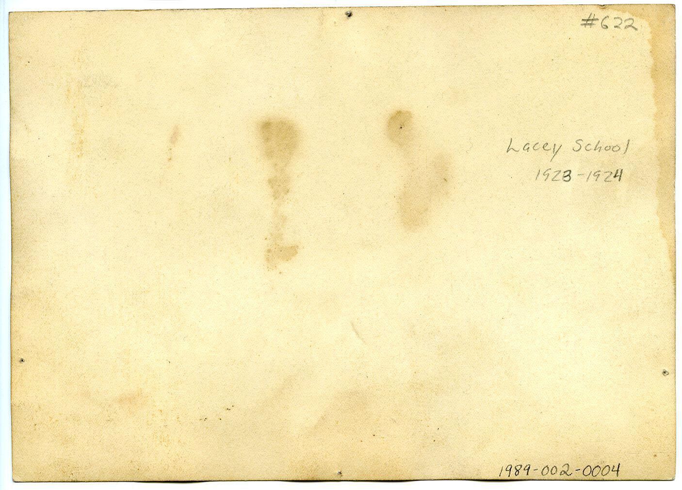 On the back of the photo, in the upper right corner is written in pencil: "#622" and " below this "Lacey School 1923-1924" presumably by museum staff.Made/Created