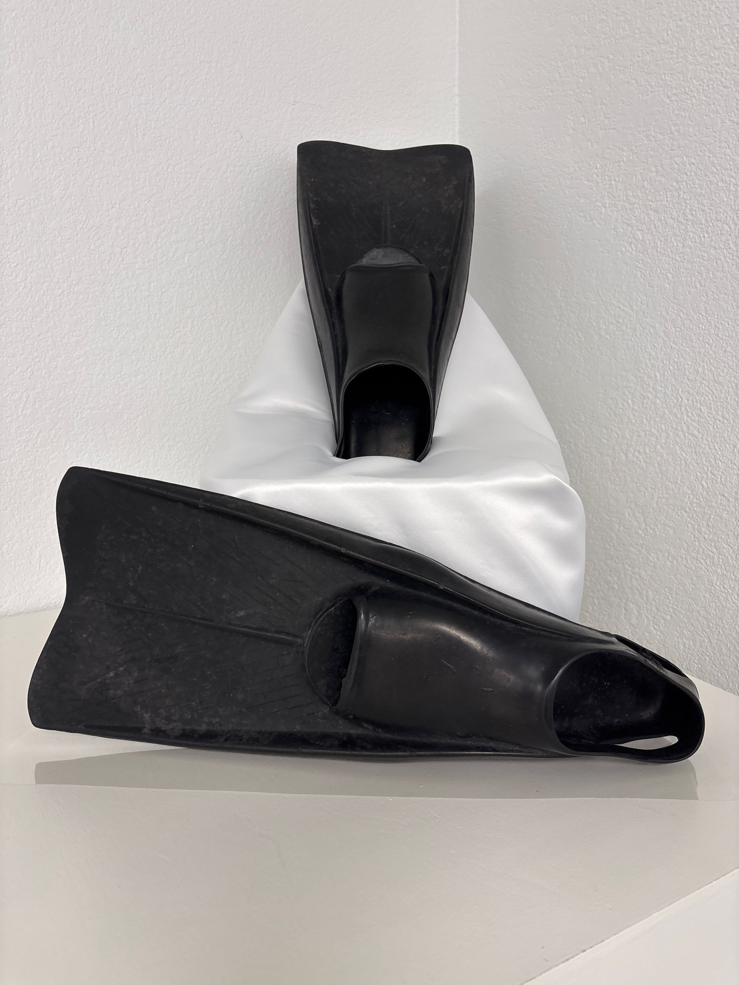 Flippers, also called swim fins, are made of black rubber or plastic, . Used by the donor for diving and snorkeling. He specifically remembers diving at Tolmie State Park and snorkeling in Long Lake.Dimensions
