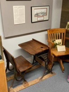 School desks, given to the donor by former mayor, Bill Bush, who told her they were used by his mom who was a school teacher in Lacey at the Lacey School.