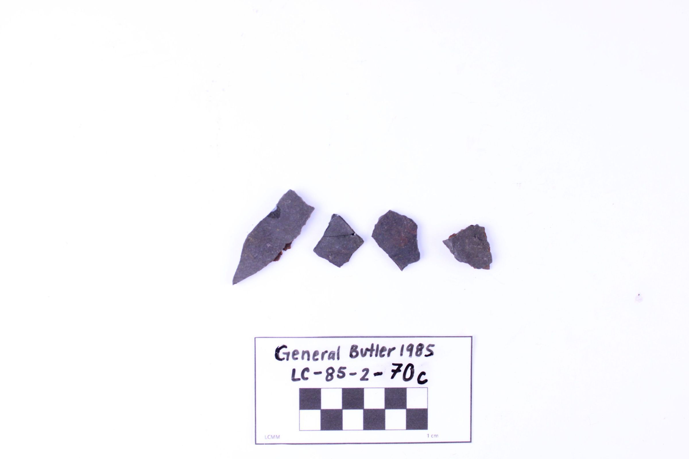 Artifact LC-85-2-70c is a lot of four (4) fragments of a cast iron pot.